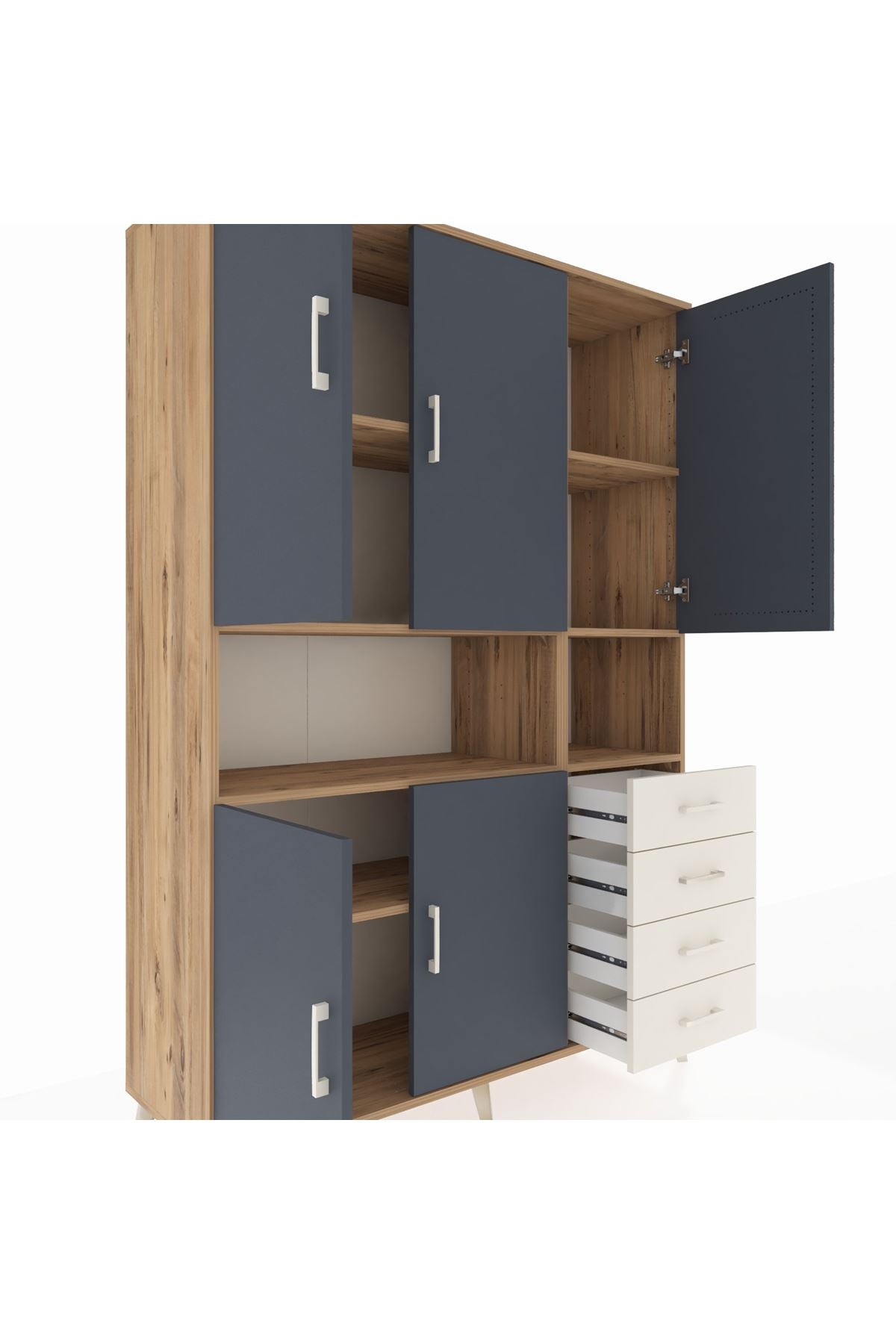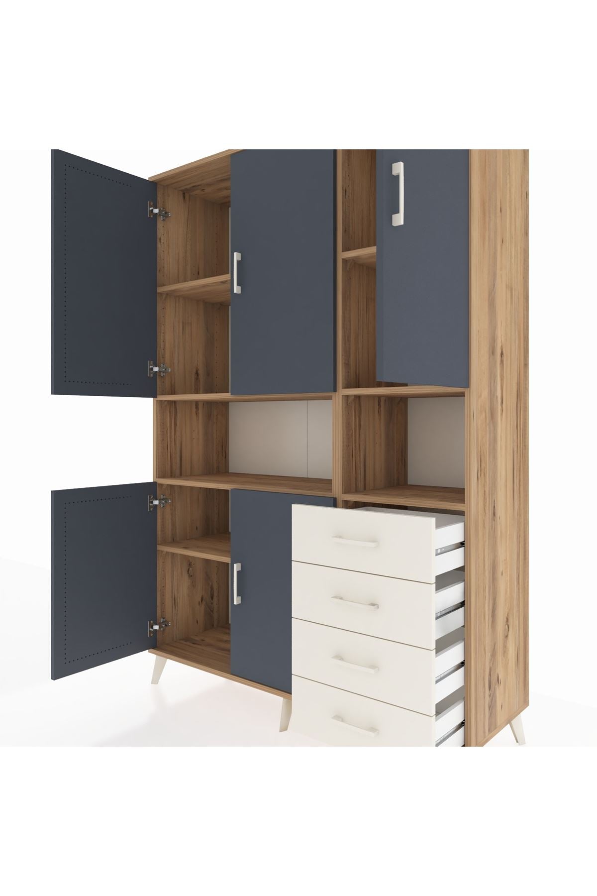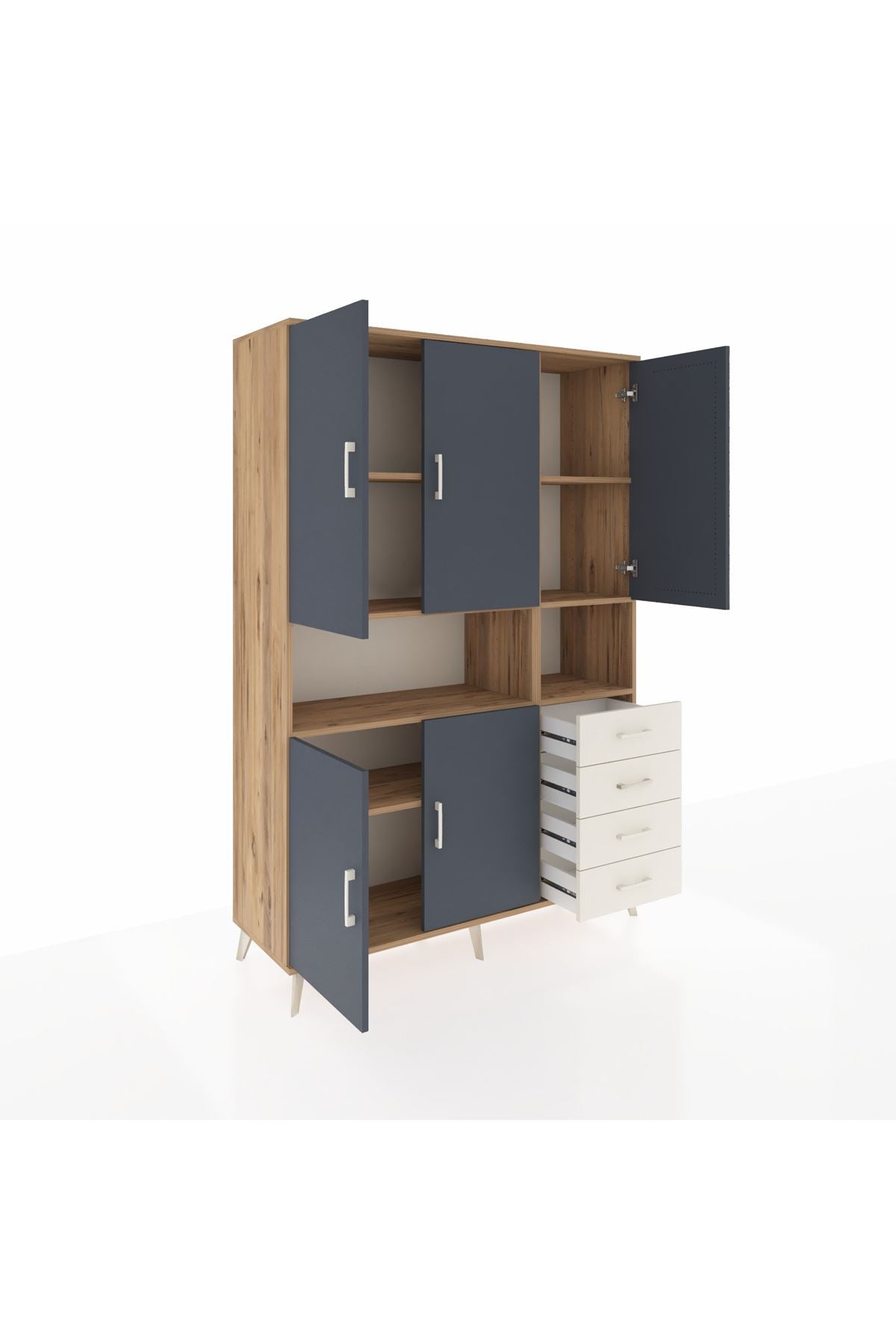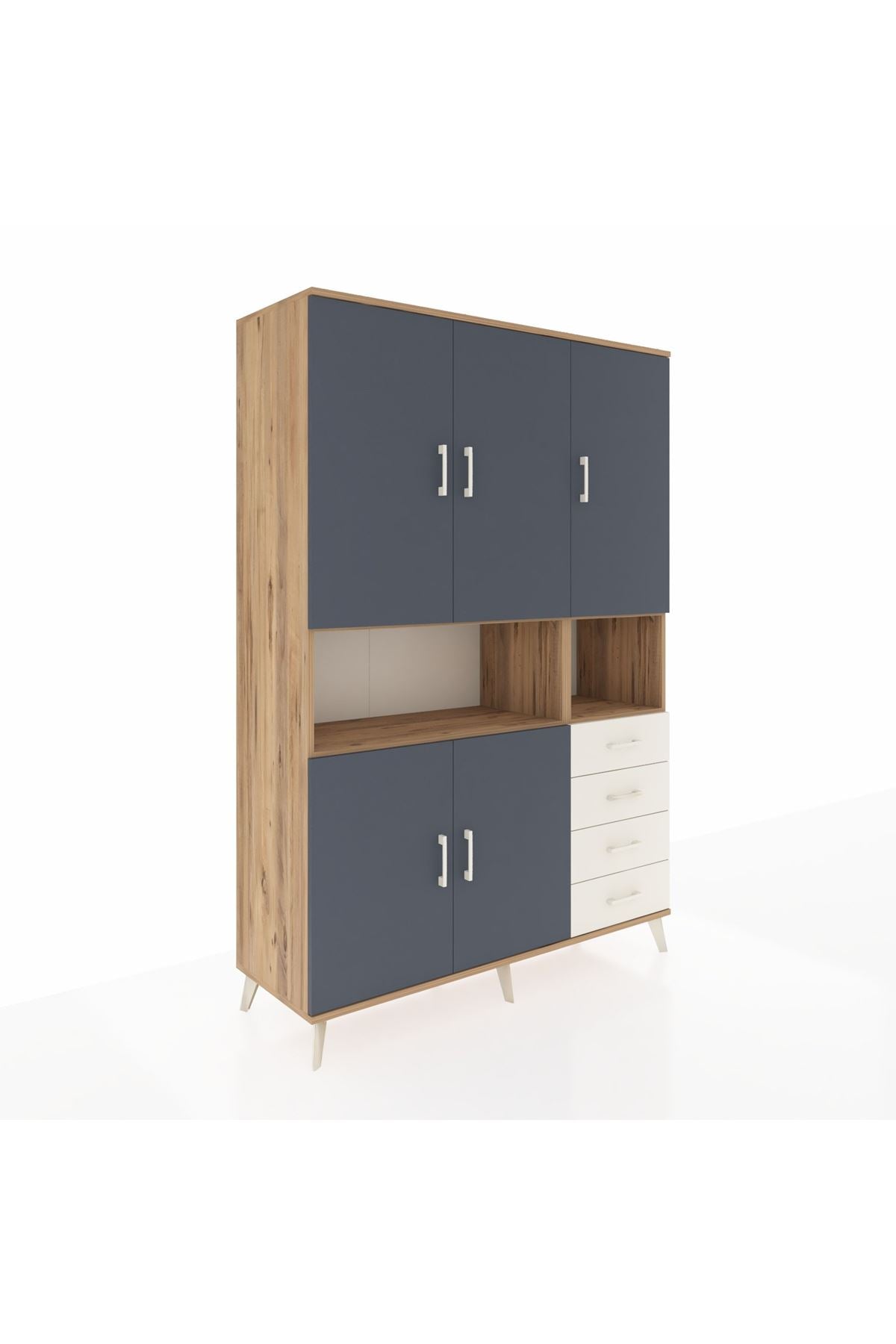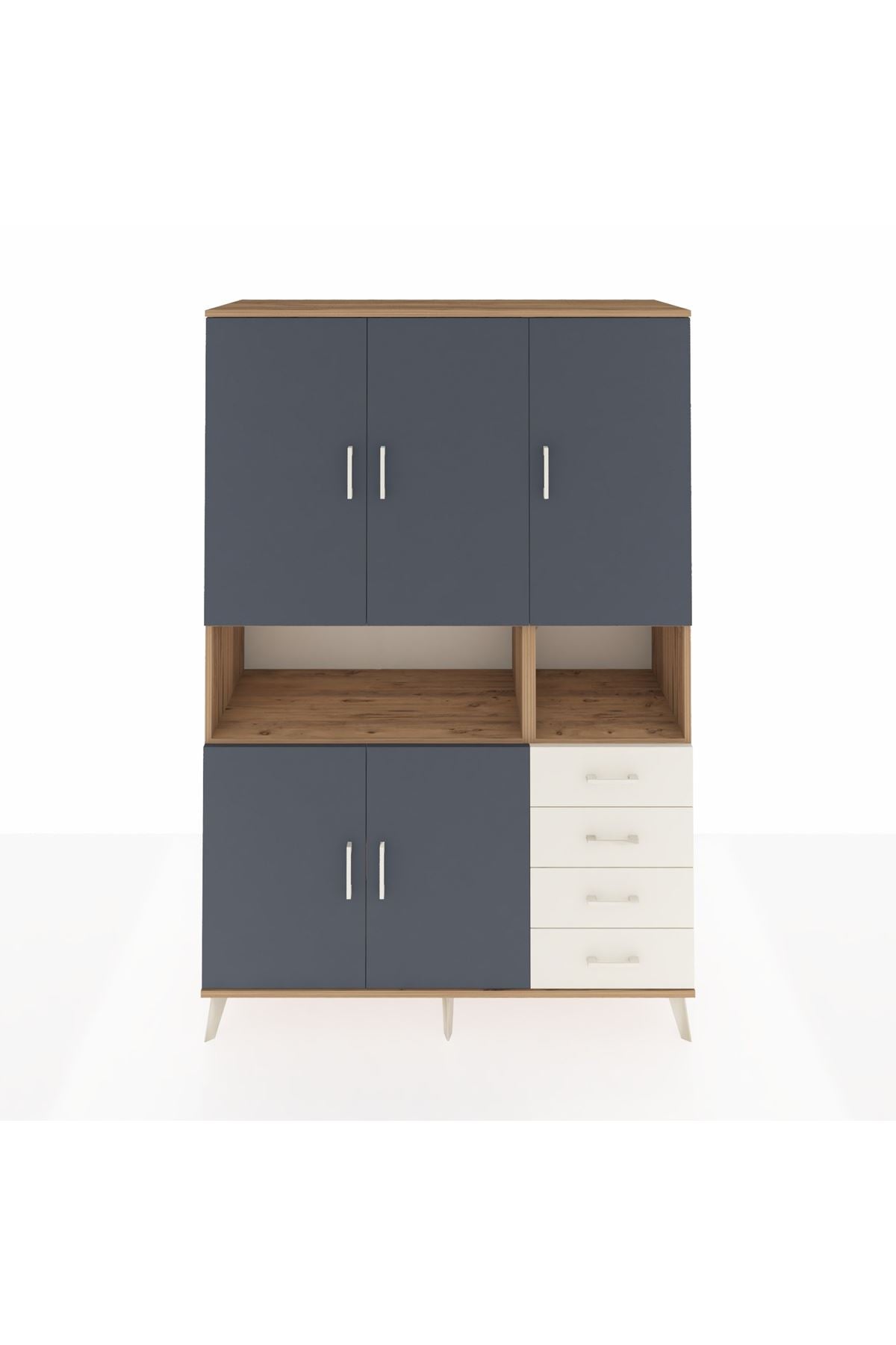 Hyperion Dolap 7 Raflı 4 Çekmeceli 5 Kapaklı 132x44x195 Çam-Antrasit/Aytaşı