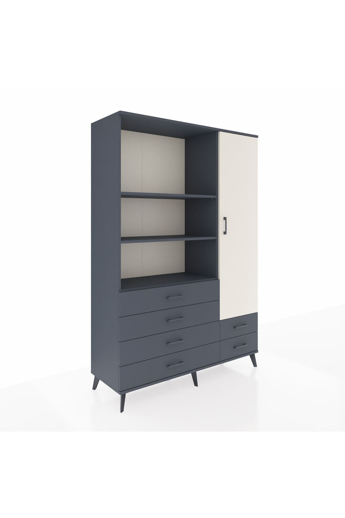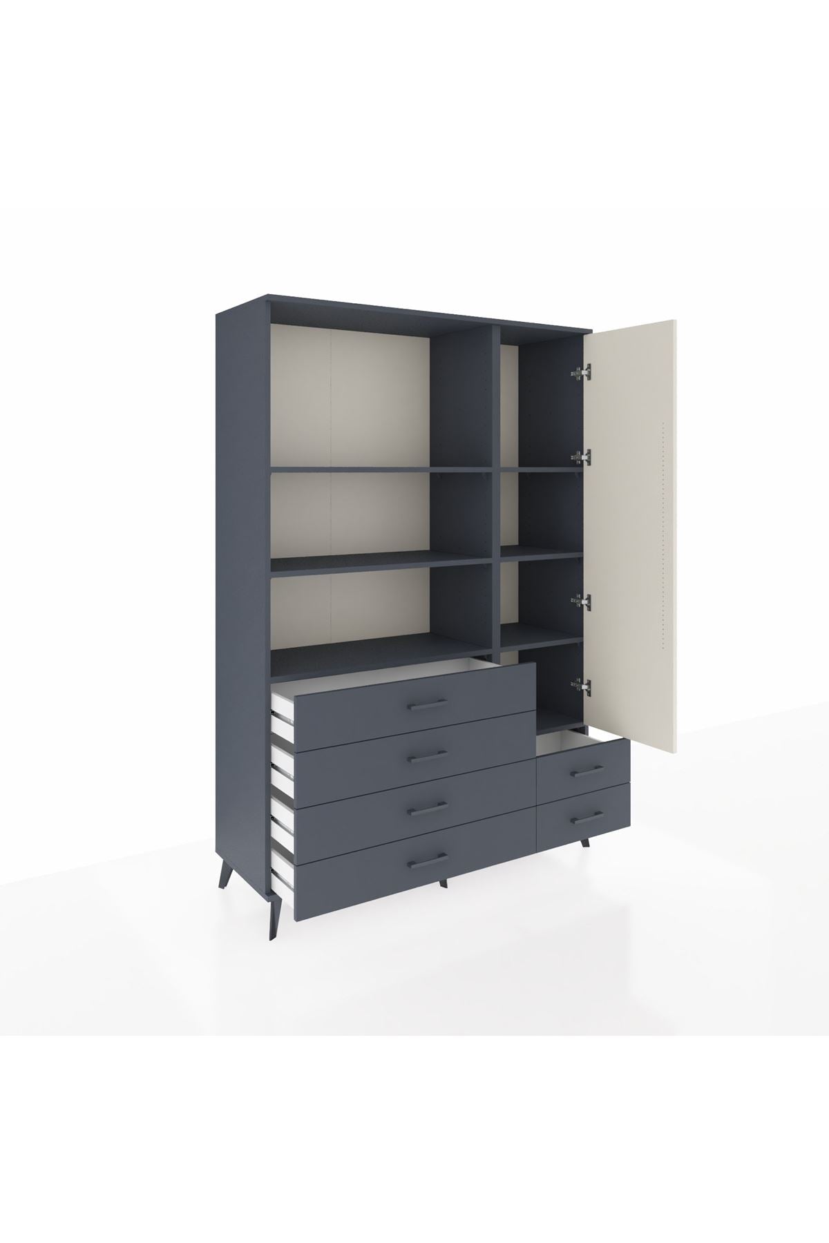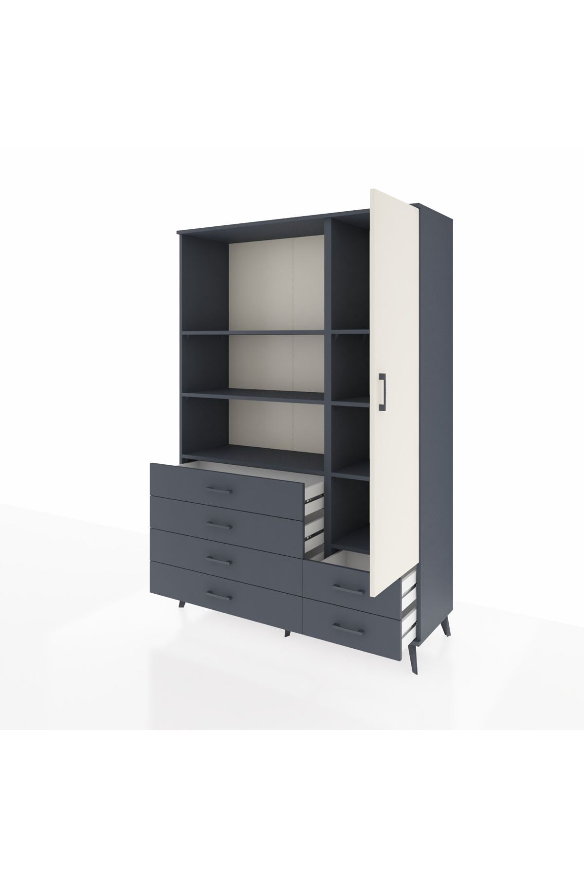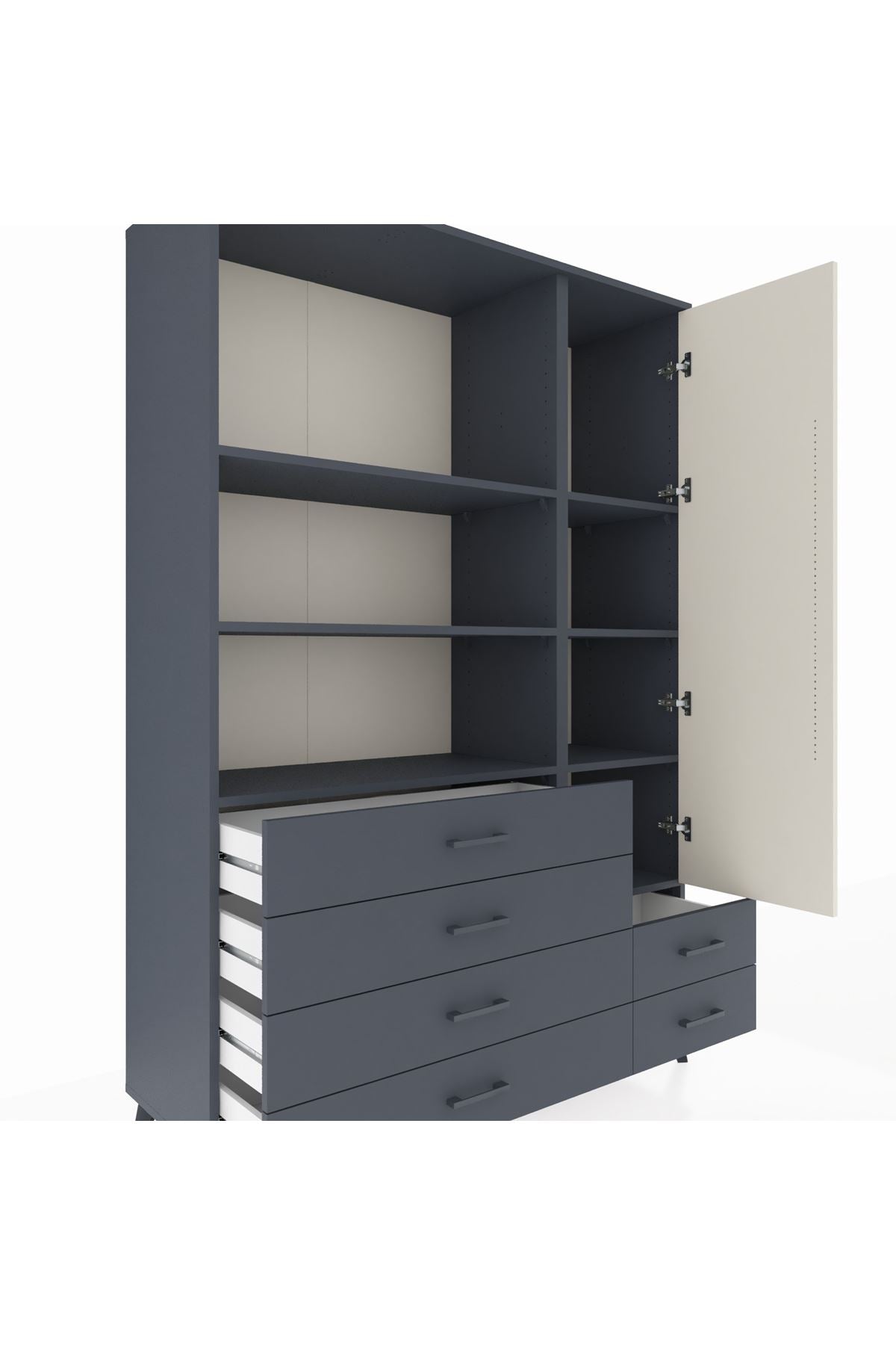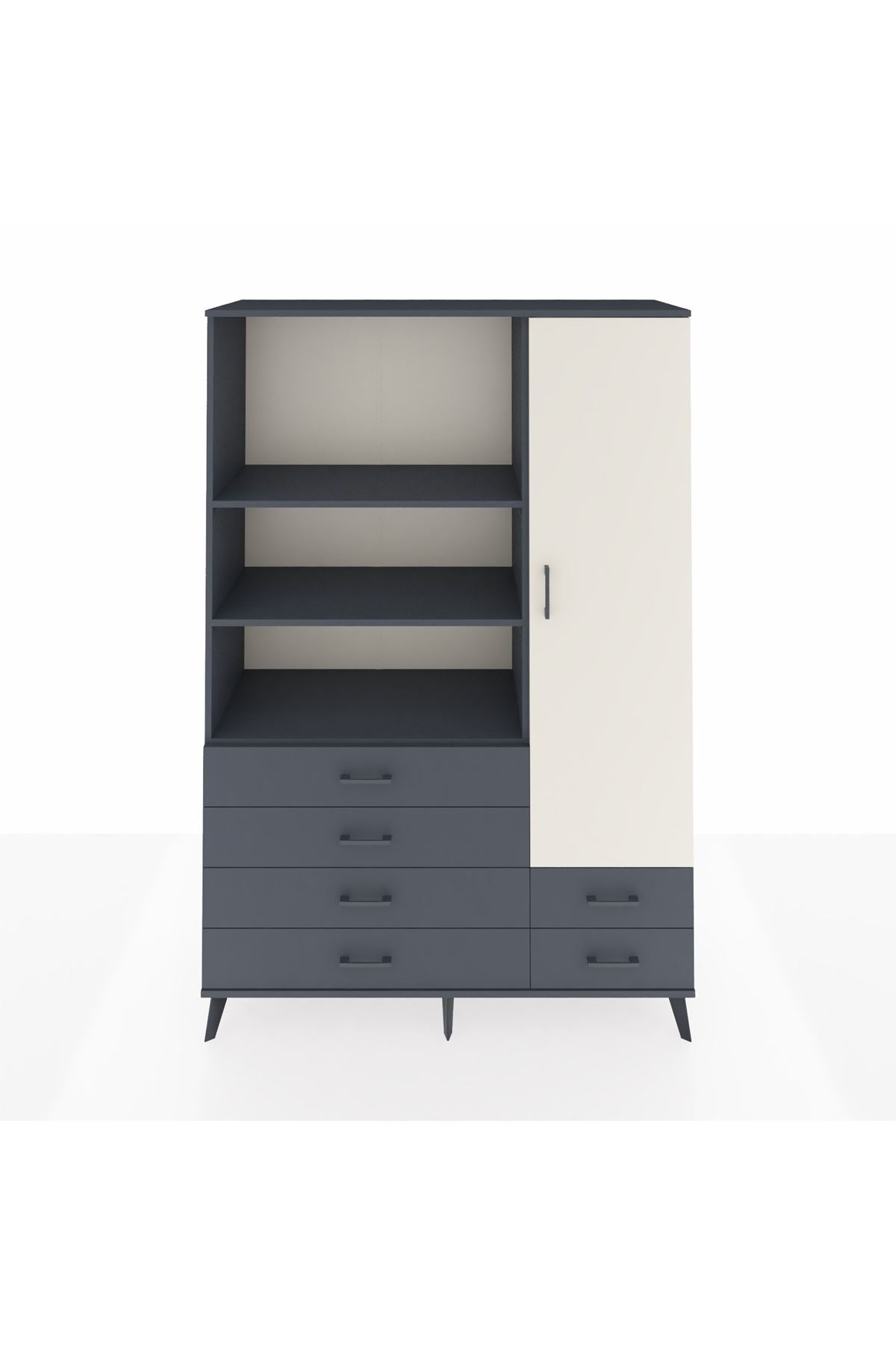 Hyperion Dolap 7 Raflı 6 Çekmeceli Tek Kapaklı 132x44x195 Antrasit-Aytaşı/Antrasit