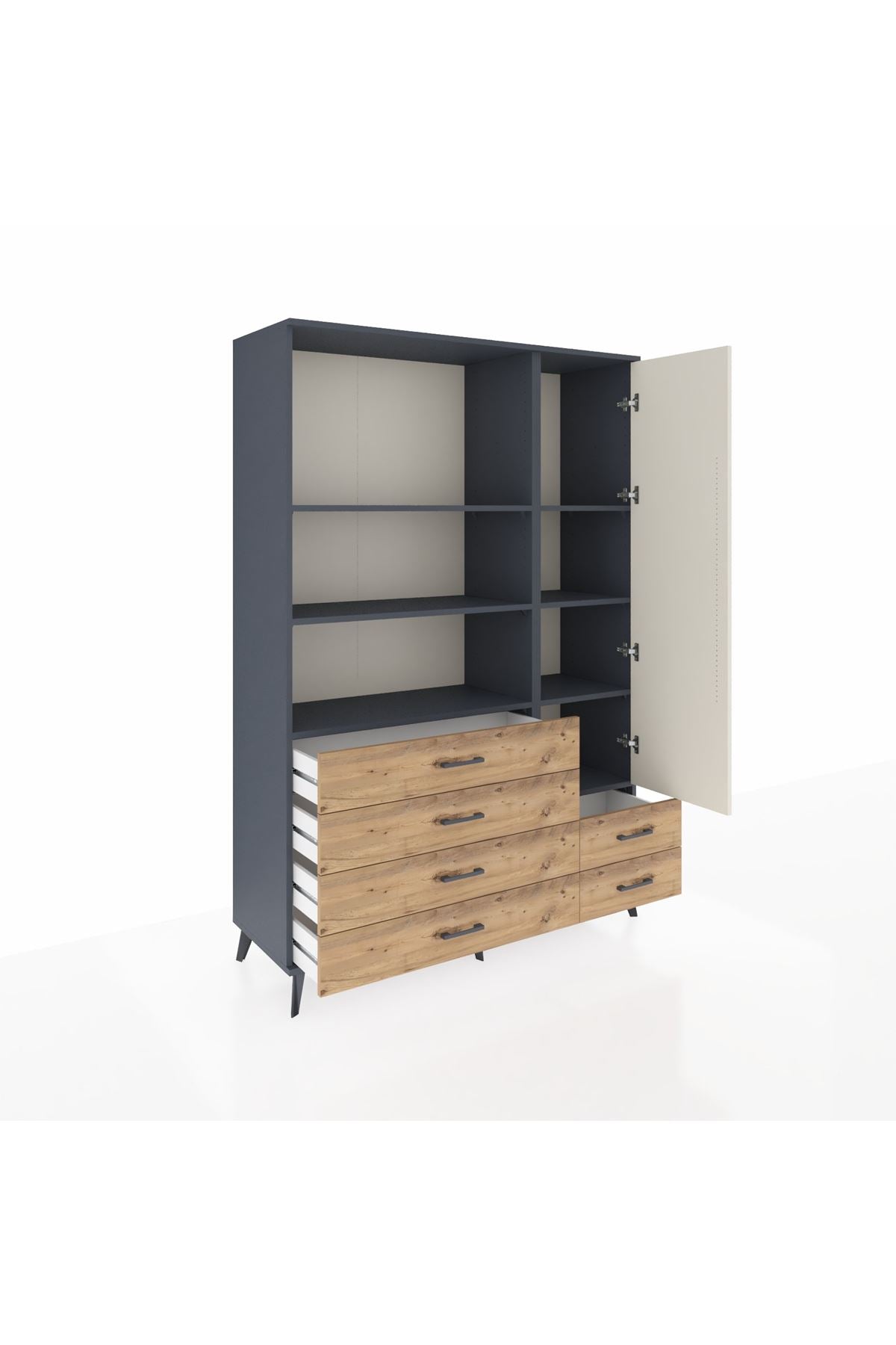 Hyperion Dolap 7 Raflı 6 Çekmeceli Tek Kapaklı 132x44x195 Antrasit-Aytaşı/Çam