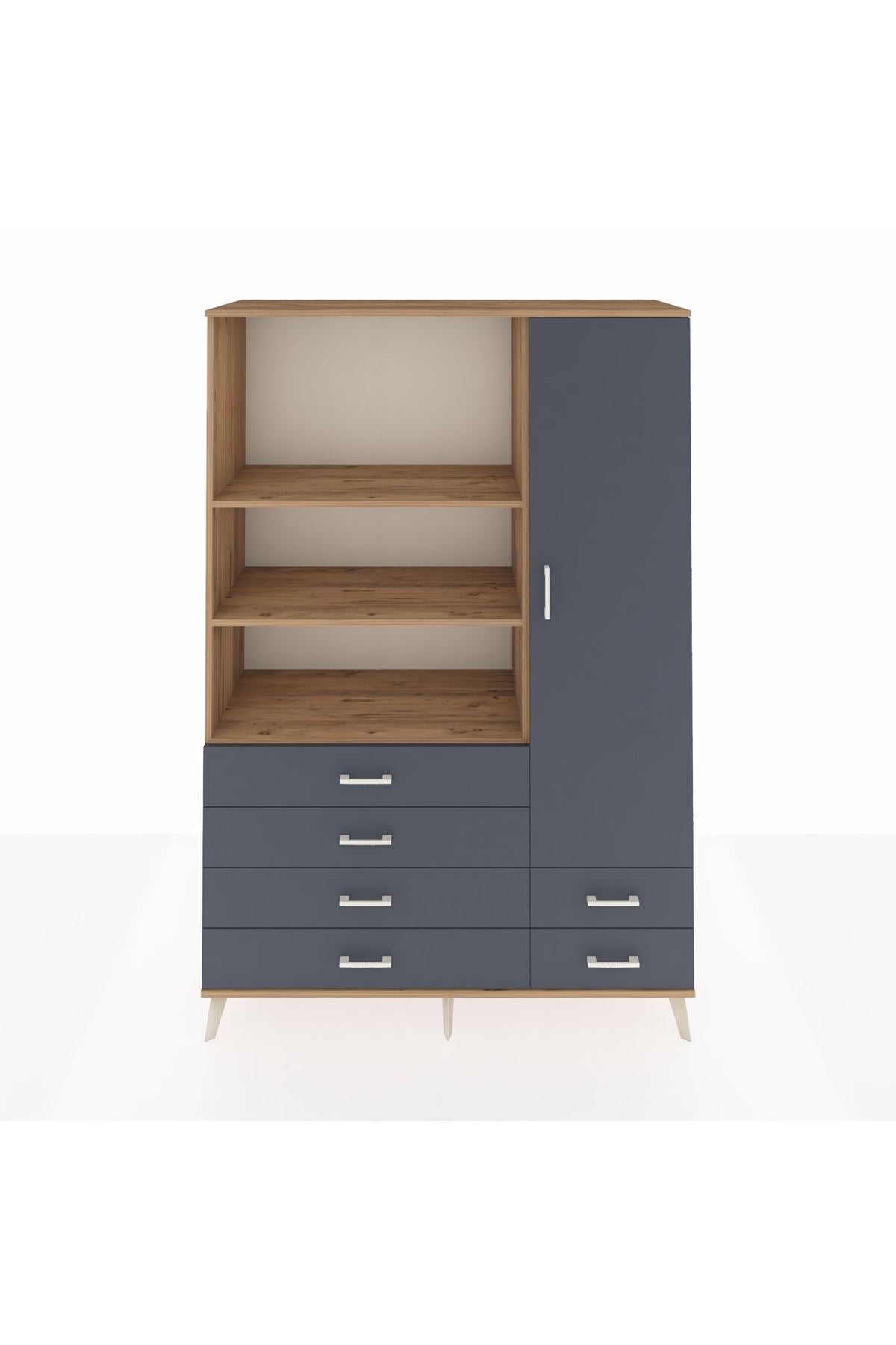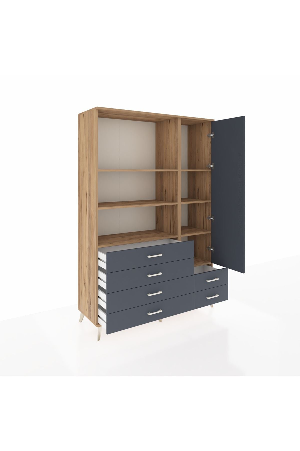 Hyperion Dolap 7 Raflı 6 Çekmeceli Tek Kapaklı 132x44x195 Çam-Antrasit/Antrasit