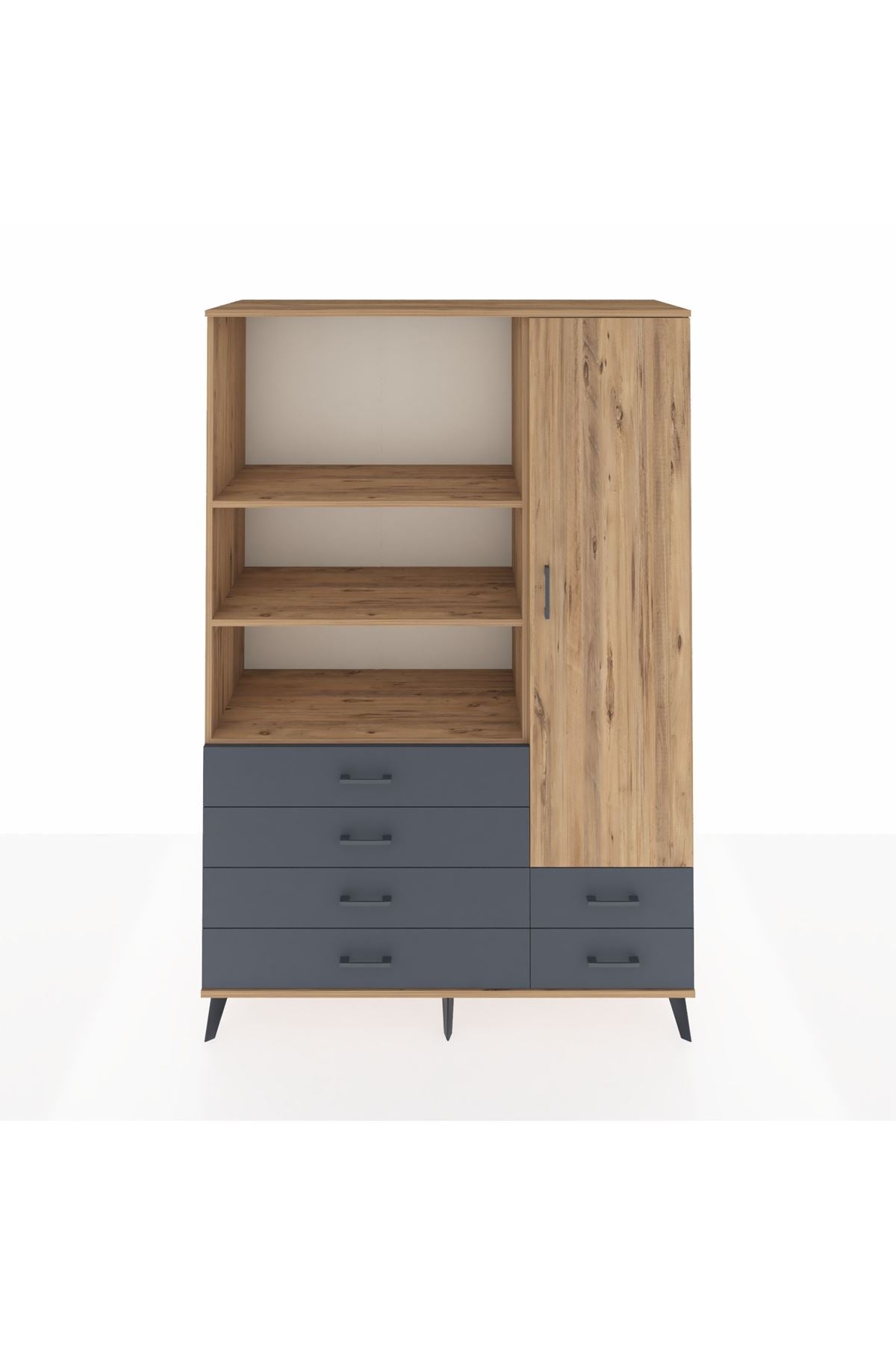 Hyperion Dolap 7 Raflı 6 Çekmeceli Tek Kapaklı 132x44x195 Çam-Çam/Antrasit
