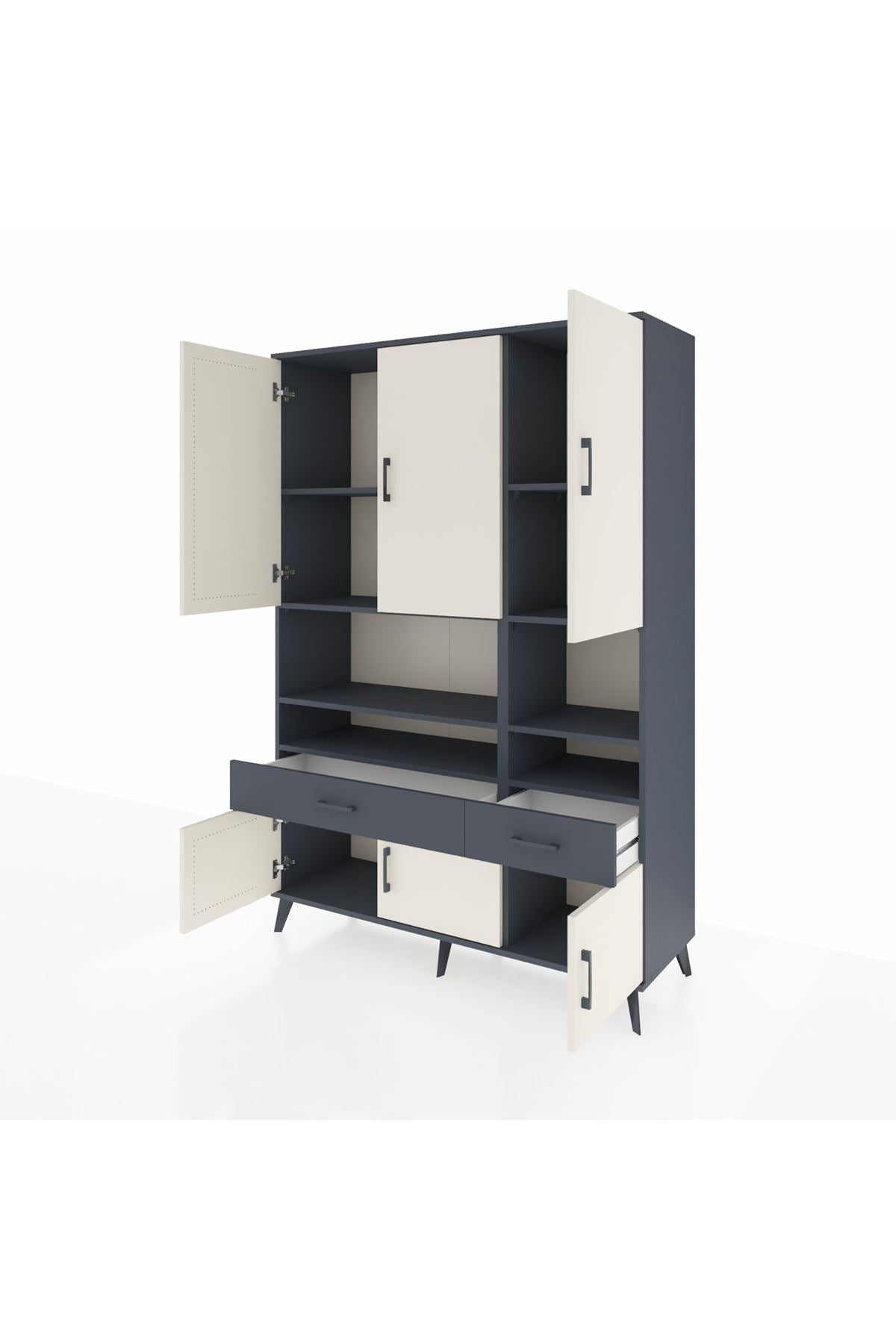 Hyperion Dolap 8 Raflı 2 Çekmeceli 6 Kapaklı 132x44x195 Antrasit-Aytaşı/Antrasit