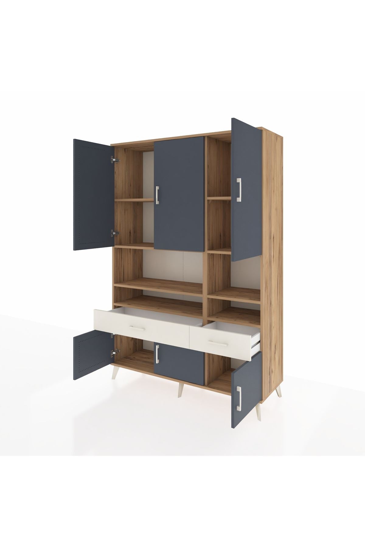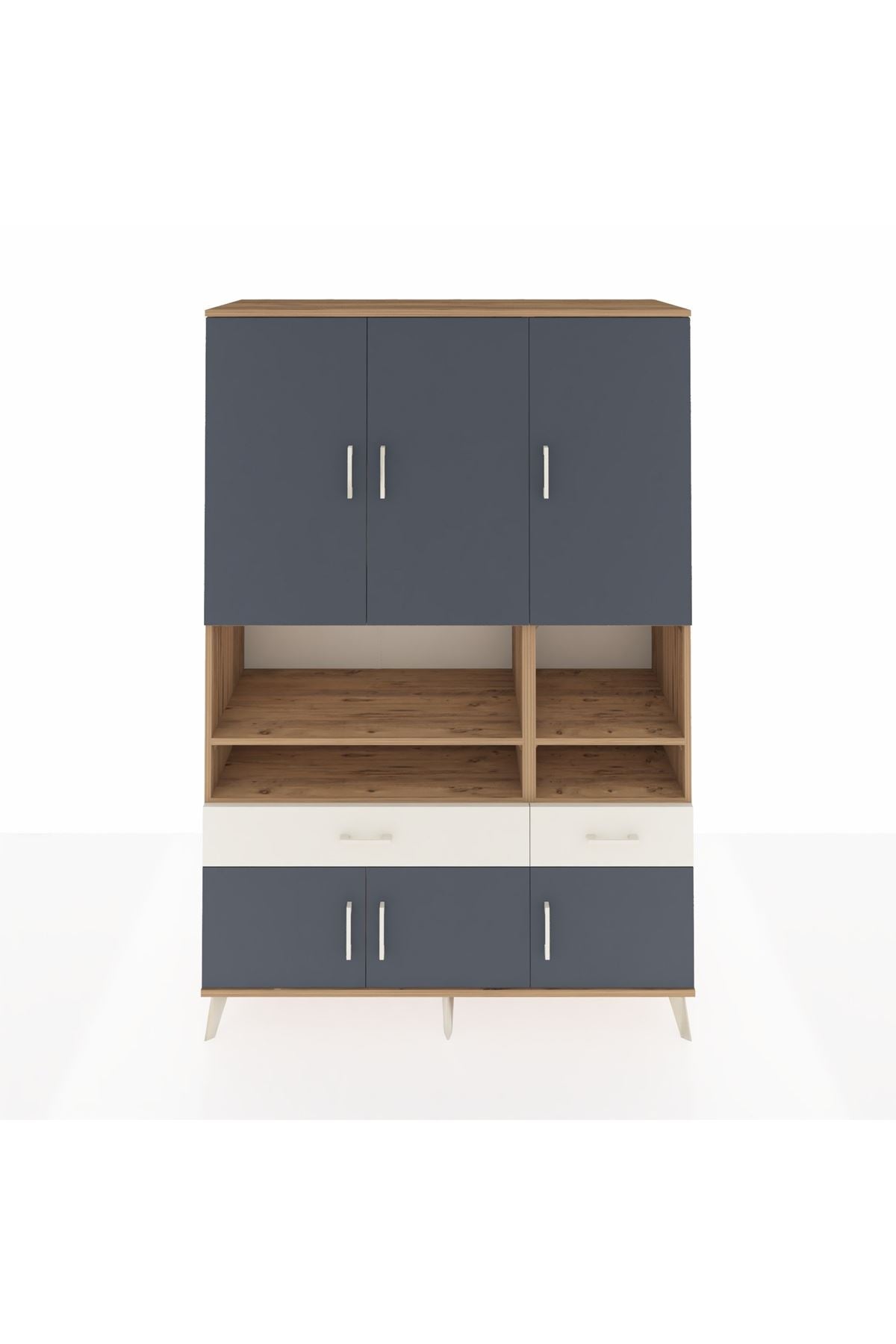 Hyperion Dolap 8 Raflı 2 Çekmeceli 6 Kapaklı 132x44x195 Çam-Antrasit/Aytaşı