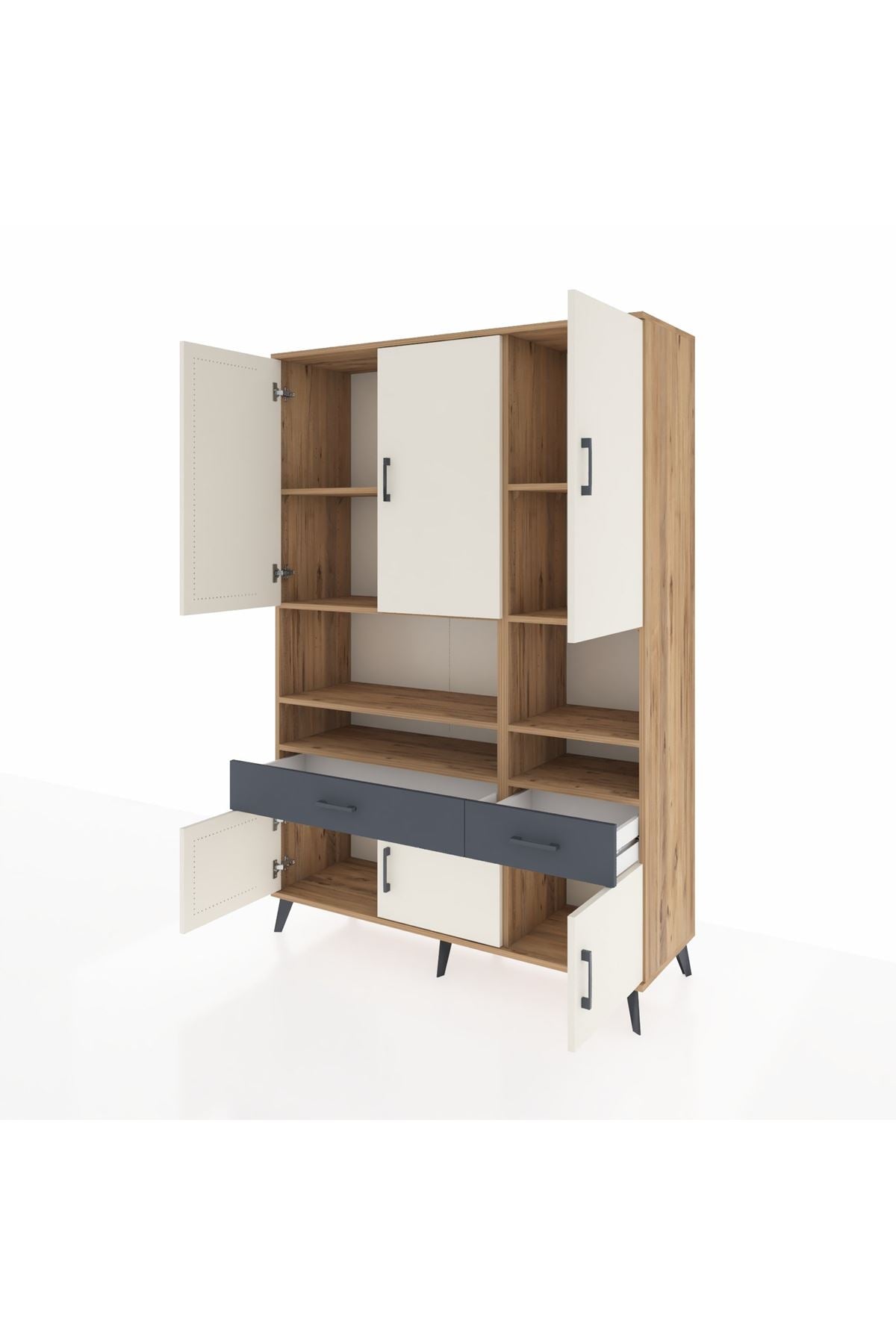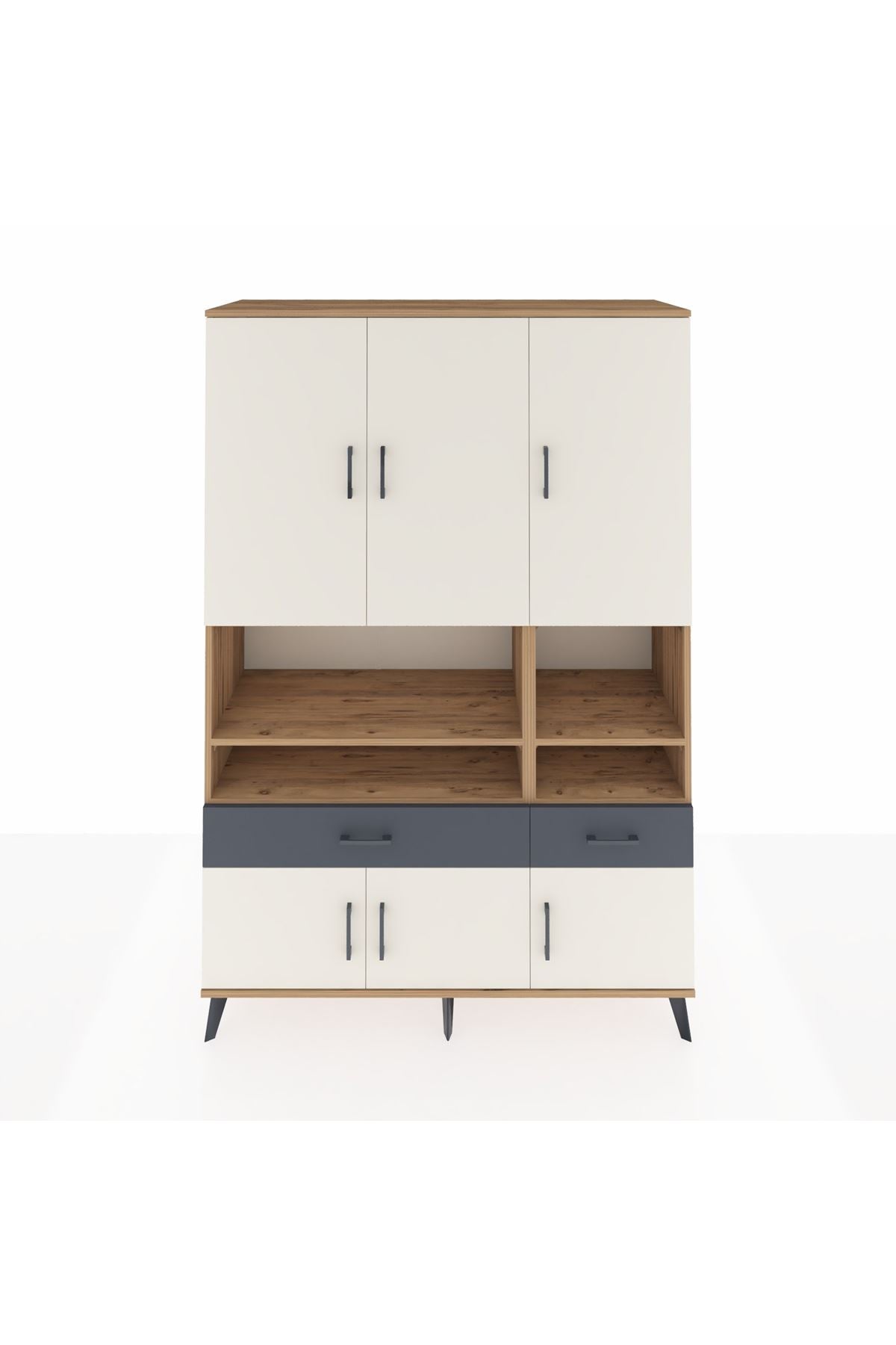Hyperion Dolap 8 Raflı 2 Çekmeceli 6 Kapaklı 132x44x195 Çam-Aytaşı/Antrasit