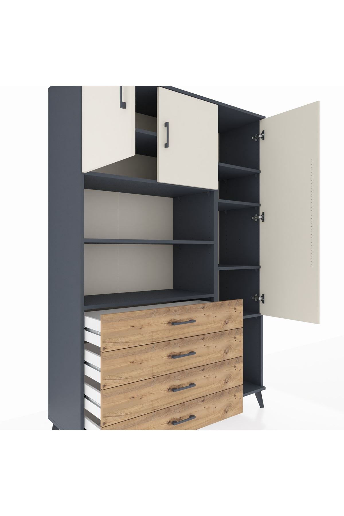 Hyperion Dolap 8 Raflı 4 Çekmeceli 3 Kapaklı 132x44x195 Antrasit-Aytaşı/Çam