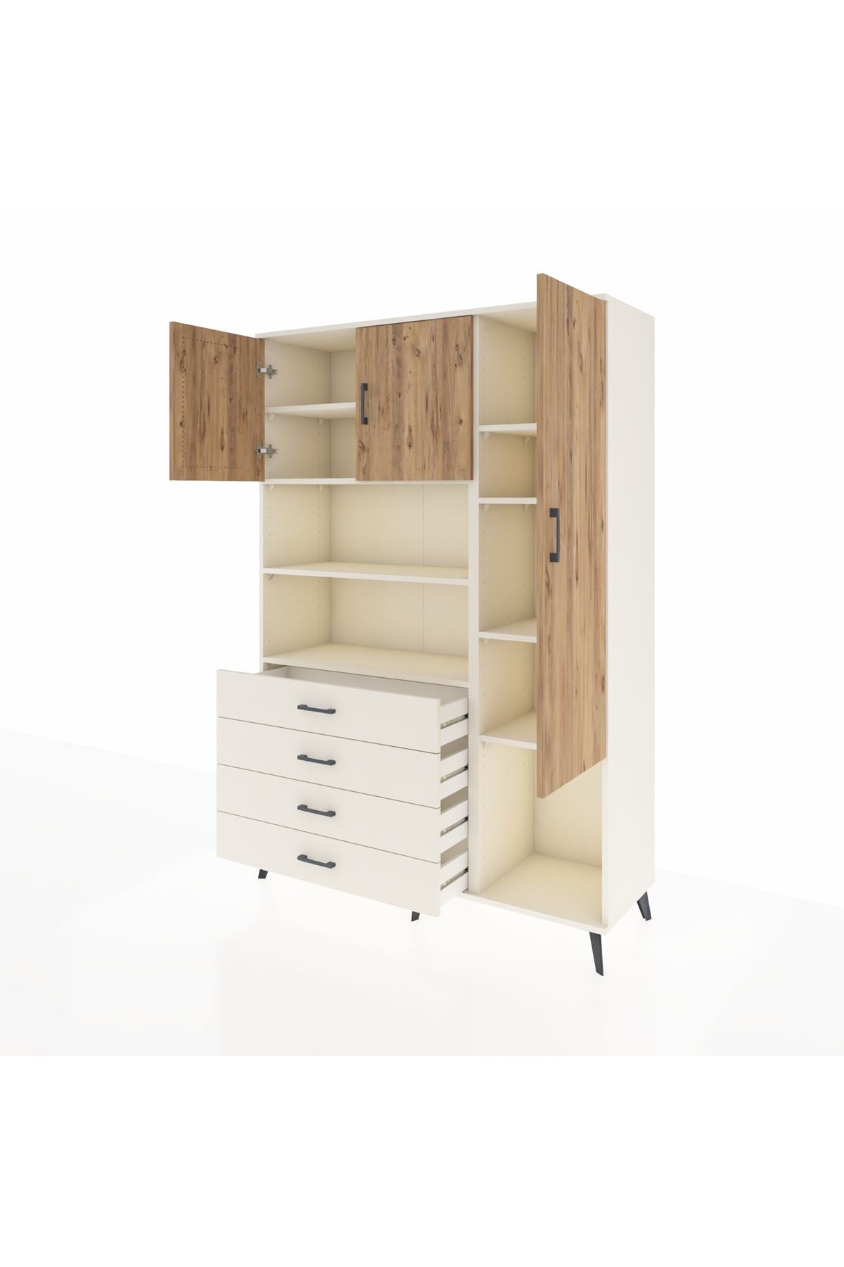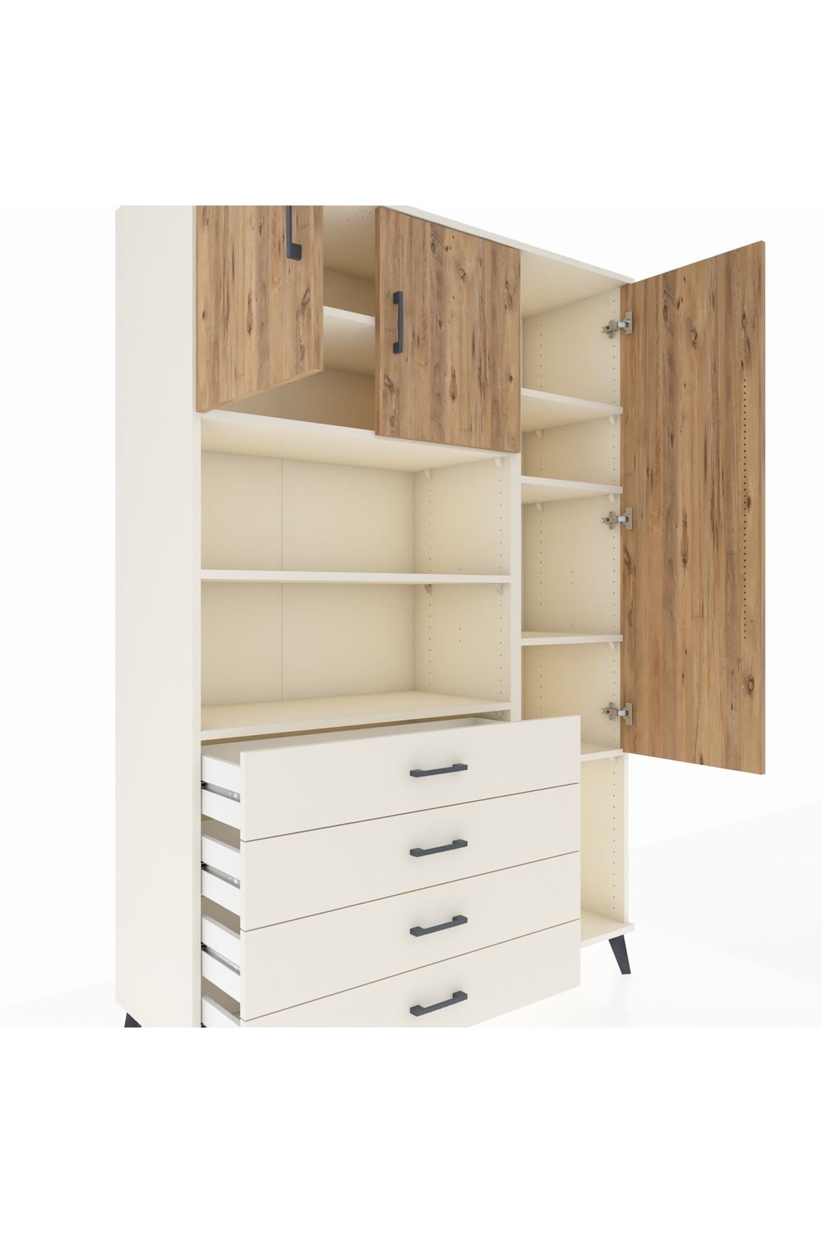 Hyperion Dolap 8 Raflı 4 Çekmeceli 3 Kapaklı 132x44x195 Aytaşı-Çam/Aytaşı