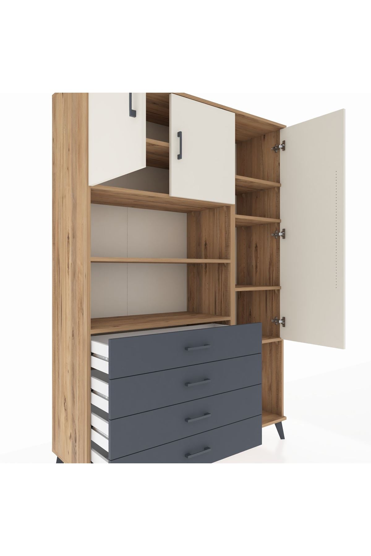 Hyperion Dolap 8 Raflı 4 Çekmeceli 3 Kapaklı 132x44x195 Çam-Aytaşı/Antrasit