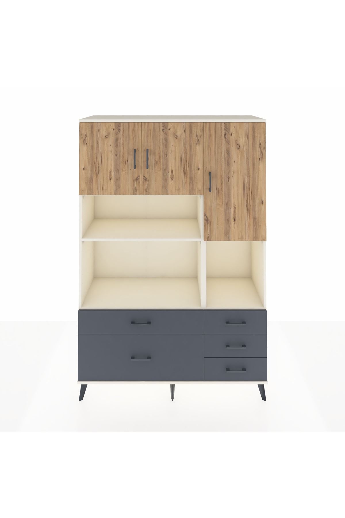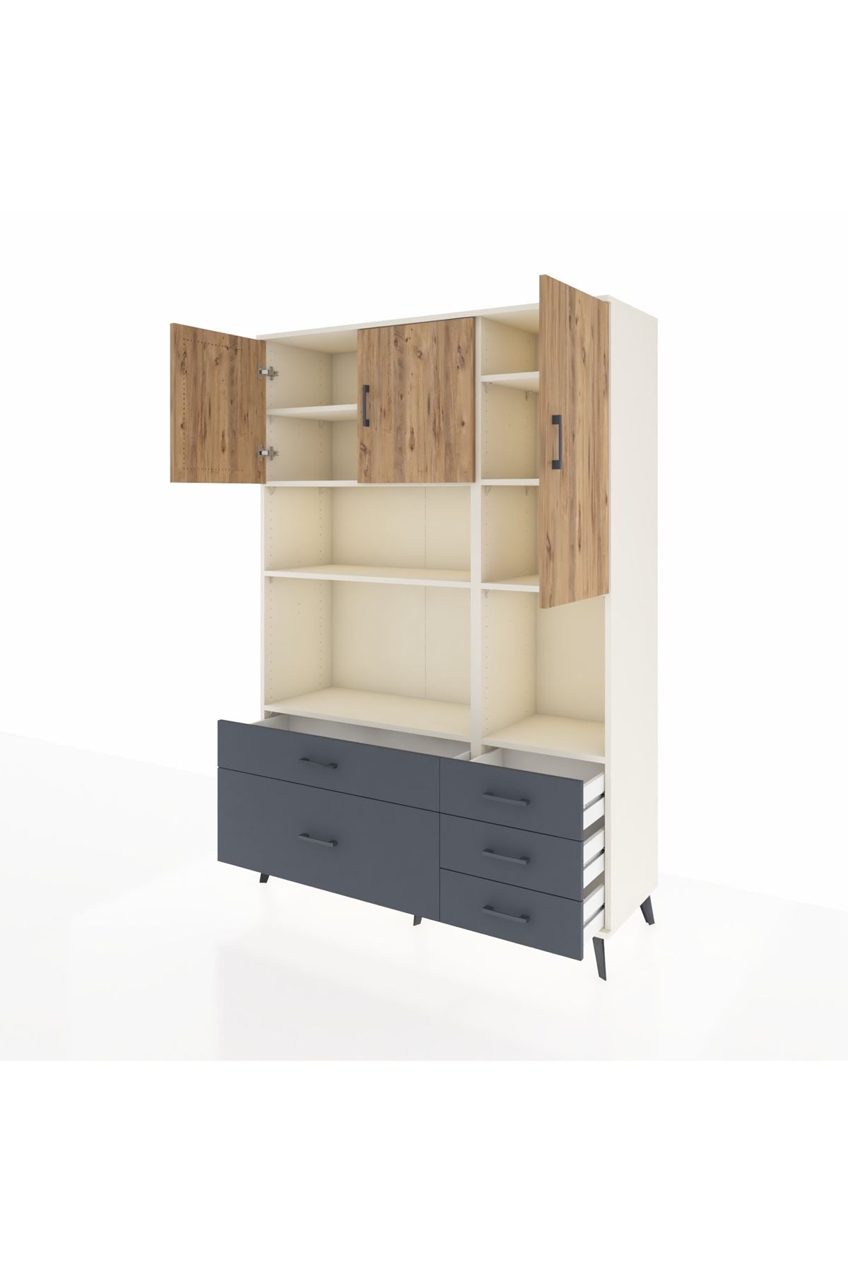Hyperion Dolap 8 Raflı 5 Çekmeceli 3 Kapaklı 132x44x195 Aytaşı-Çam/Antrasit