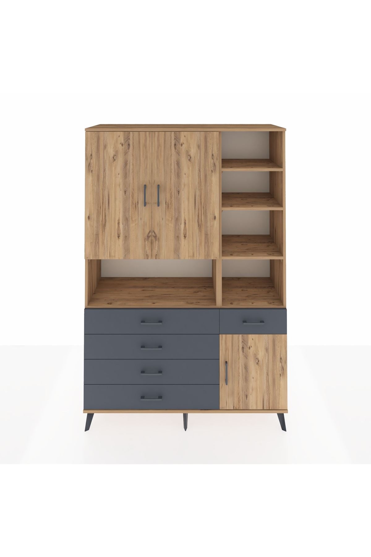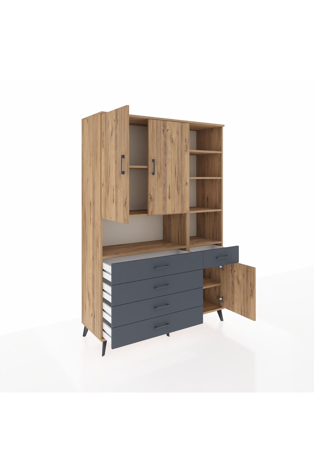 Hyperion Dolap 8 Raflı 5 Çekmeceli 3 Kapaklı 132x44x195 Çam-Çam/Antrasit