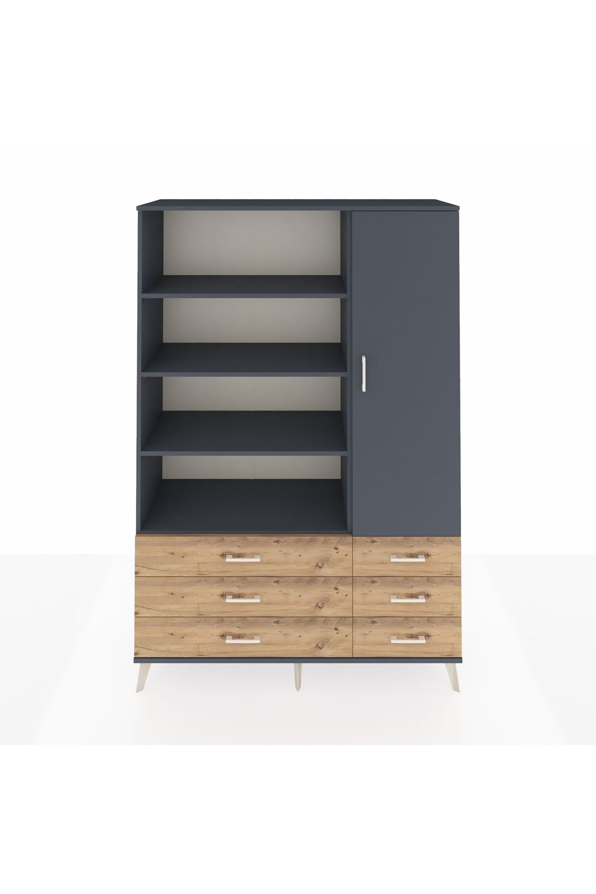 Hyperion Dolap 8 Raflı 6 Çekmeceli Tek Kapaklı 132x44x195 Antrasit-Antrasit/Çam