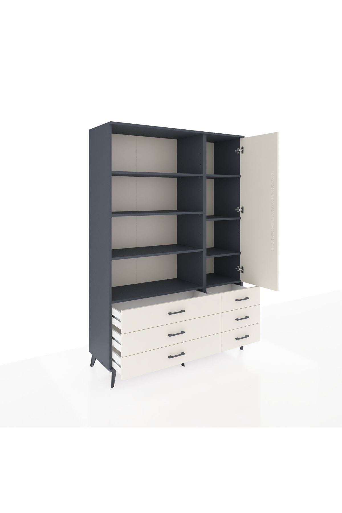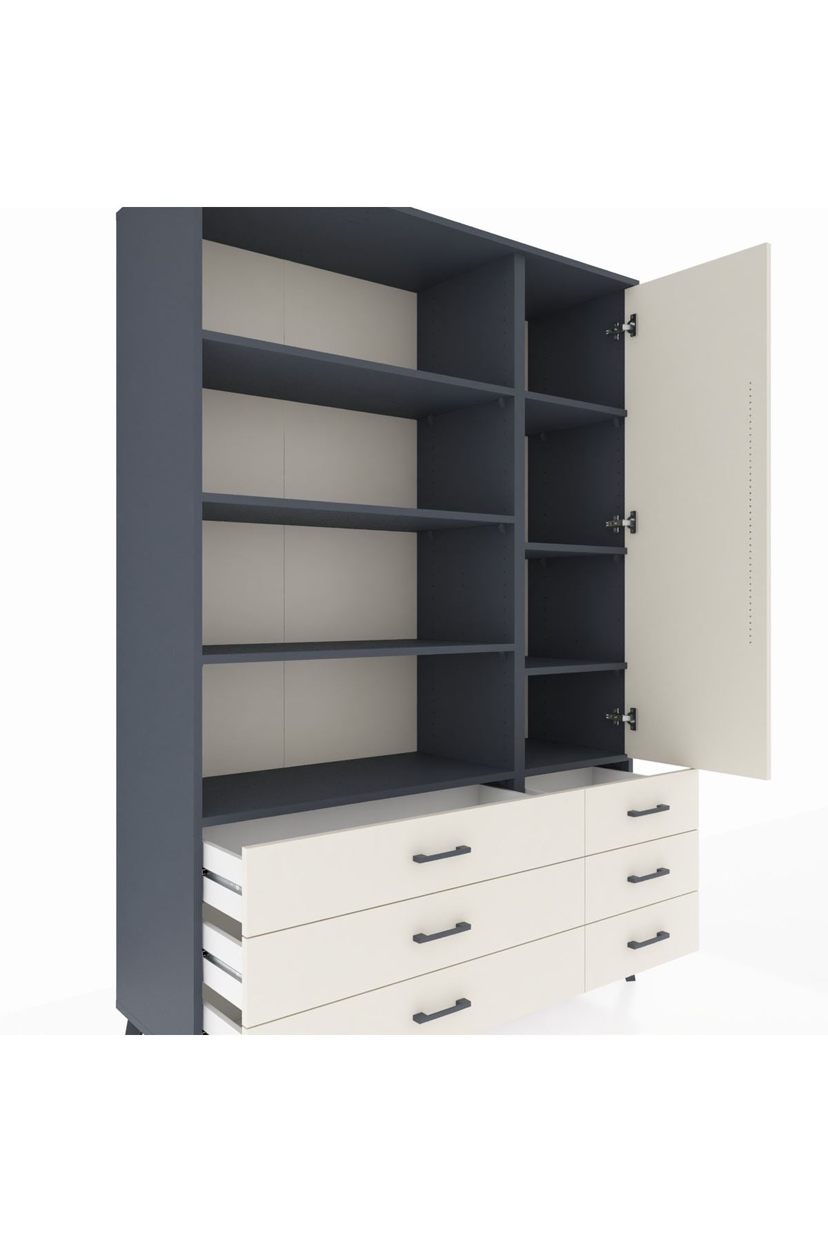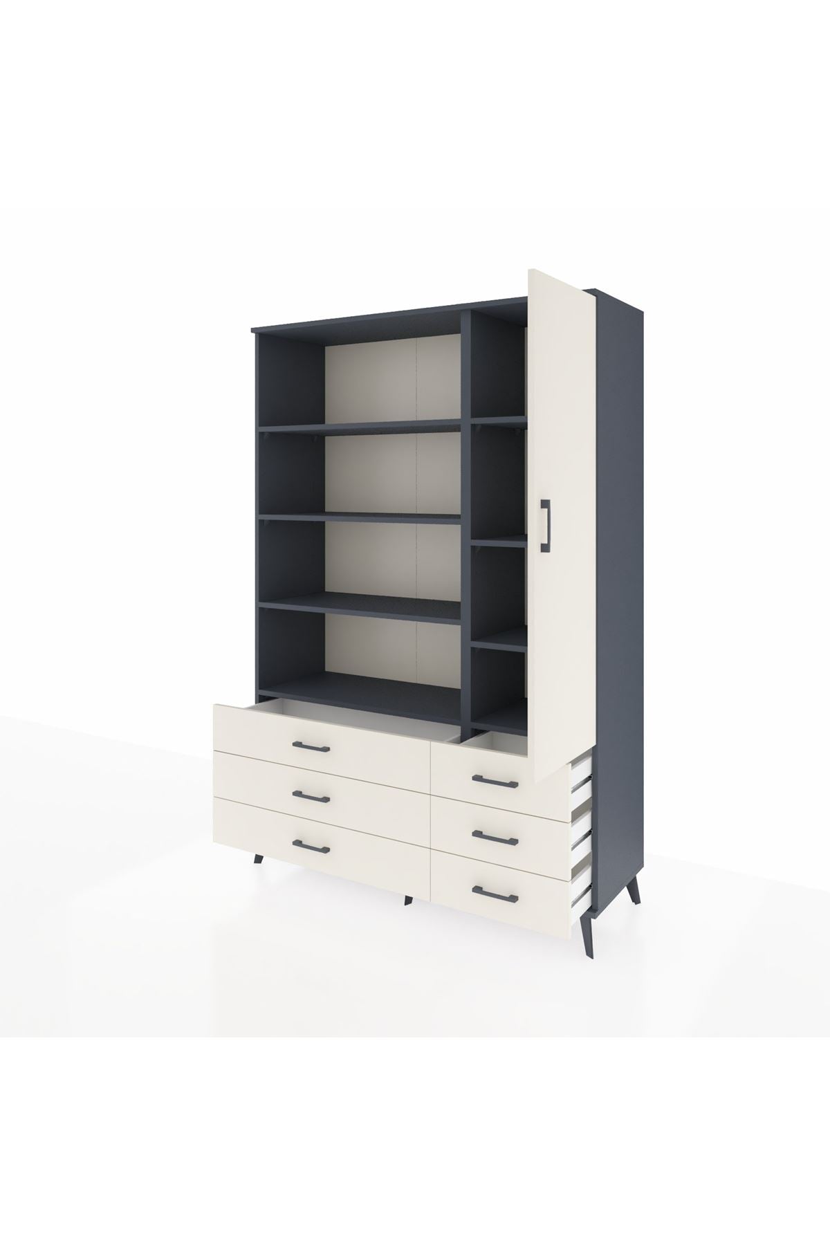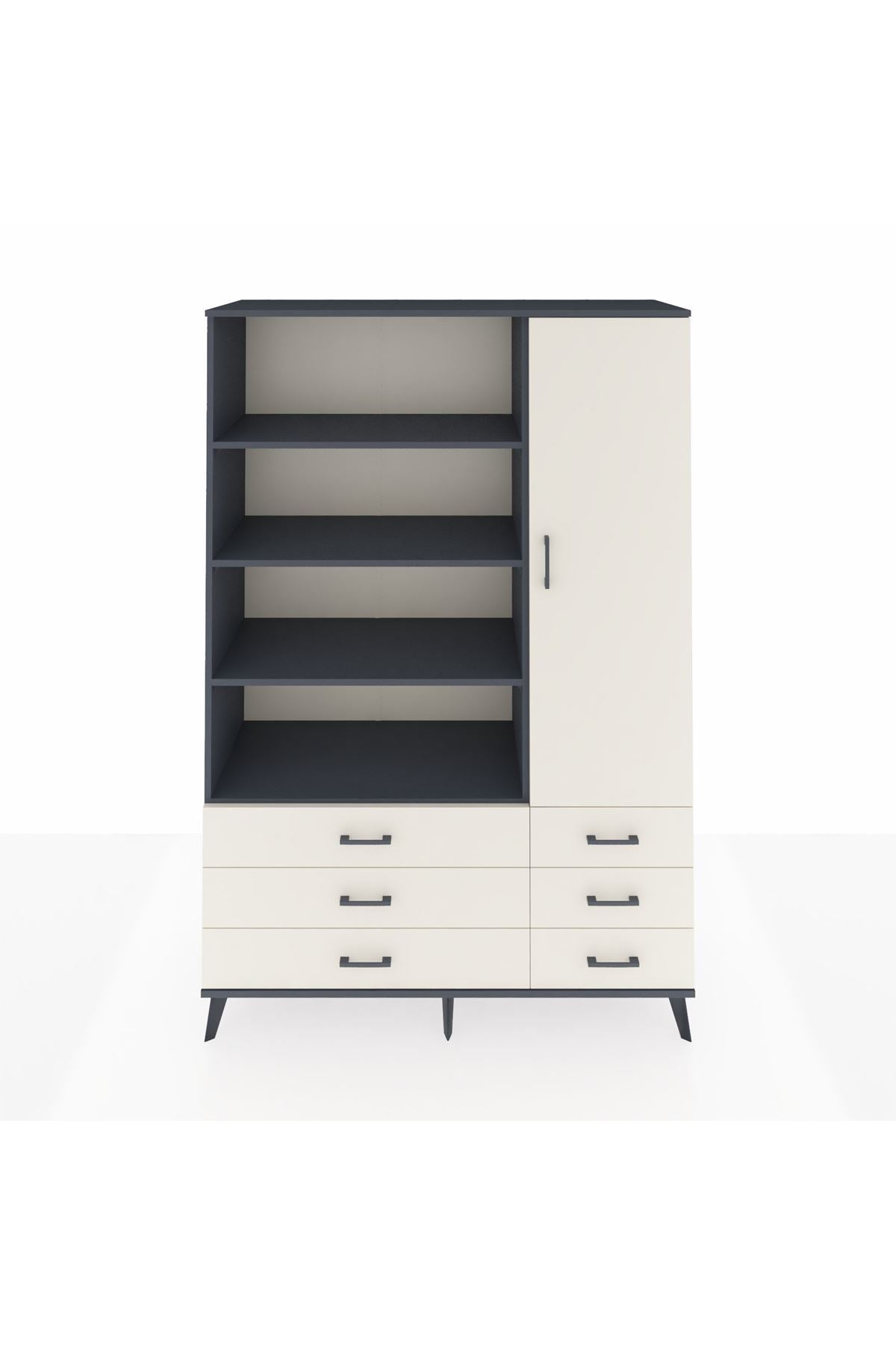 Hyperion Dolap 8 Raflı 6 Çekmeceli Tek Kapaklı 132x44x195 Antrasit-Aytaşı/Aytaşı