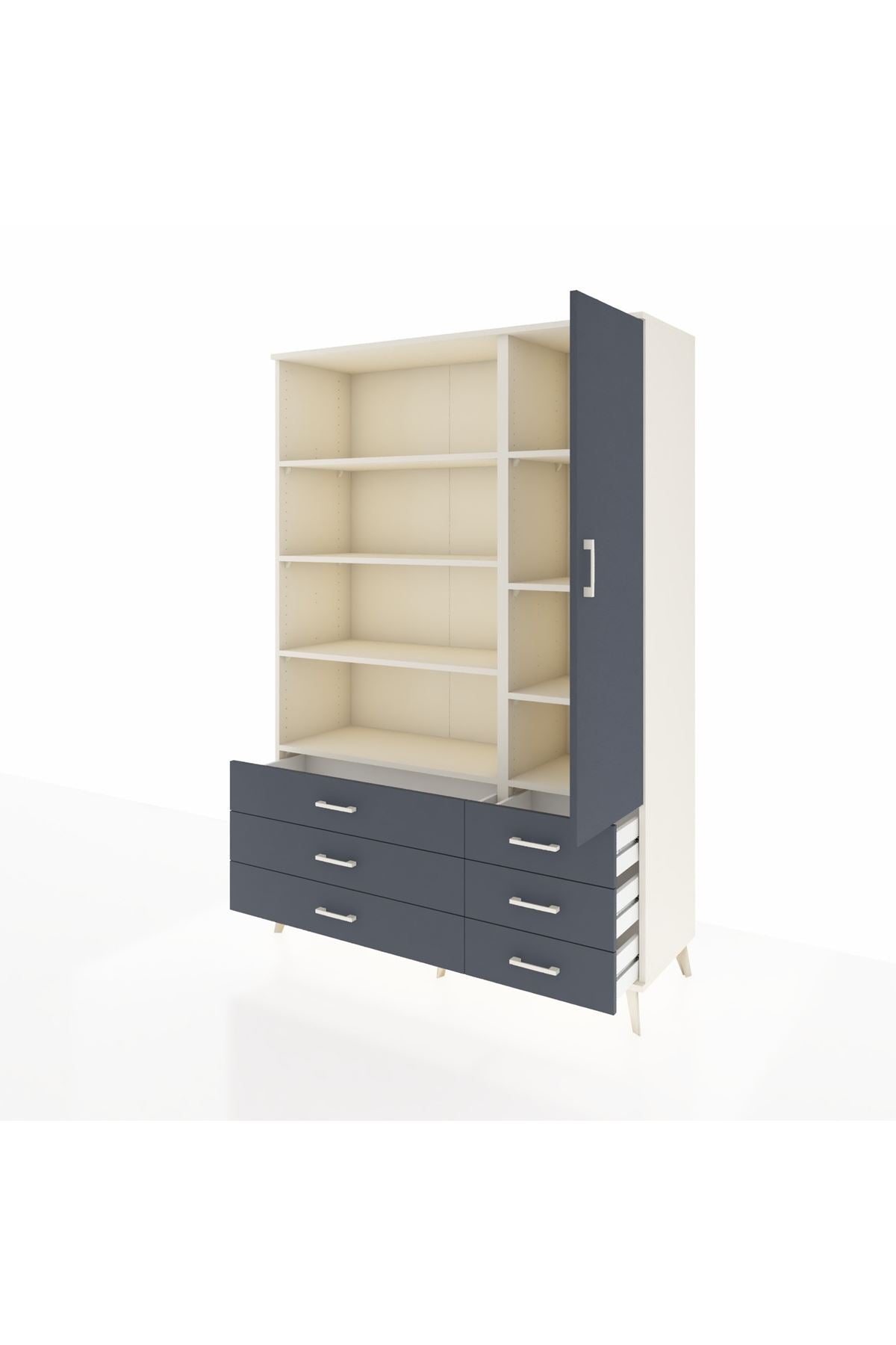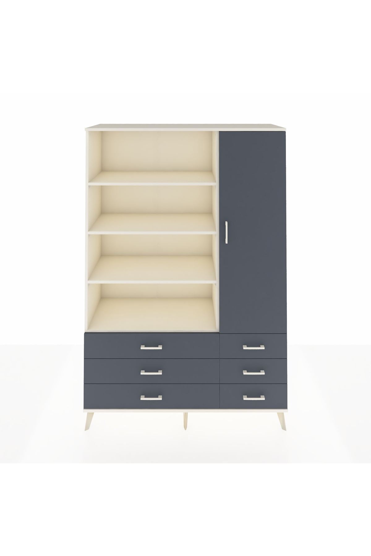 Hyperion Dolap 8 Raflı 6 Çekmeceli Tek Kapaklı 132x44x195 Aytaşı-Antrasit/Antrasit