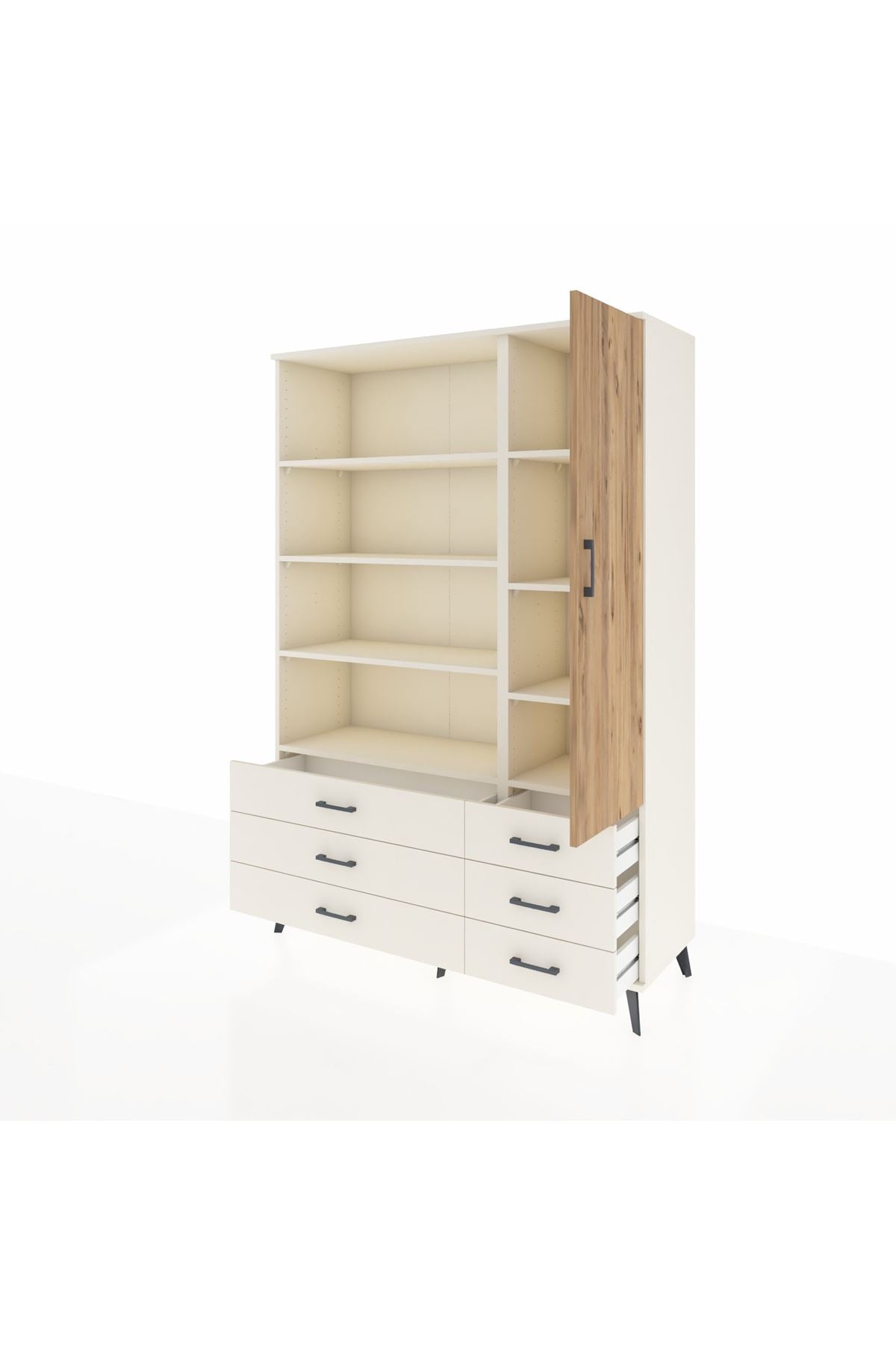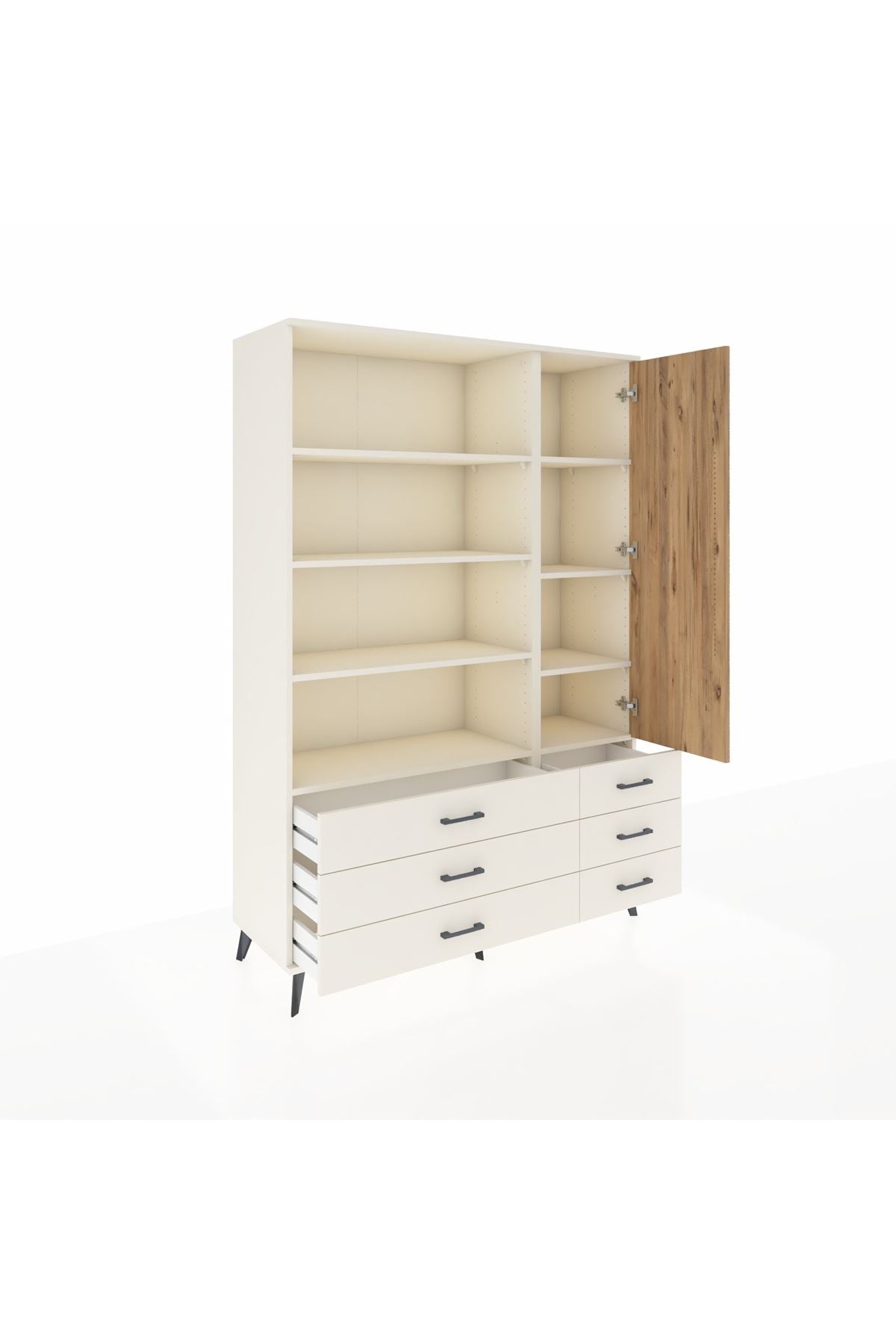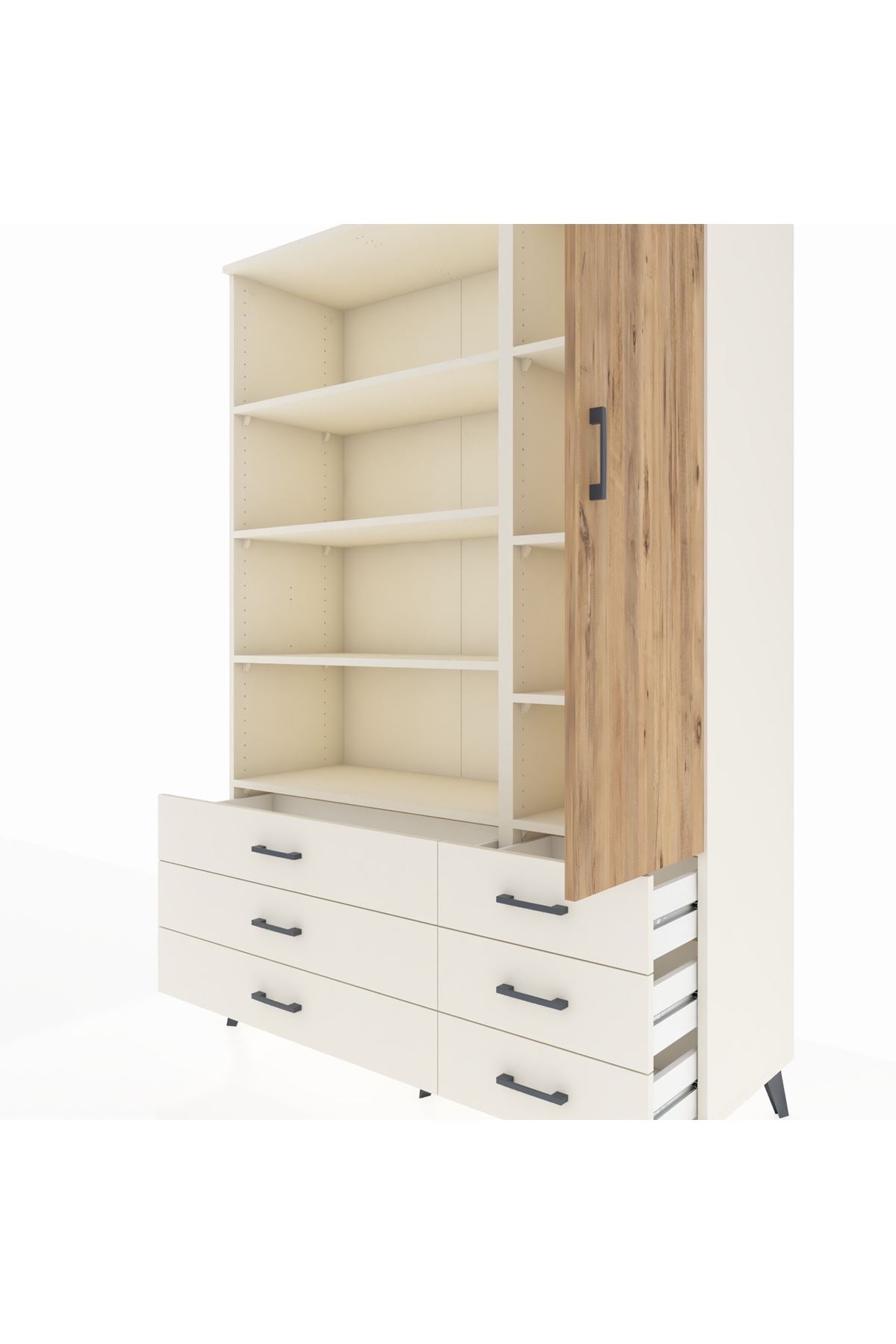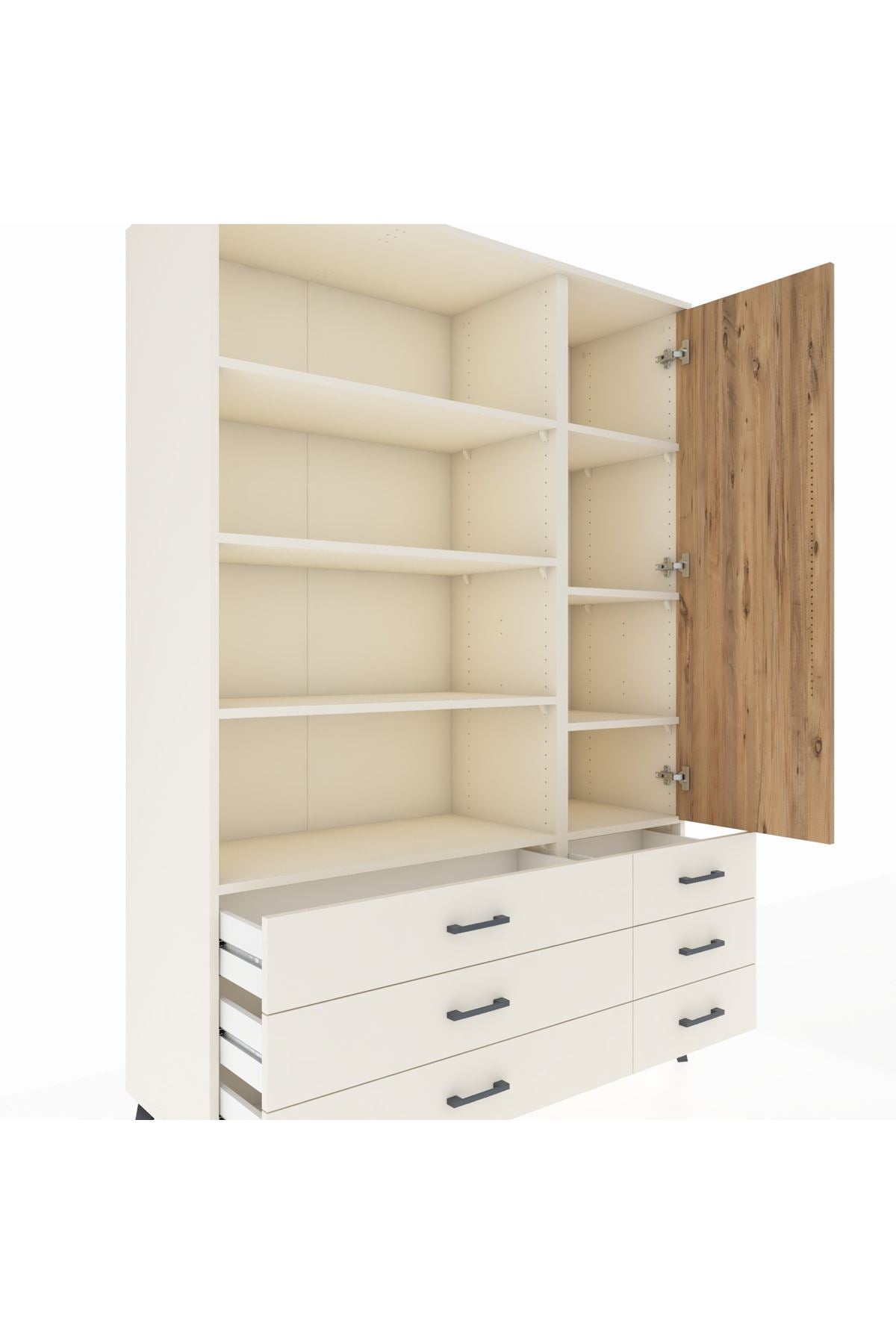 Hyperion Dolap 8 Raflı 6 Çekmeceli Tek Kapaklı 132x44x195 Aytaşı-Çam/Aytaşı