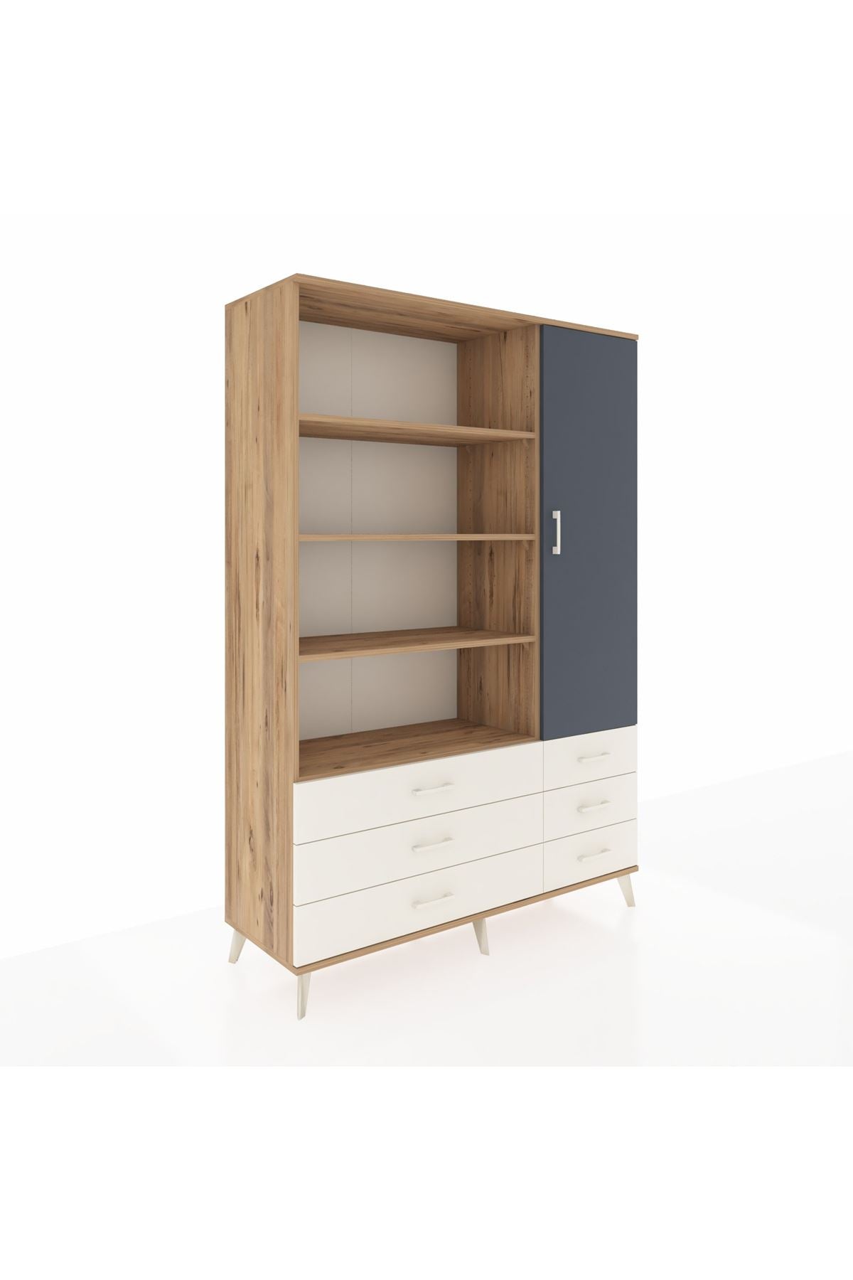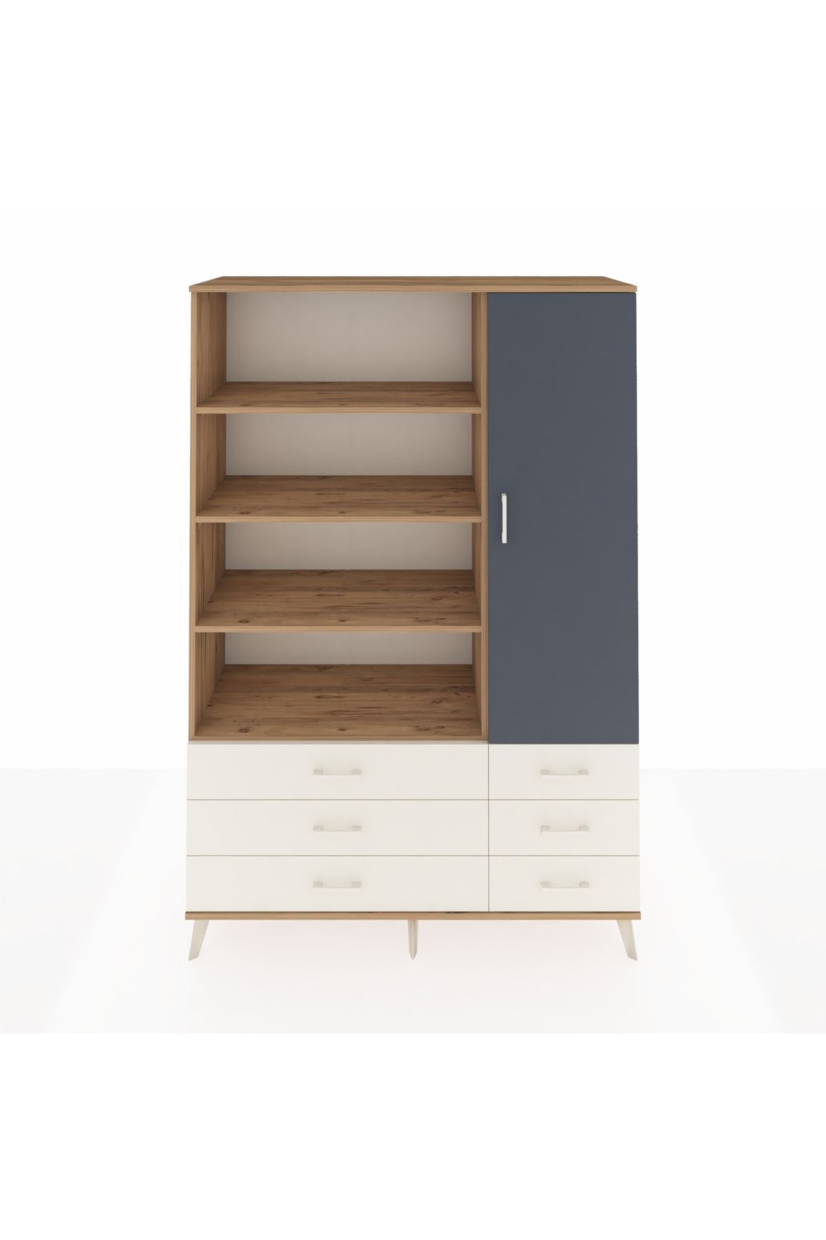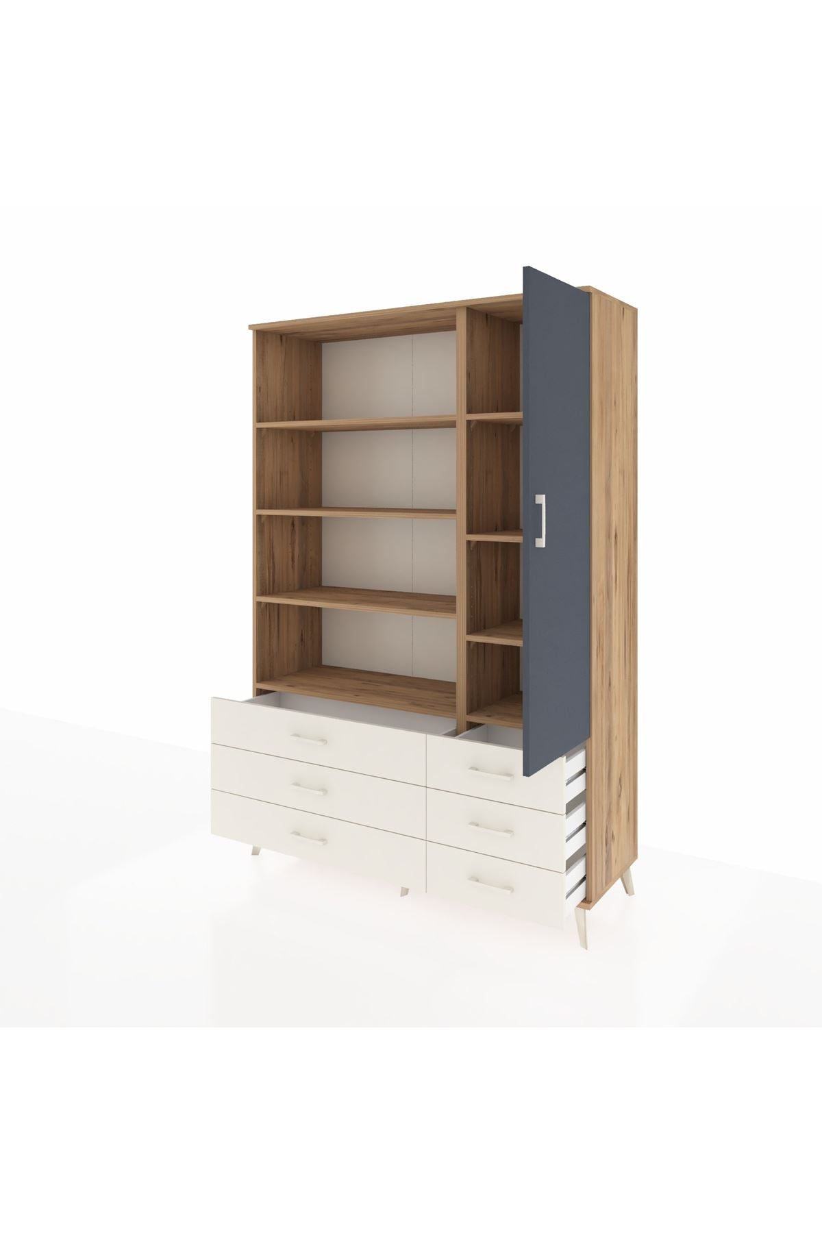 Hyperion Dolap 8 Raflı 6 Çekmeceli Tek Kapaklı 132x44x195 Çam-Antrasit/Aytaşı