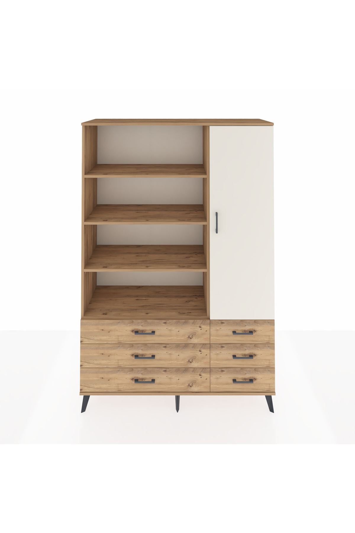 Hyperion Dolap 8 Raflı 6 Çekmeceli Tek Kapaklı 132x44x195 Çam-Aytaşı/Çam
