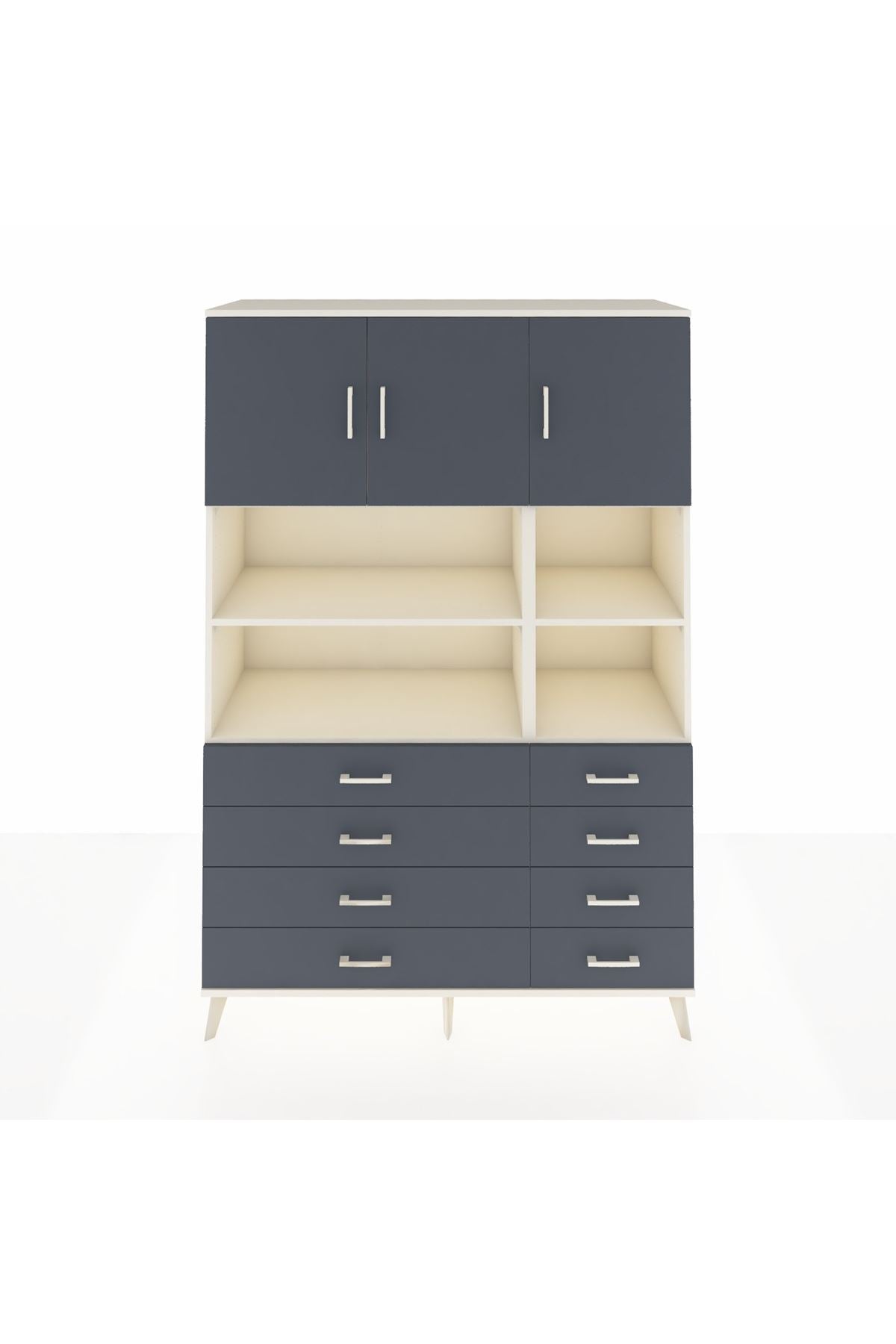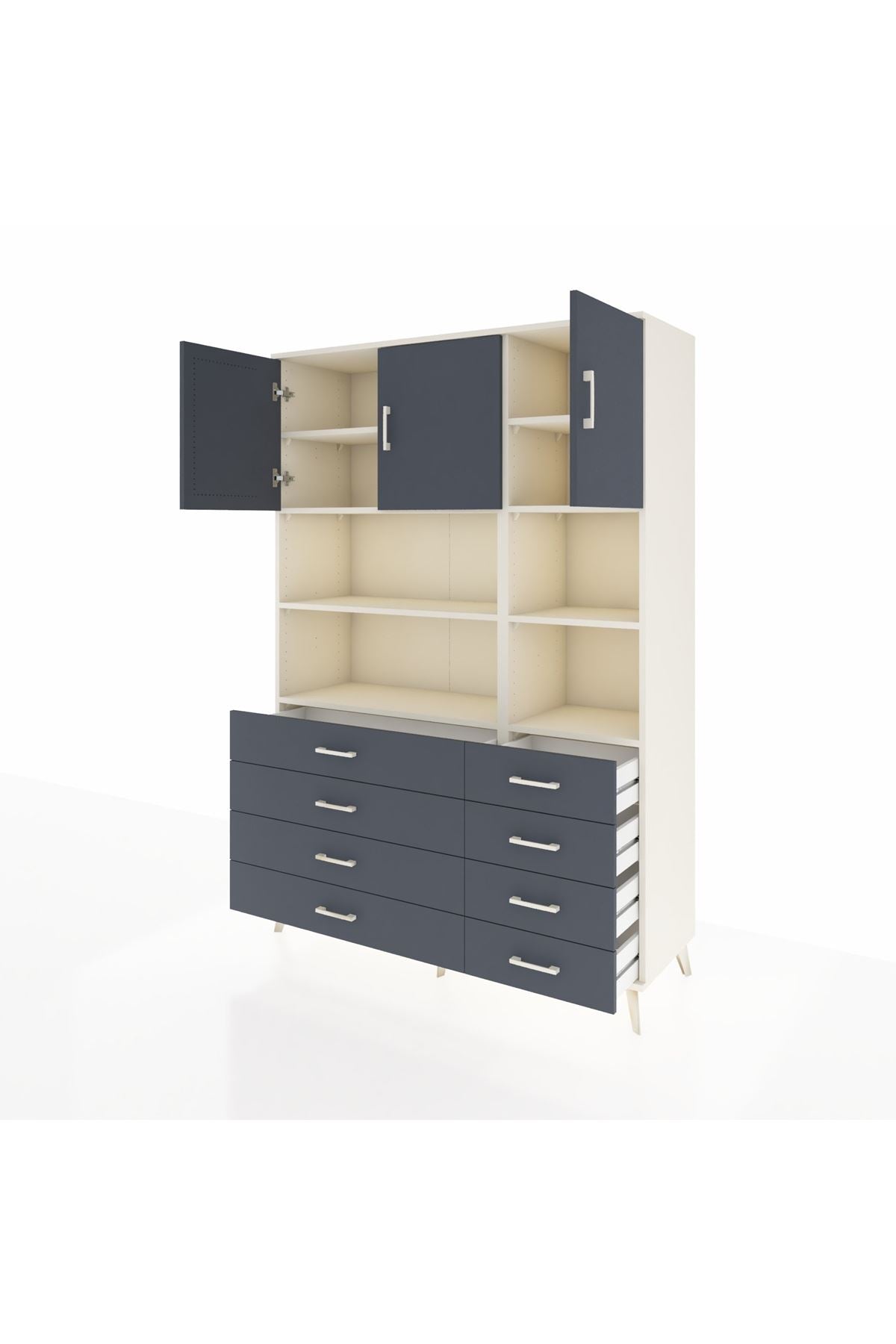 Hyperion Dolap 8 Raflı 8 Çekmeceli 3 Kapaklı 132x44x195 Aytaşı-Antrasit/Antrasit