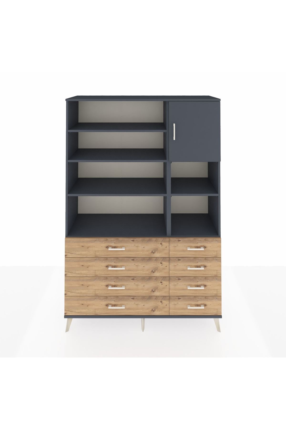 Hyperion Dolap 8 Raflı 8 Çekmeceli Tek Kapaklı 132x44x195 Antrasit-Antrasit/Çam