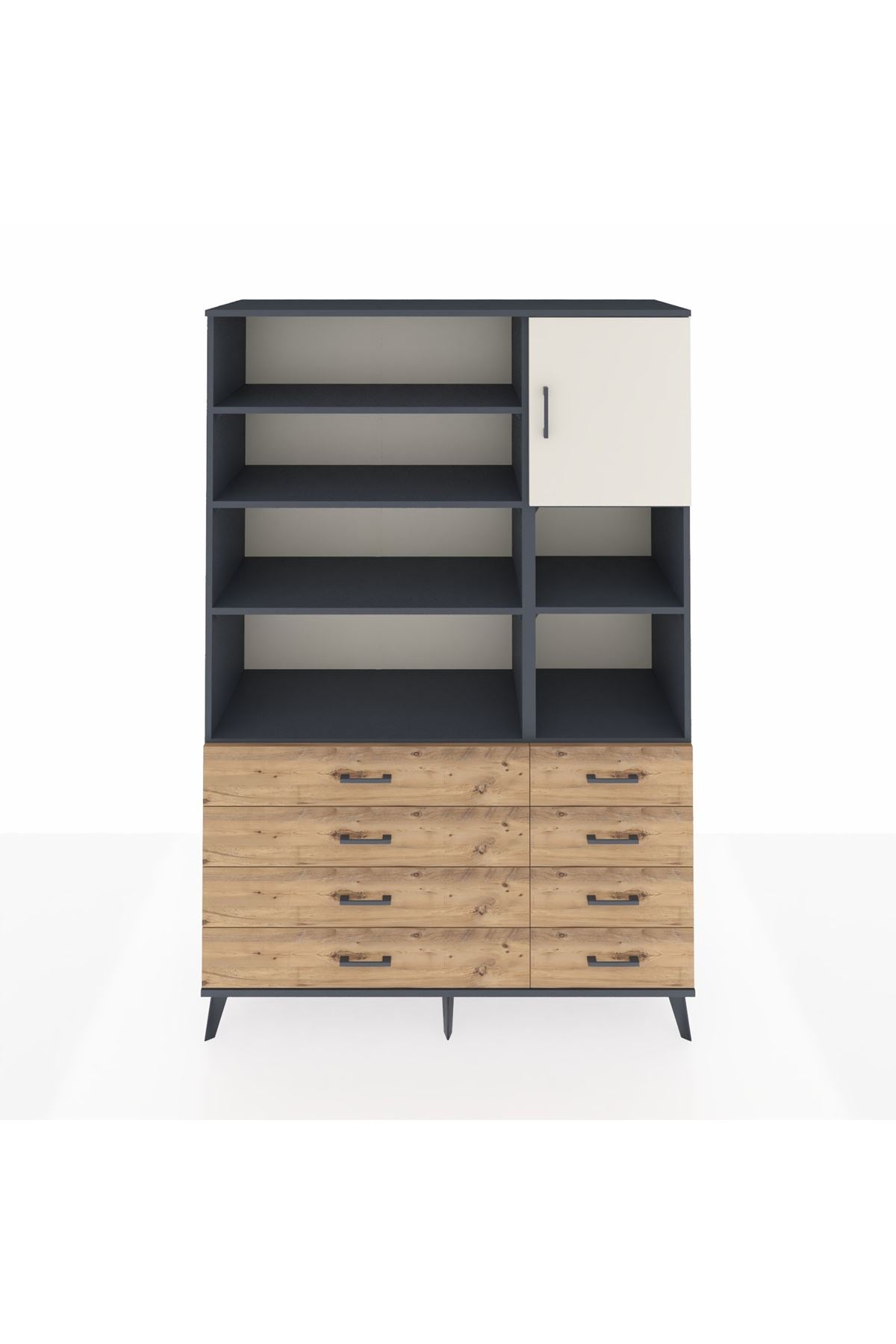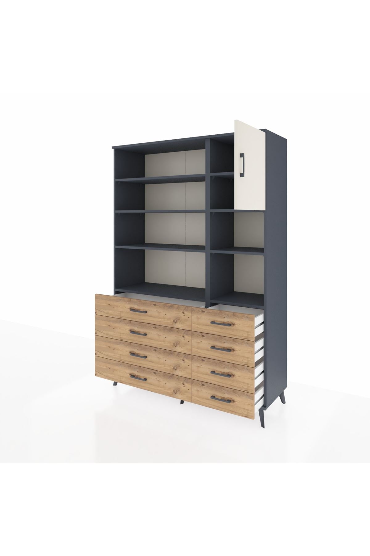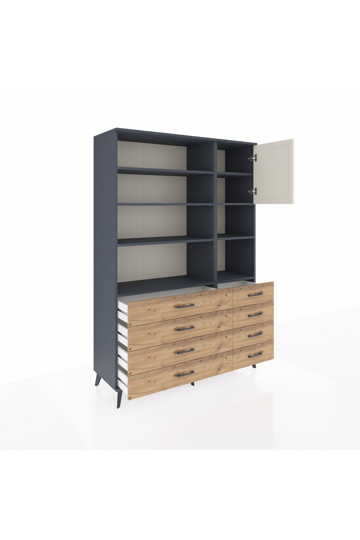 Hyperion Dolap 8 Raflı 8 Çekmeceli Tek Kapaklı 132x44x195 Antrasit-Aytaşı/Çam