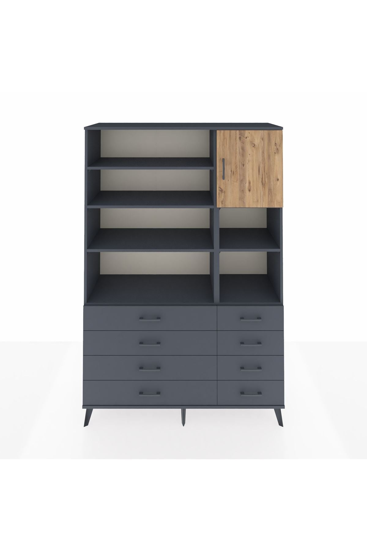 Hyperion Dolap 8 Raflı 8 Çekmeceli Tek Kapaklı 132x44x195 Antrasit-Çam/Antrasit