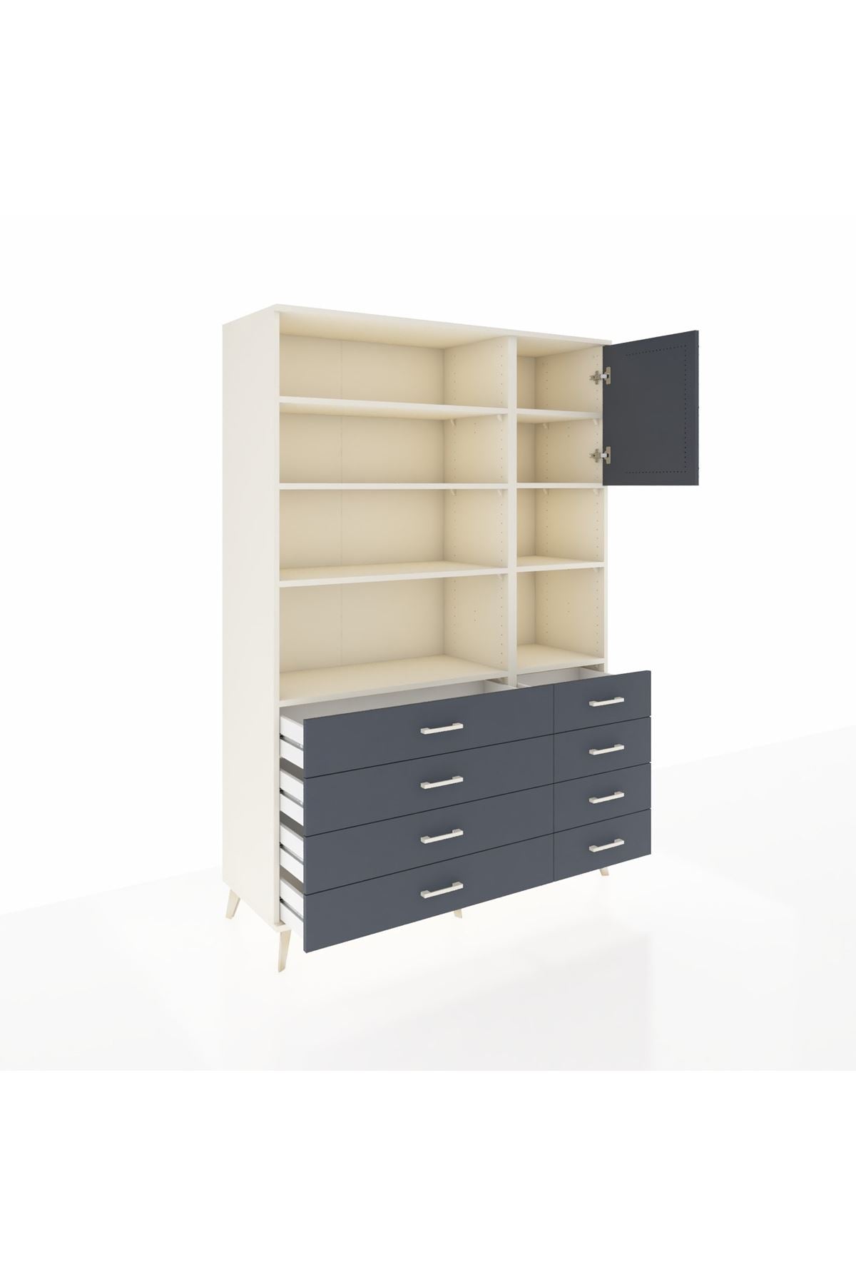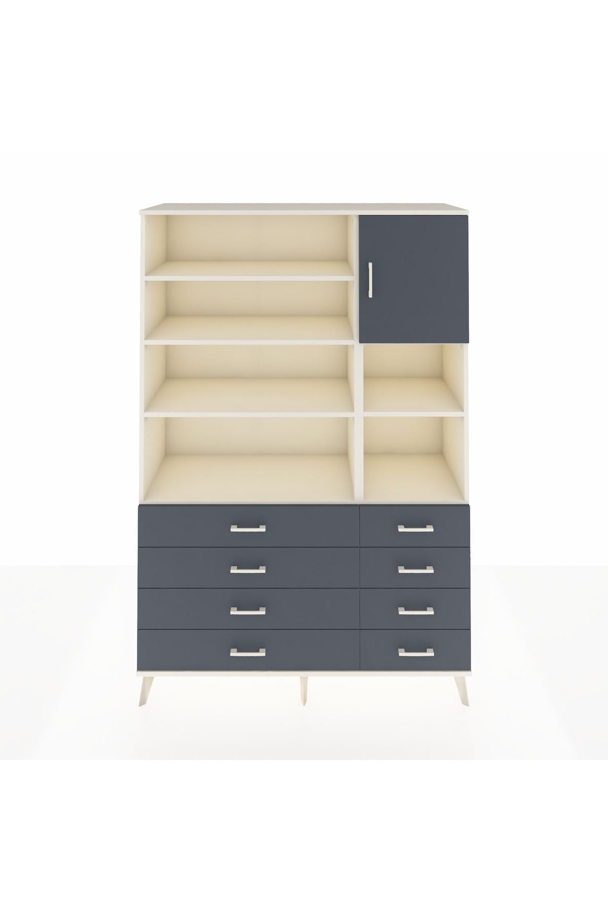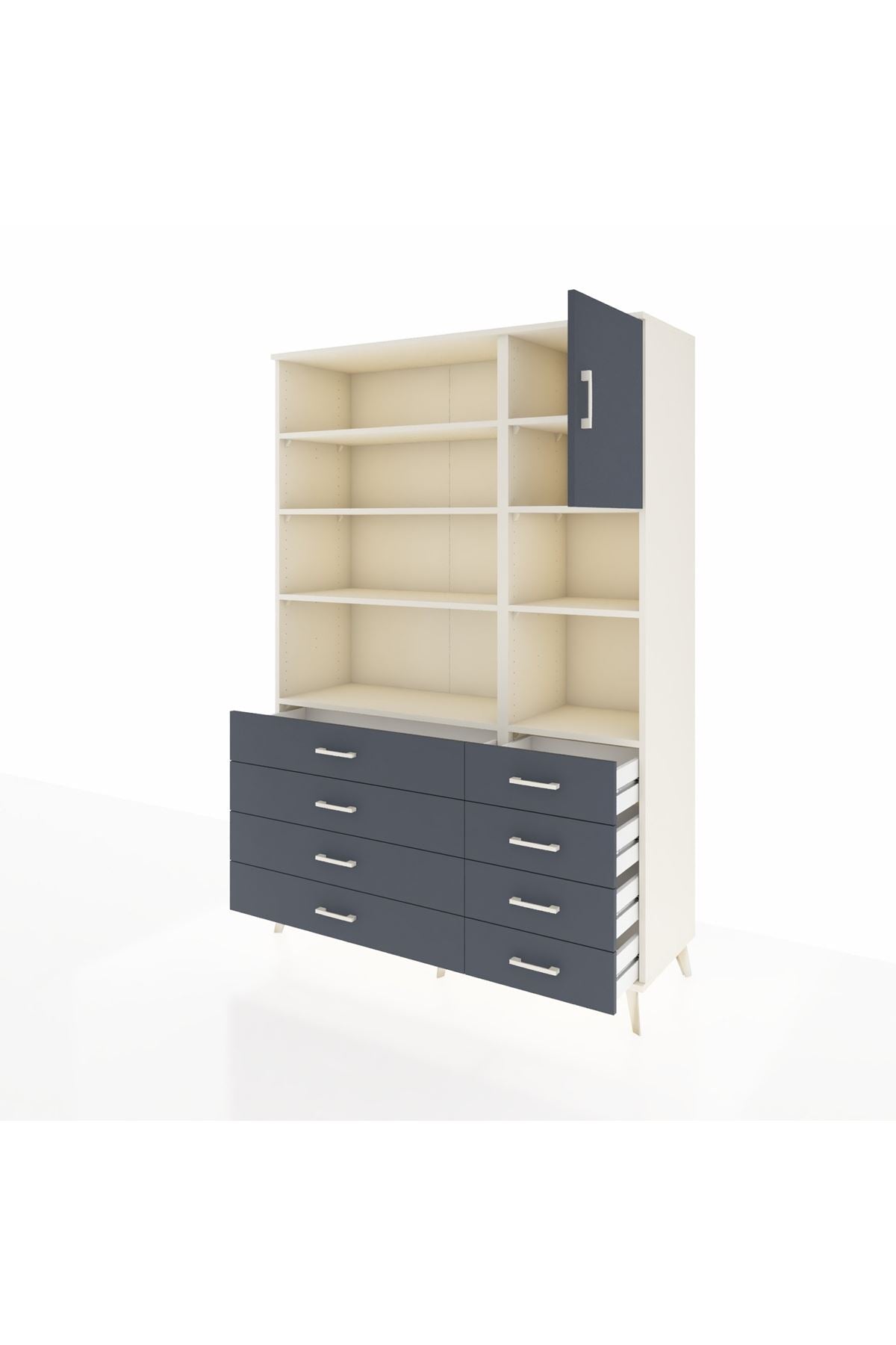 Hyperion Dolap 8 Raflı 8 Çekmeceli Tek Kapaklı 132x44x195 Aytaşı-Antrasit/Antrasit