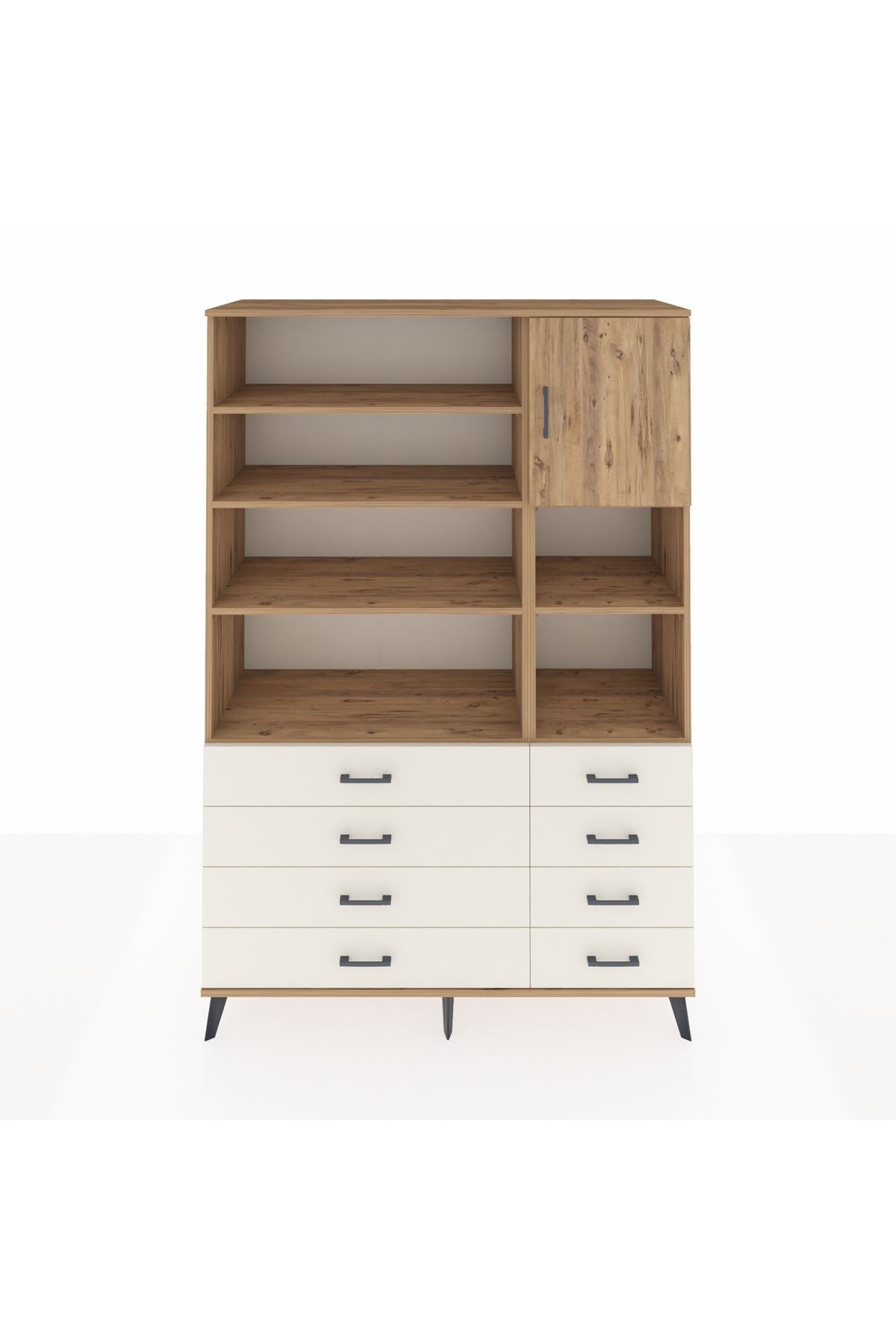 Hyperion Dolap 8 Raflı 8 Çekmeceli Tek Kapaklı 132x44x195 Çam-Çam/Aytaşı
