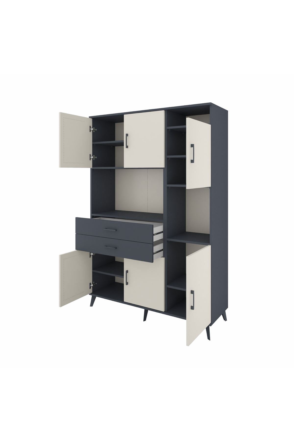 Hyperion Dolap 9 Raflı 2 Çekmeceli 6 Kapaklı 132x44x195 Antrasit-Aytaşı/Antrasit
