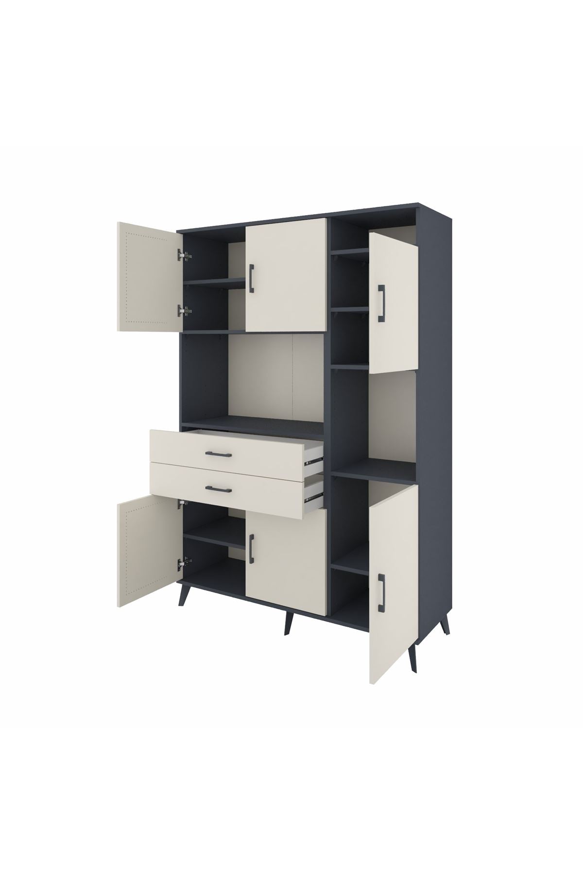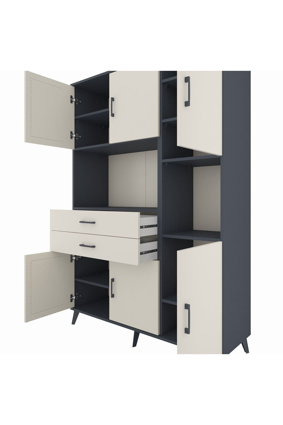 Hyperion Dolap 9 Raflı 2 Çekmeceli 6 Kapaklı 132x44x195 Antrasit-Aytaşı/Aytaşı
