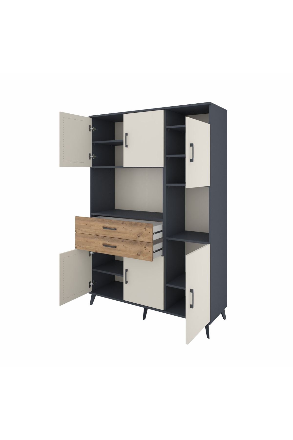 Hyperion Dolap 9 Raflı 2 Çekmeceli 6 Kapaklı 132x44x195 Antrasit-Aytaşı/Çam