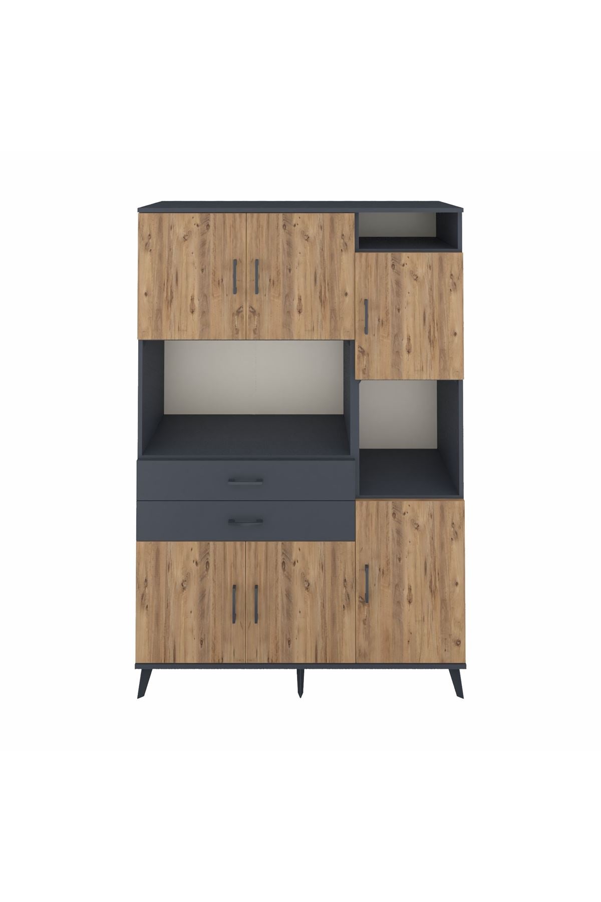 Hyperion Dolap 9 Raflı 2 Çekmeceli 6 Kapaklı 132x44x195 Antrasit-Çam/Antrasit