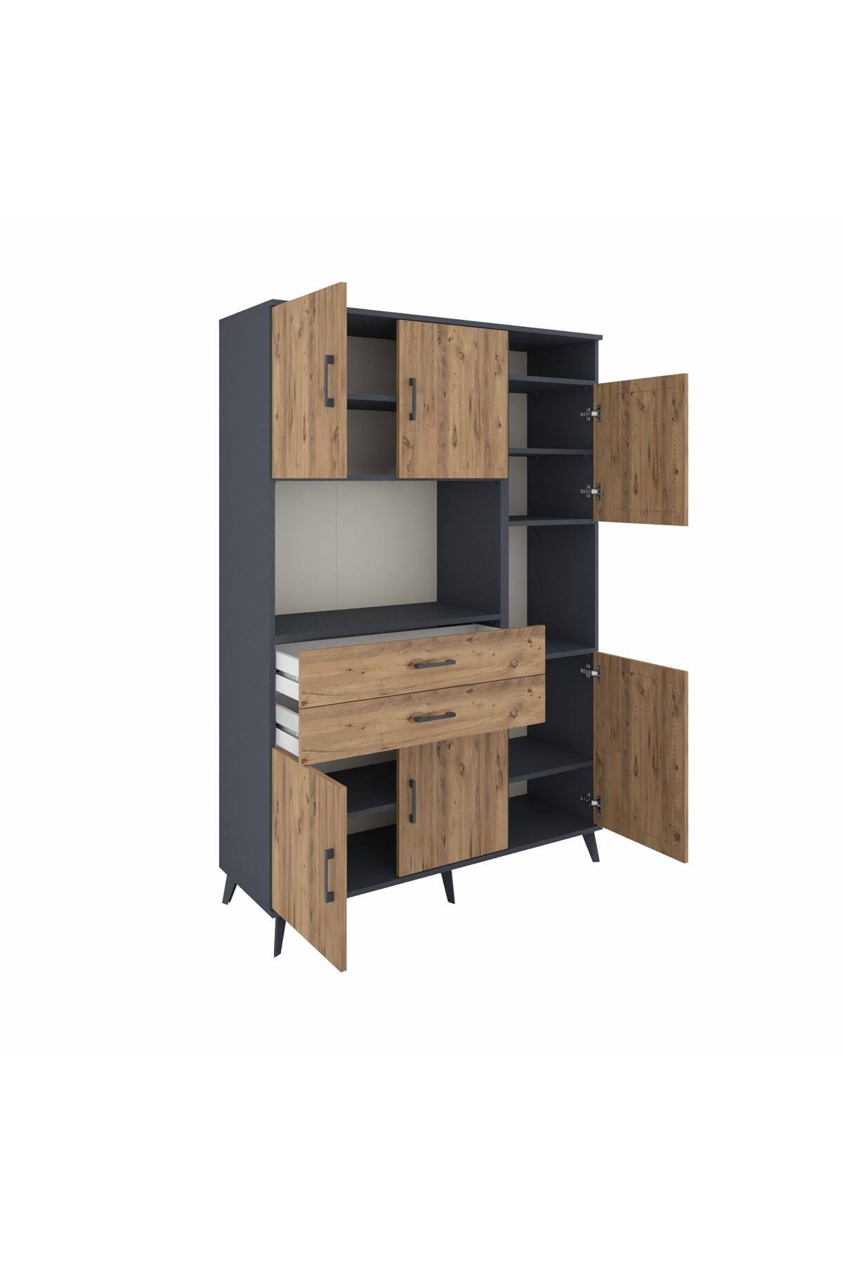Hyperion Dolap 9 Raflı 2 Çekmeceli 6 Kapaklı 132x44x195 Antrasit-Çam/Çam