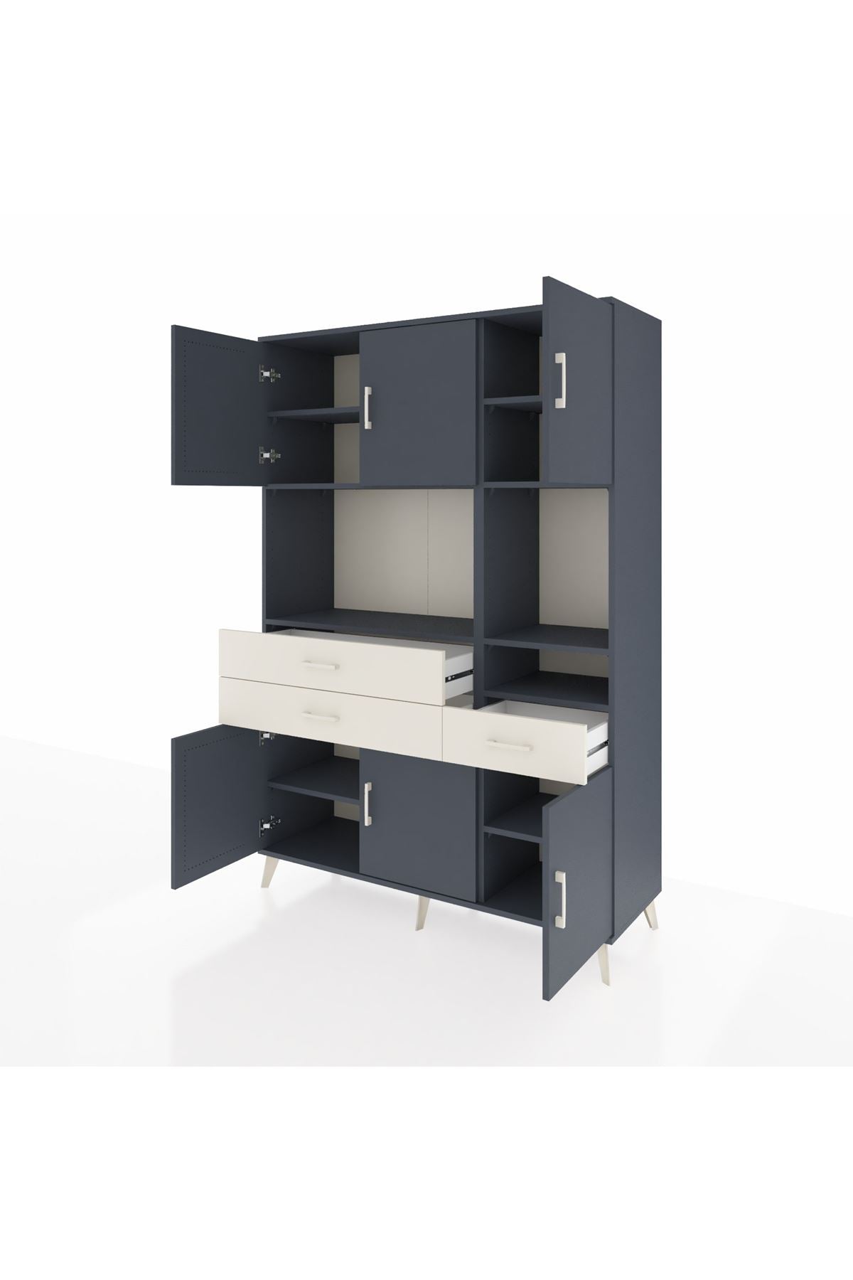 Hyperion Dolap 9 Raflı 3 Çekmeceli 6 Kapaklı 132x44x195 Antrasit-Antrasit/Aytaşı
