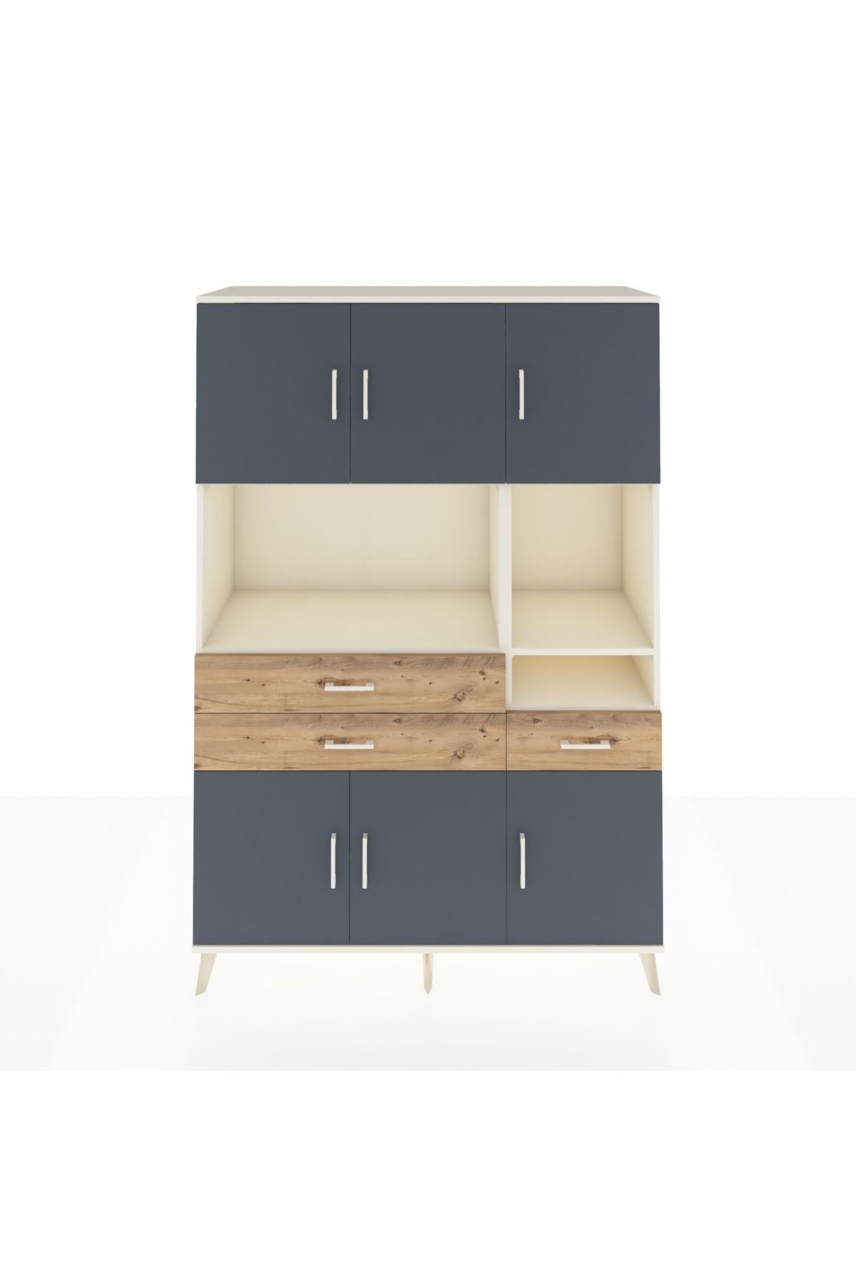 Hyperion Dolap 9 Raflı 3 Çekmeceli 6 Kapaklı 132x44x195 Aytaşı-Antrasit/Çam