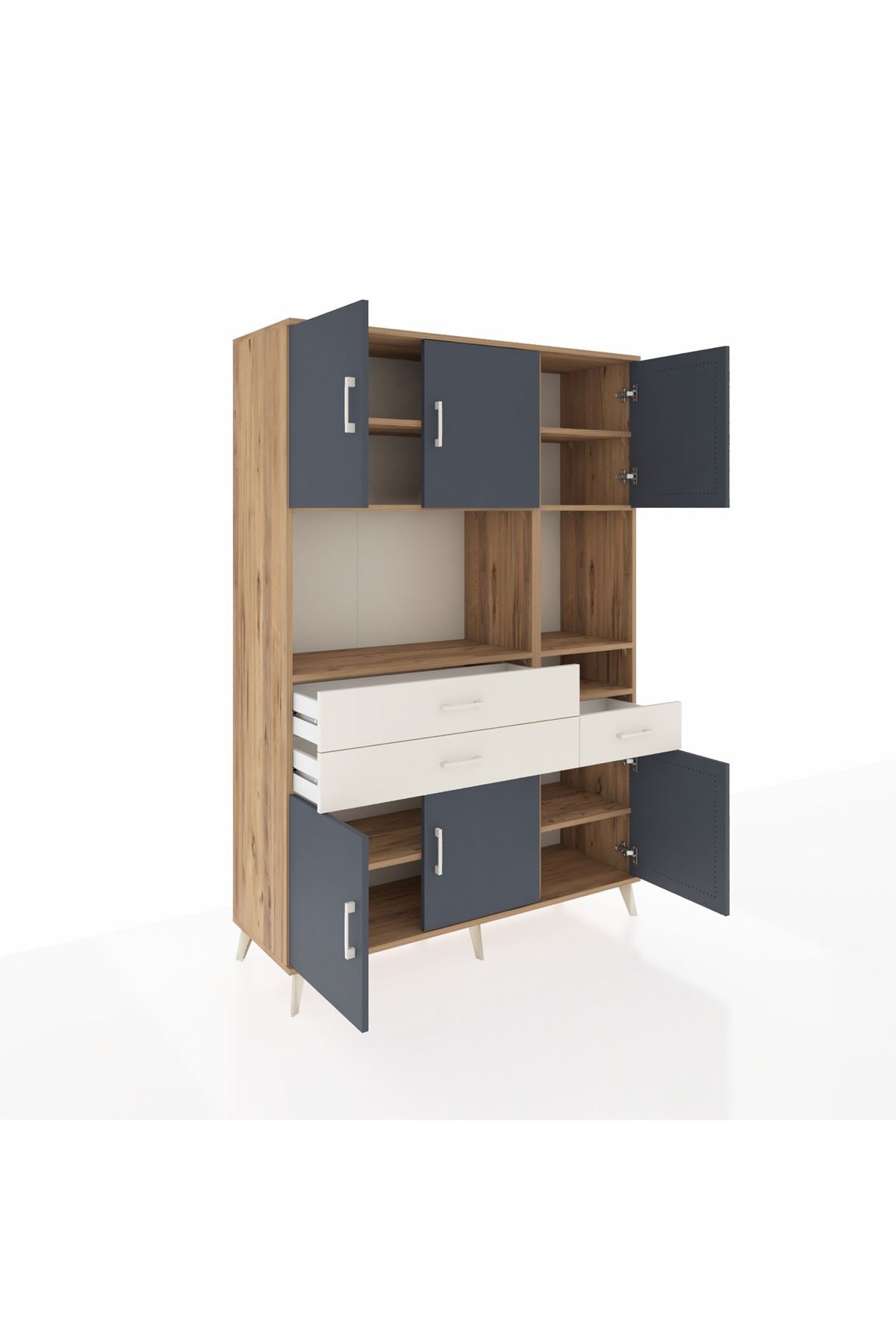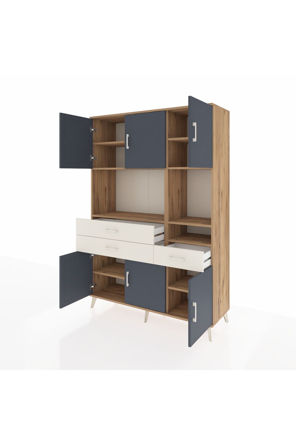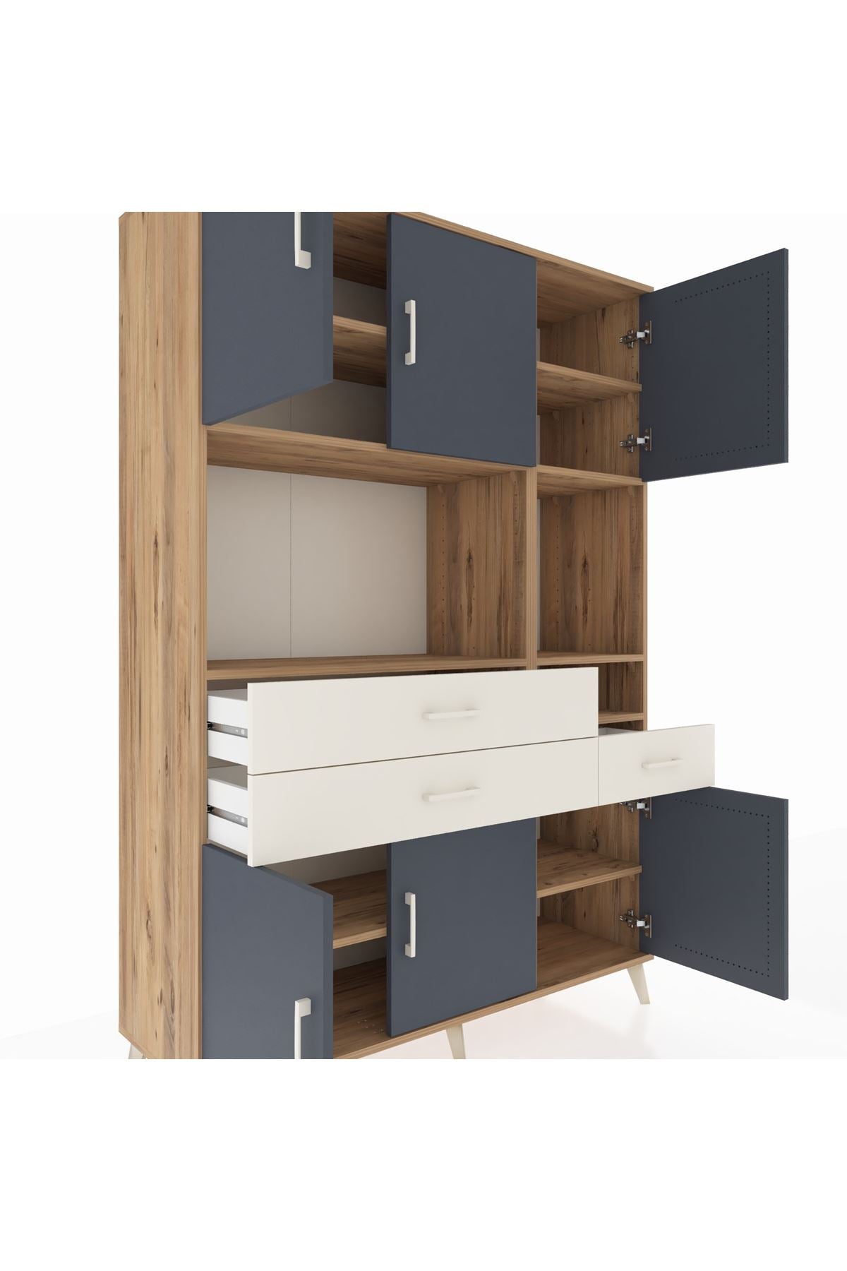 Hyperion Dolap 9 Raflı 3 Çekmeceli 6 Kapaklı 132x44x195 Çam-Antrasit/Aytaşı
