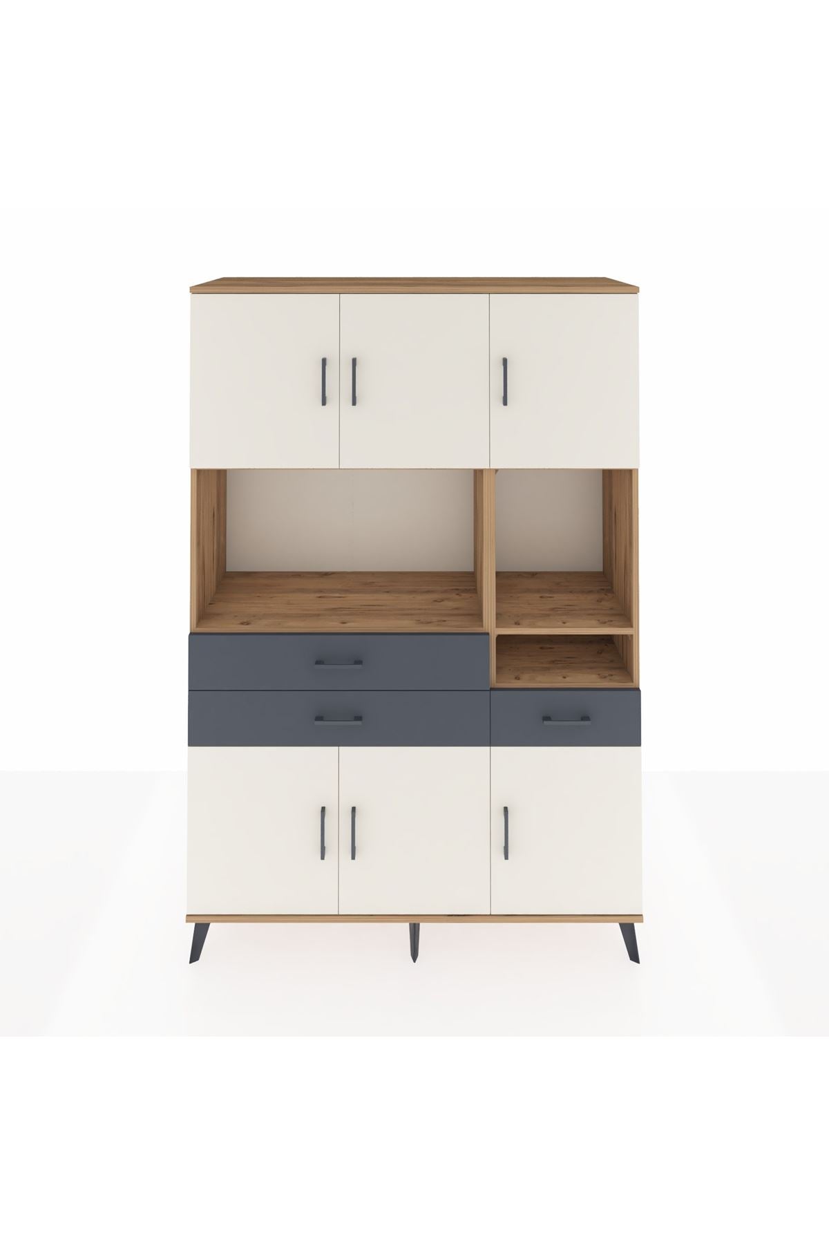 Hyperion Dolap 9 Raflı 3 Çekmeceli 6 Kapaklı 132x44x195 Çam-Aytaşı/Antrasit