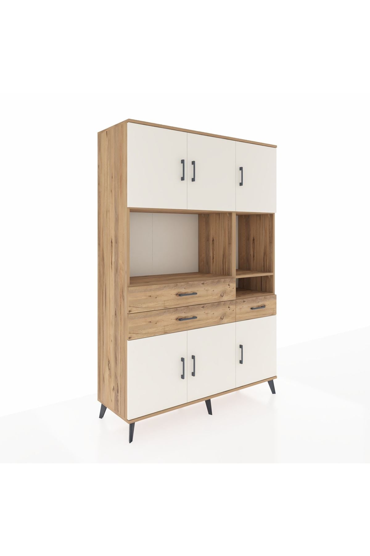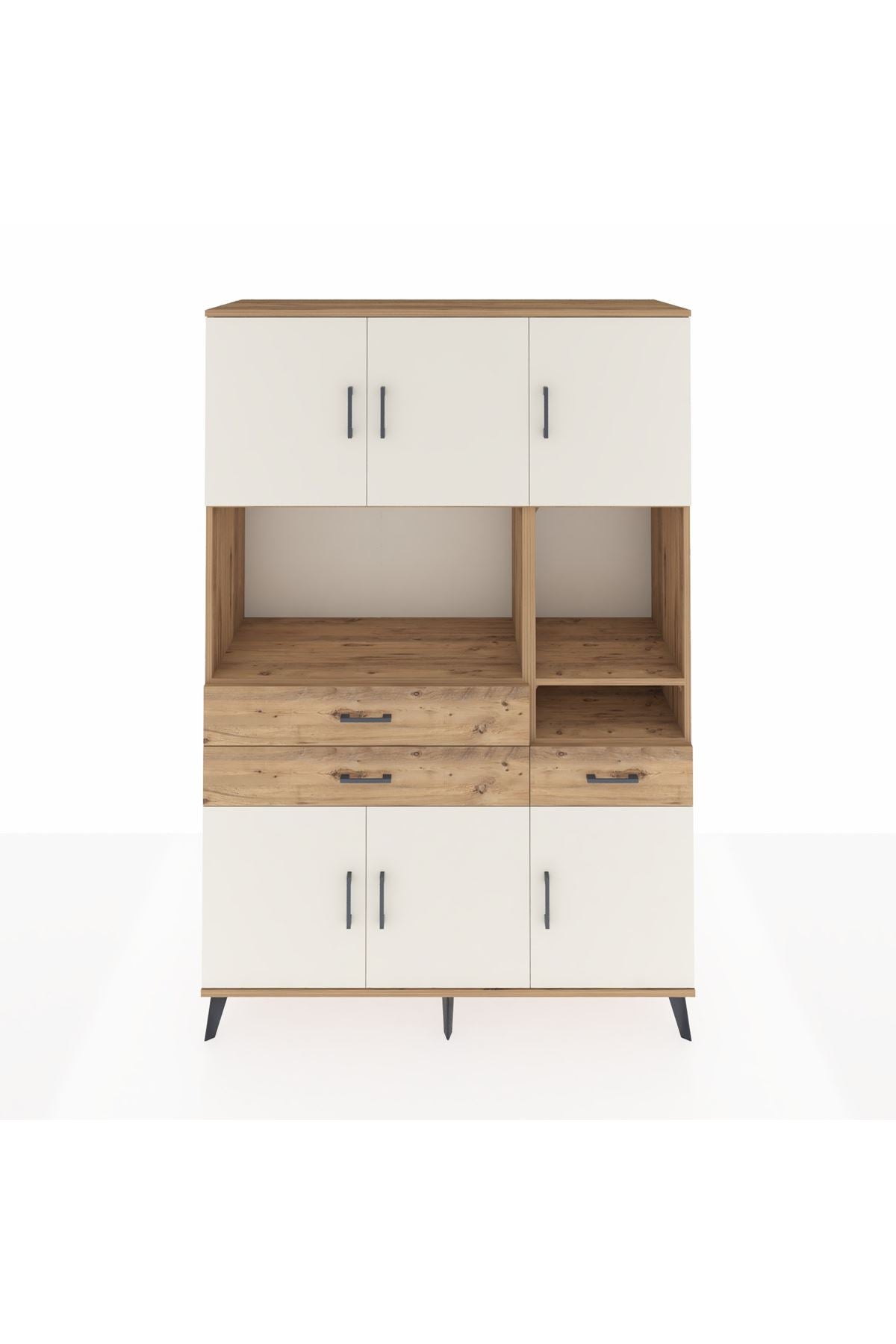 Hyperion Dolap 9 Raflı 3 Çekmeceli 6 Kapaklı 132x44x195 Çam-Aytaşı/Çam