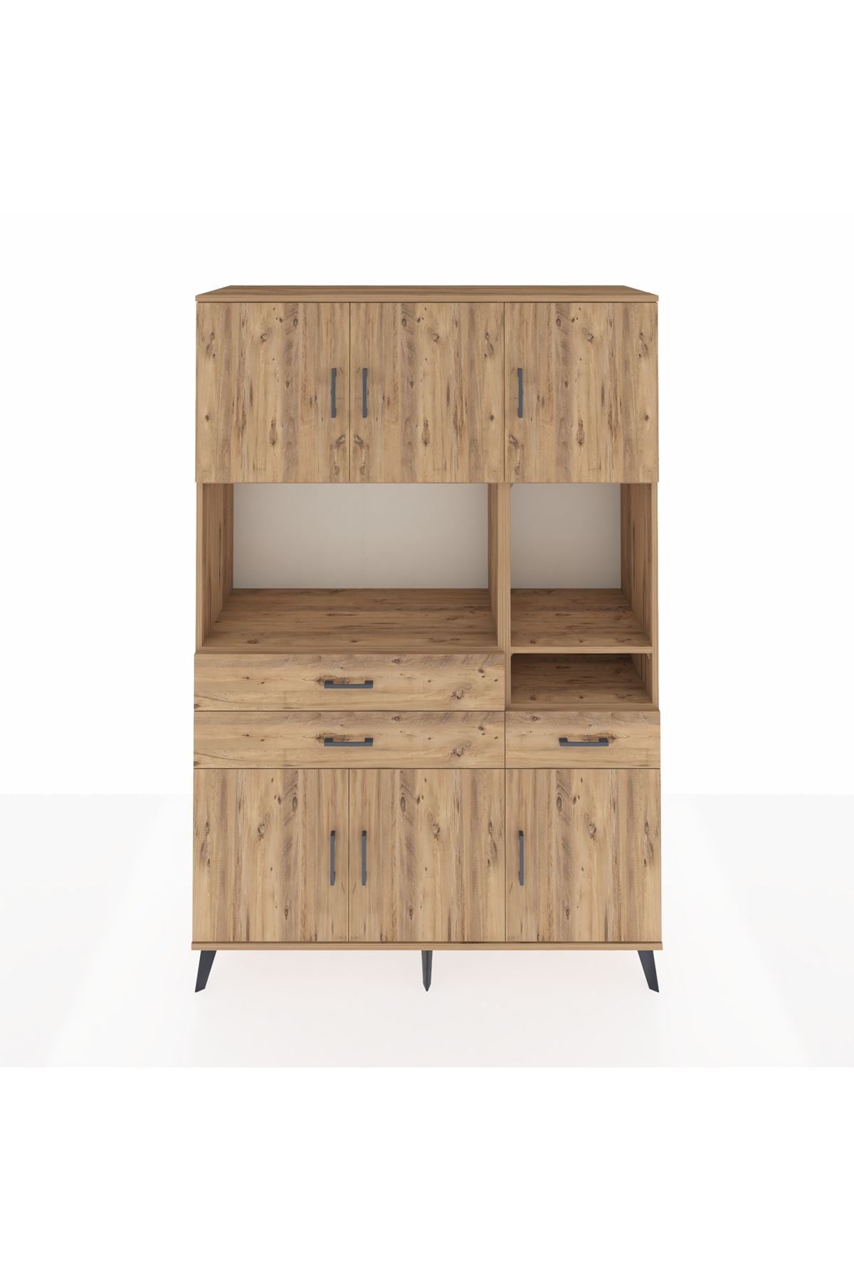 Hyperion Dolap 9 Raflı 3 Çekmeceli 6 Kapaklı 132x44x195 Çam-Çam/Çam