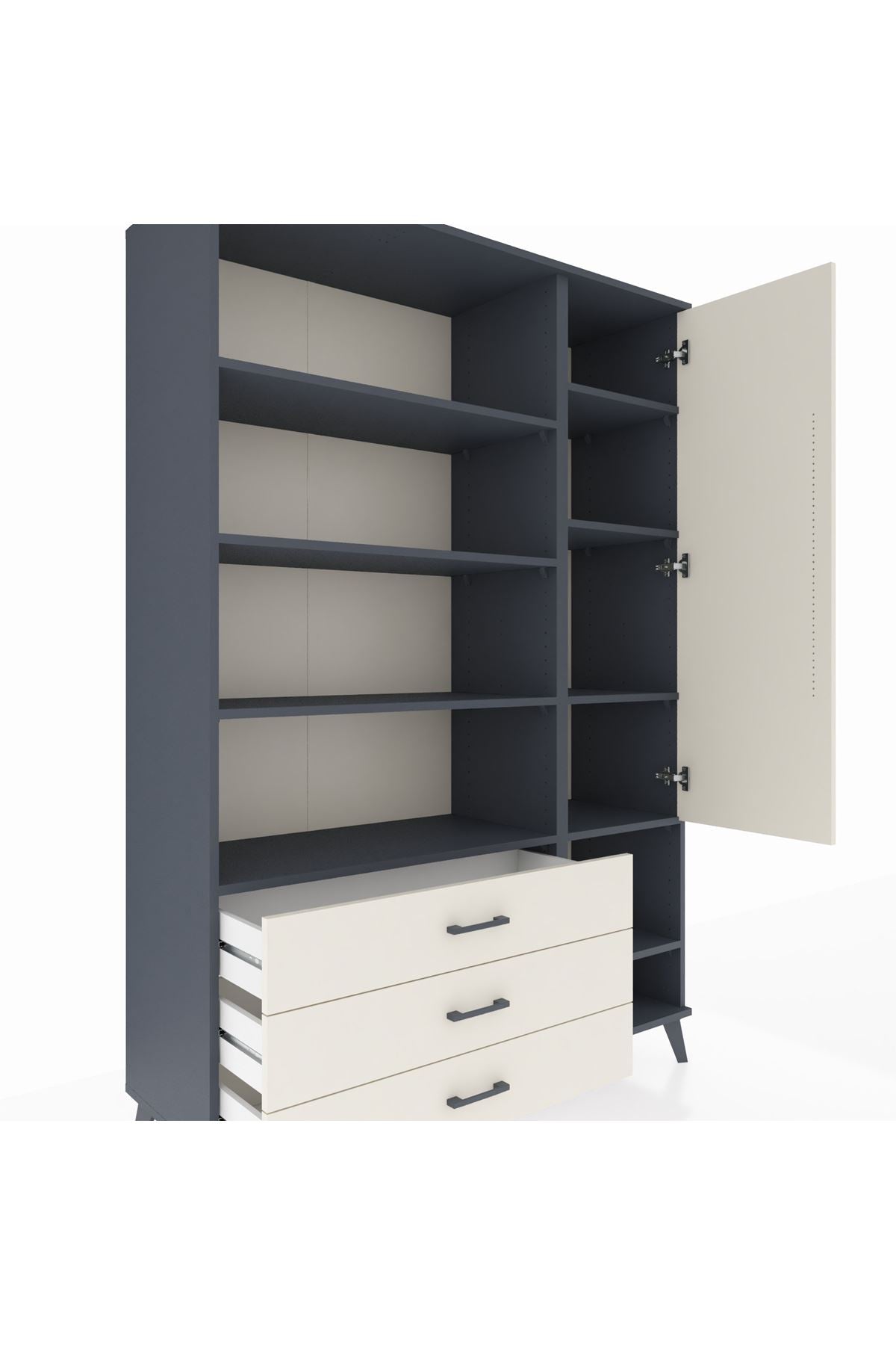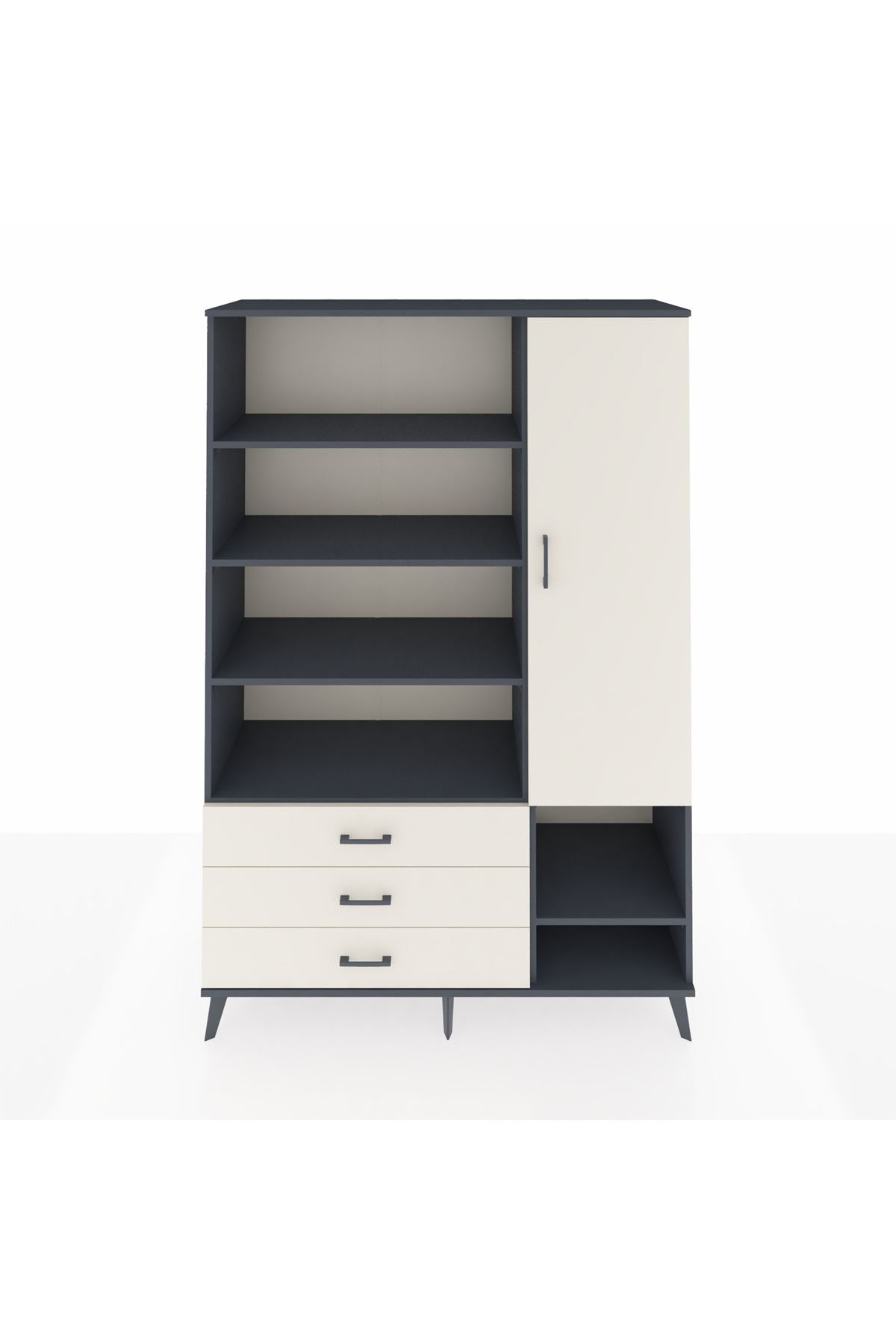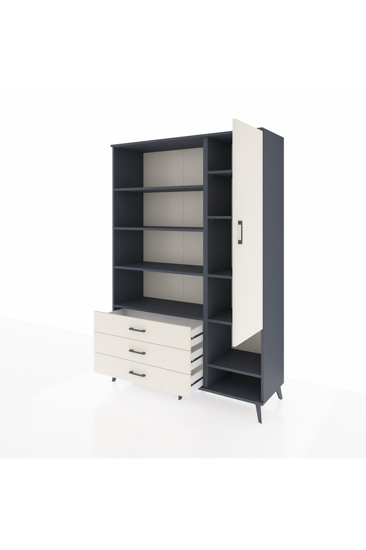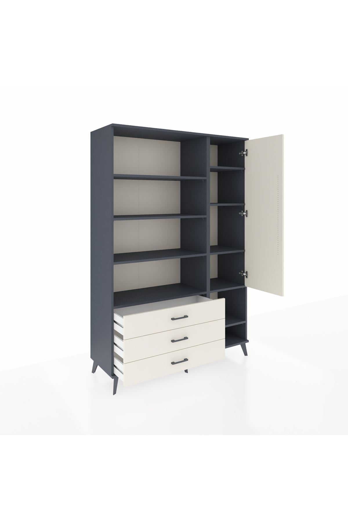 Hyperion Dolap 9 Raflı 3 Çekmeceli Tek Kapaklı 132x44x195 Antrasit-Aytaşı/Aytaşı