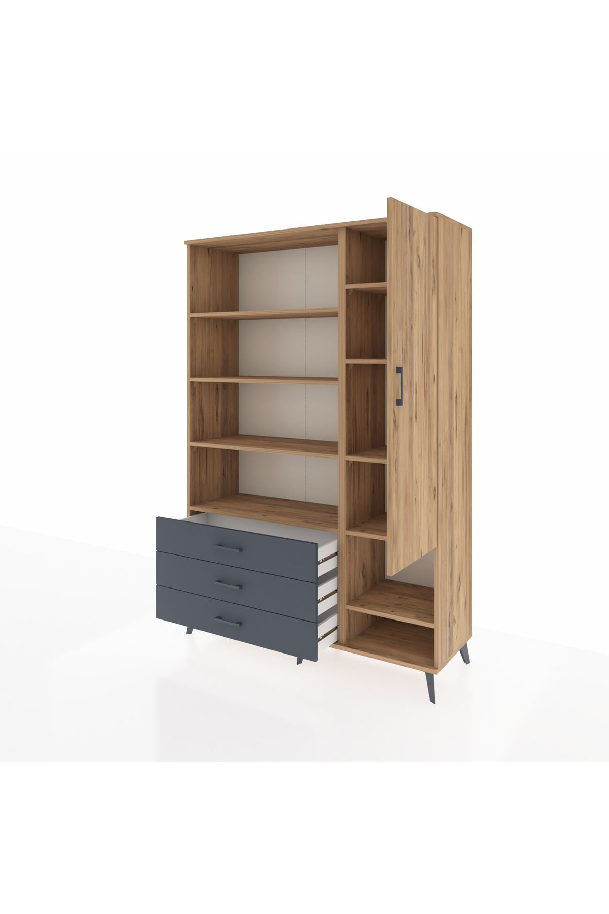 Hyperion Dolap 9 Raflı 3 Çekmeceli Tek Kapaklı 132x44x195 Çam-Çam/Antrasit