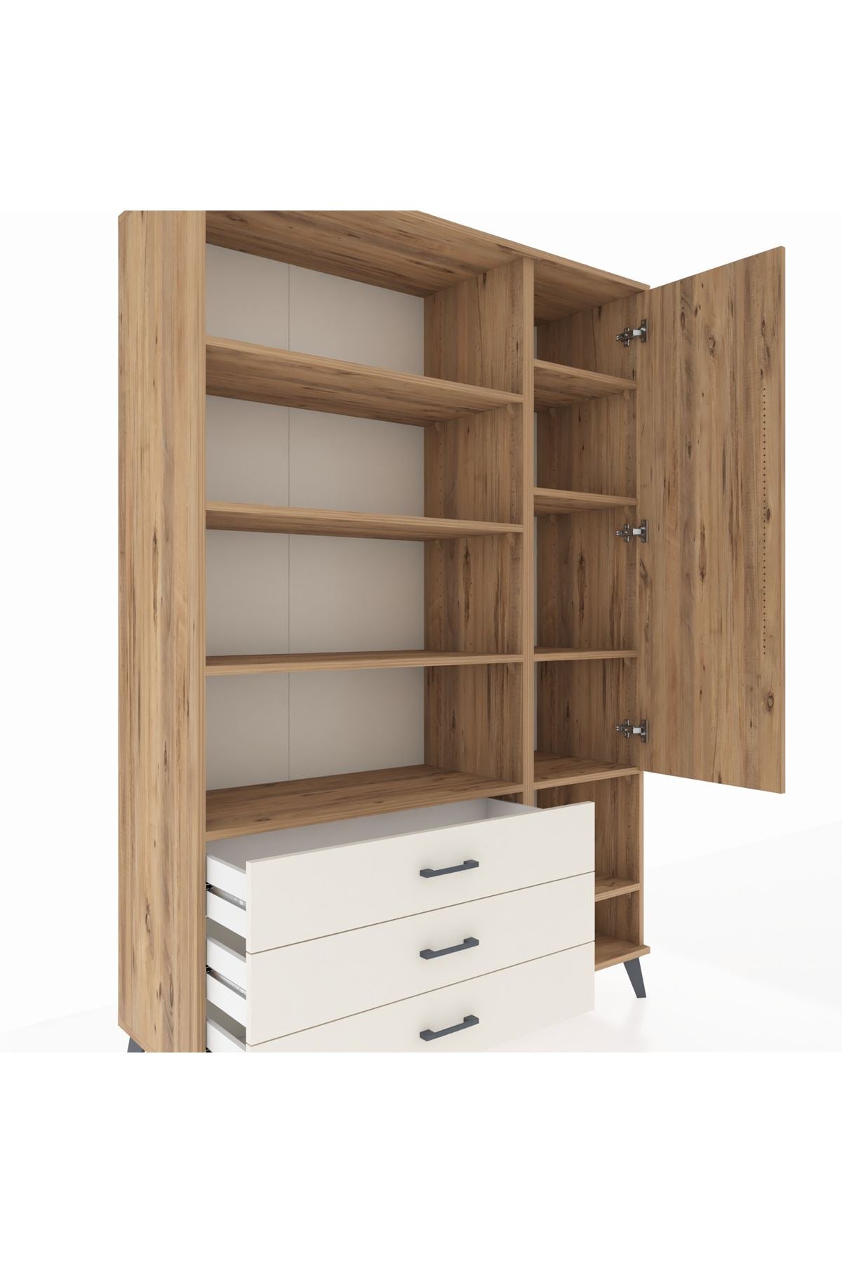 Hyperion Dolap 9 Raflı 3 Çekmeceli Tek Kapaklı 132x44x195 Çam-Çam/Aytaşı