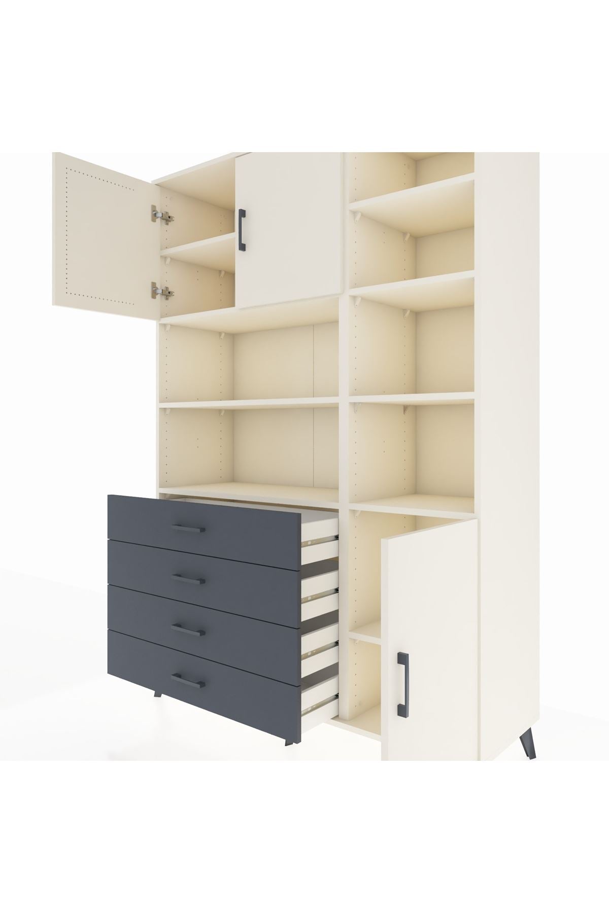 Hyperion Dolap 9 Raflı 4 Çekmeceli 3 Kapaklı 132x44x195 Aytaşı-Aytaşı/Antrasit