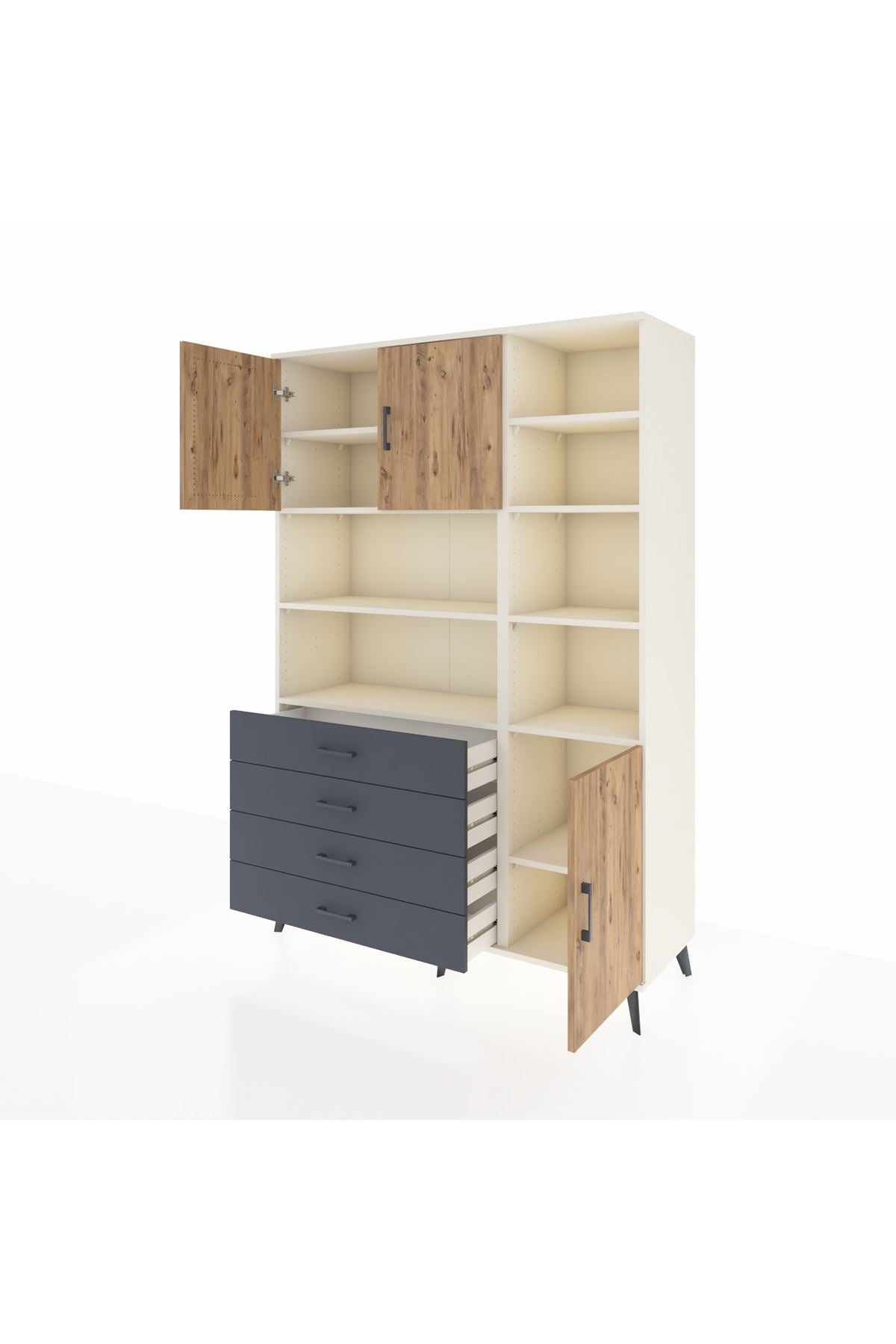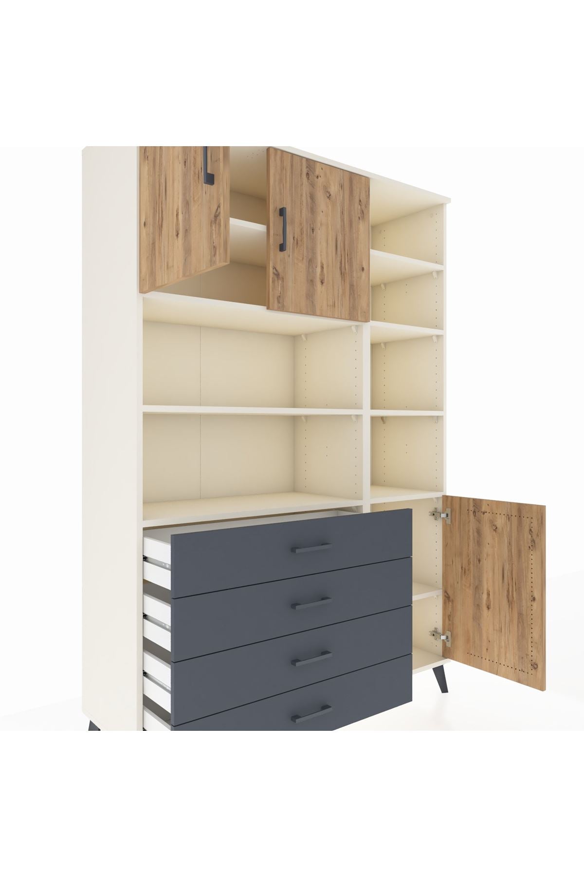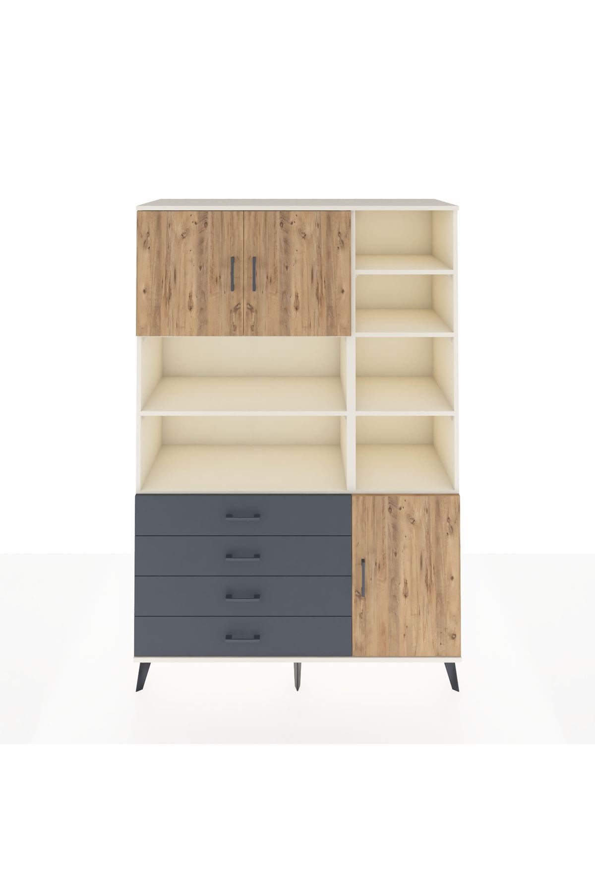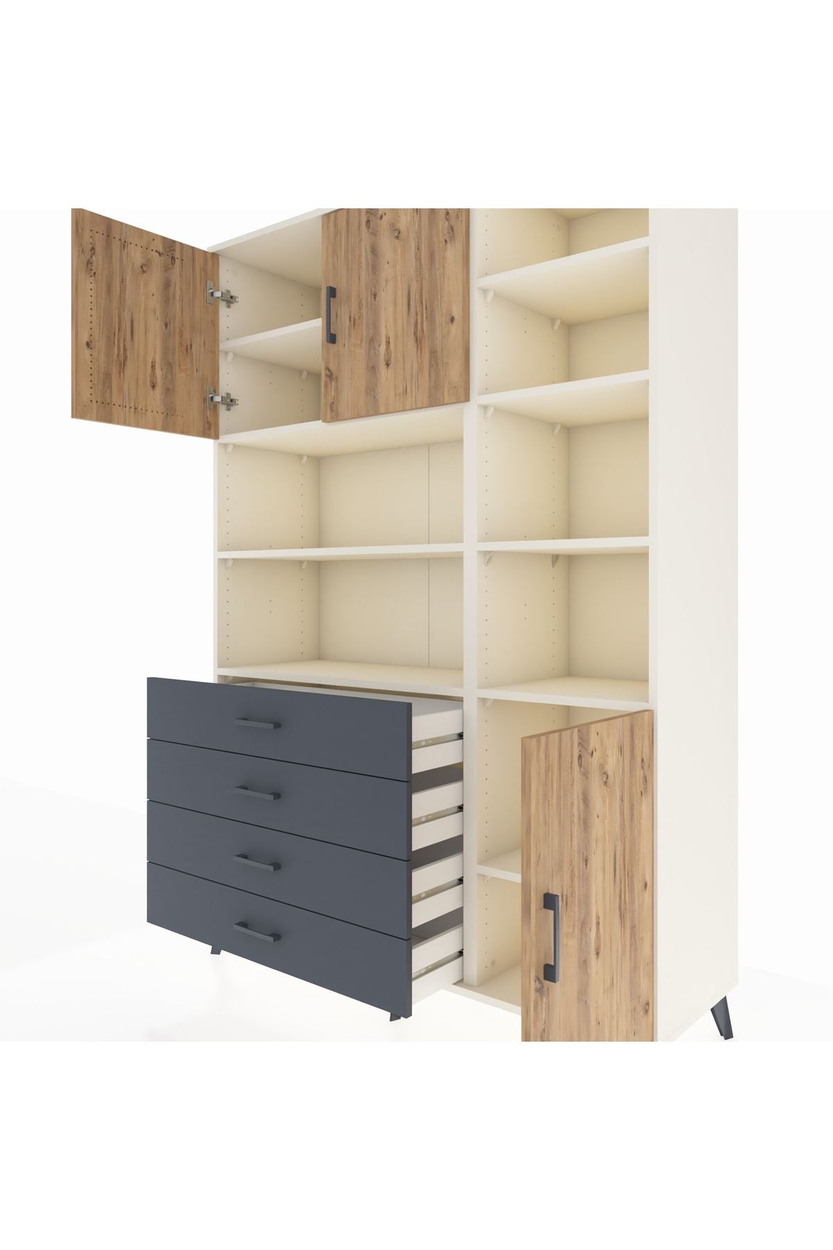Hyperion Dolap 9 Raflı 4 Çekmeceli 3 Kapaklı 132x44x195 Aytaşı-Çam/Antrasit
