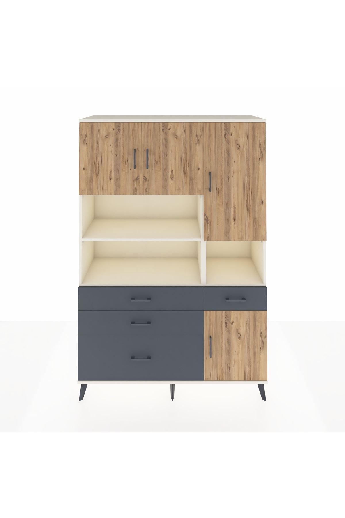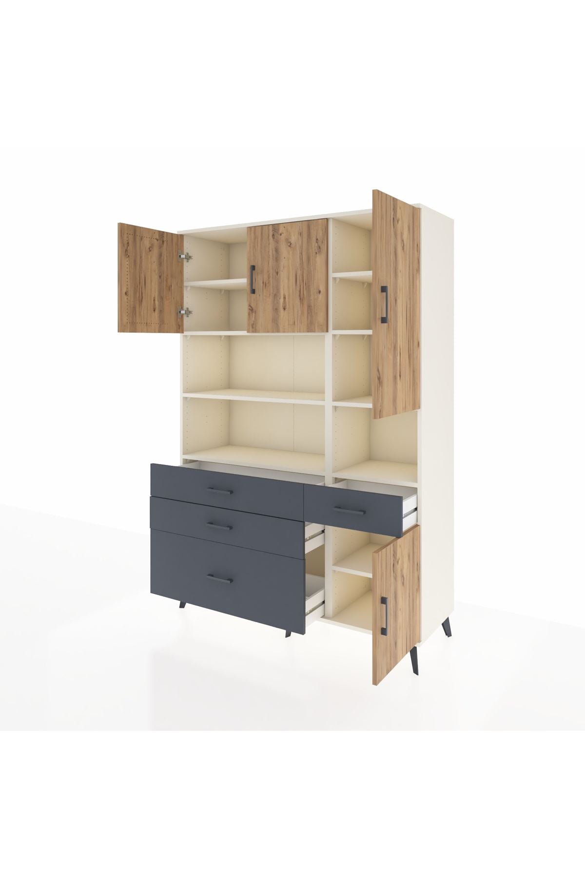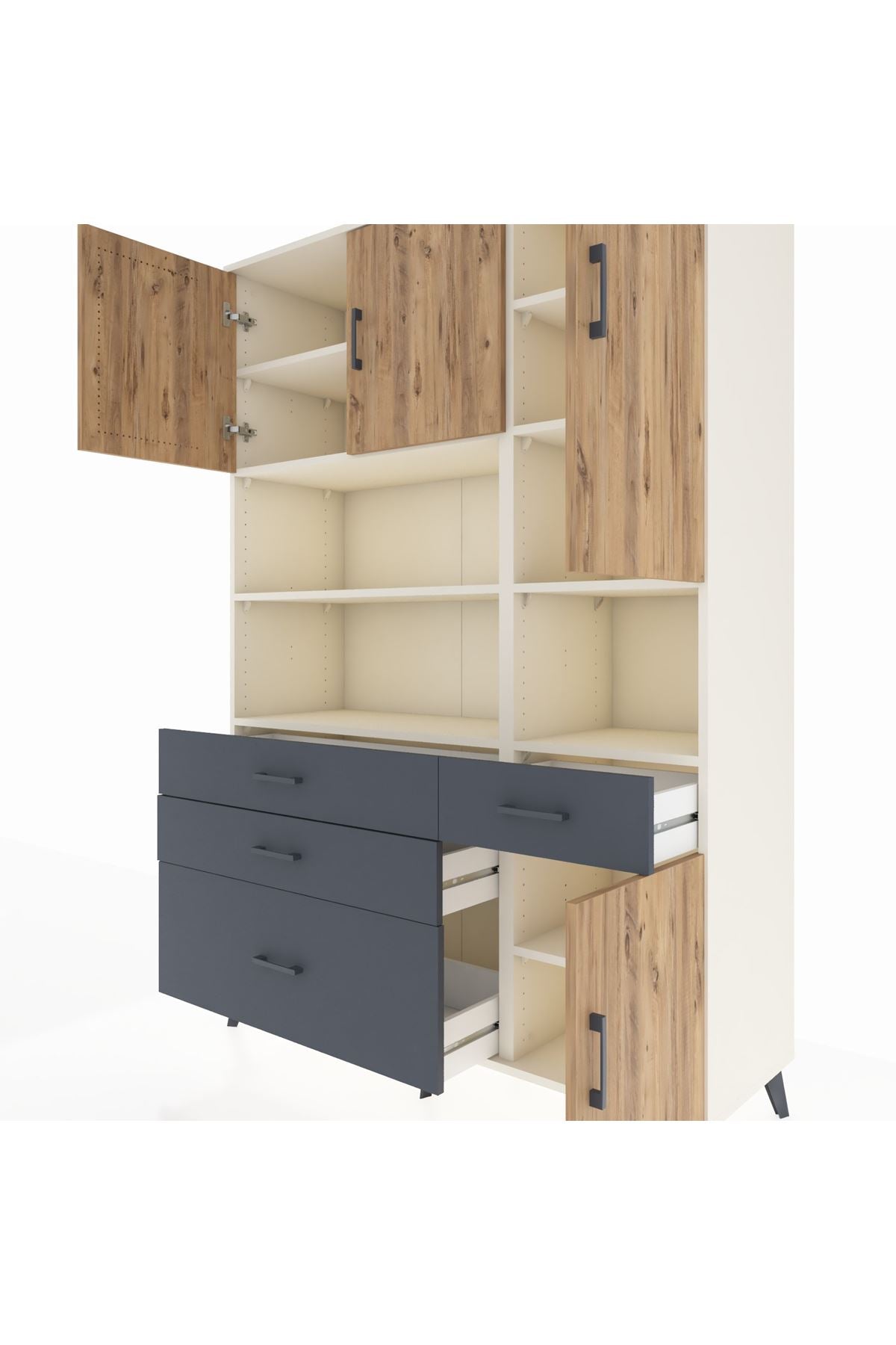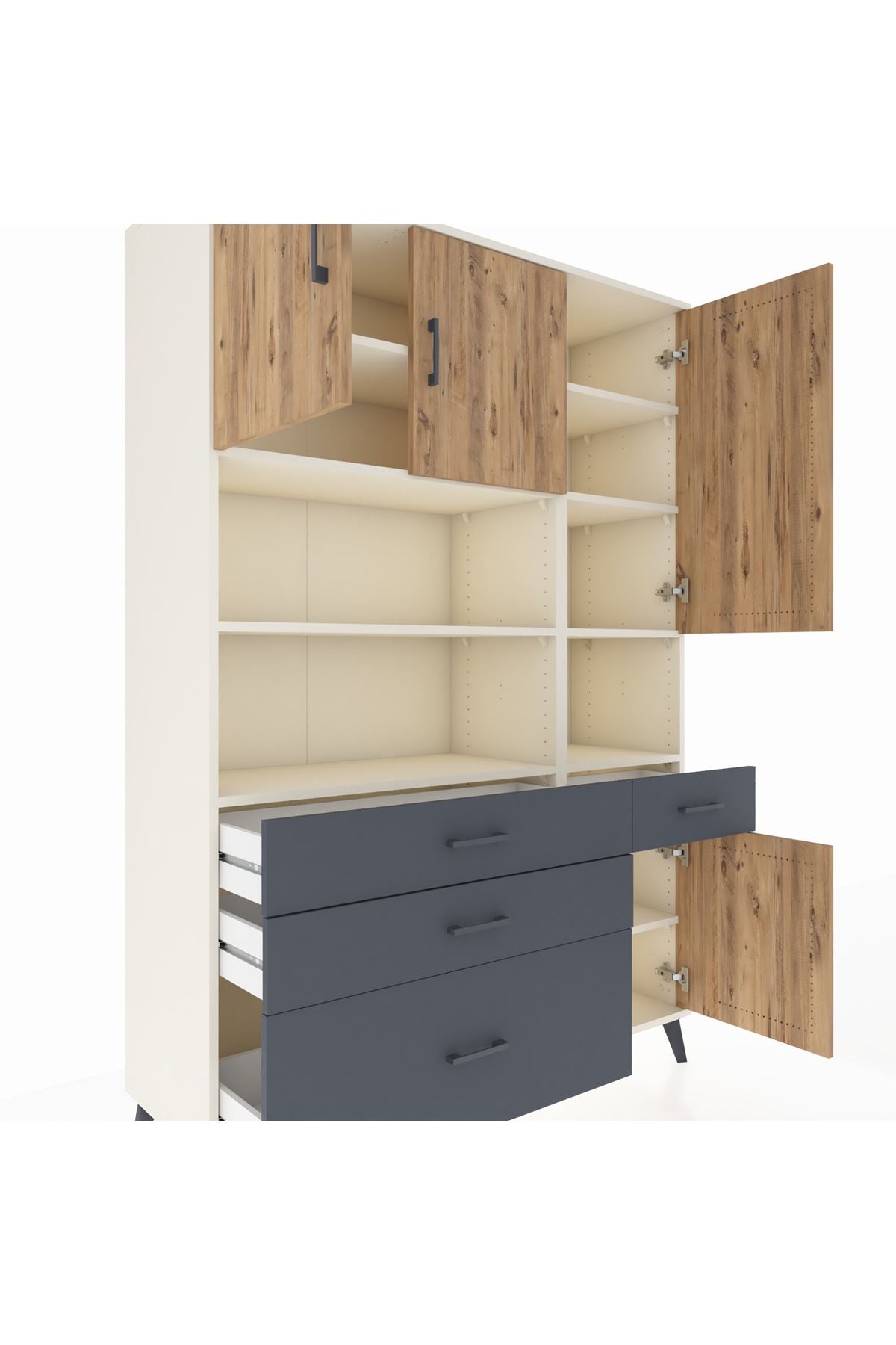 Hyperion Dolap 9 Raflı 4 Çekmeceli 4 Kapaklı 132x44x195 Aytaşı-Çam/Antrasit