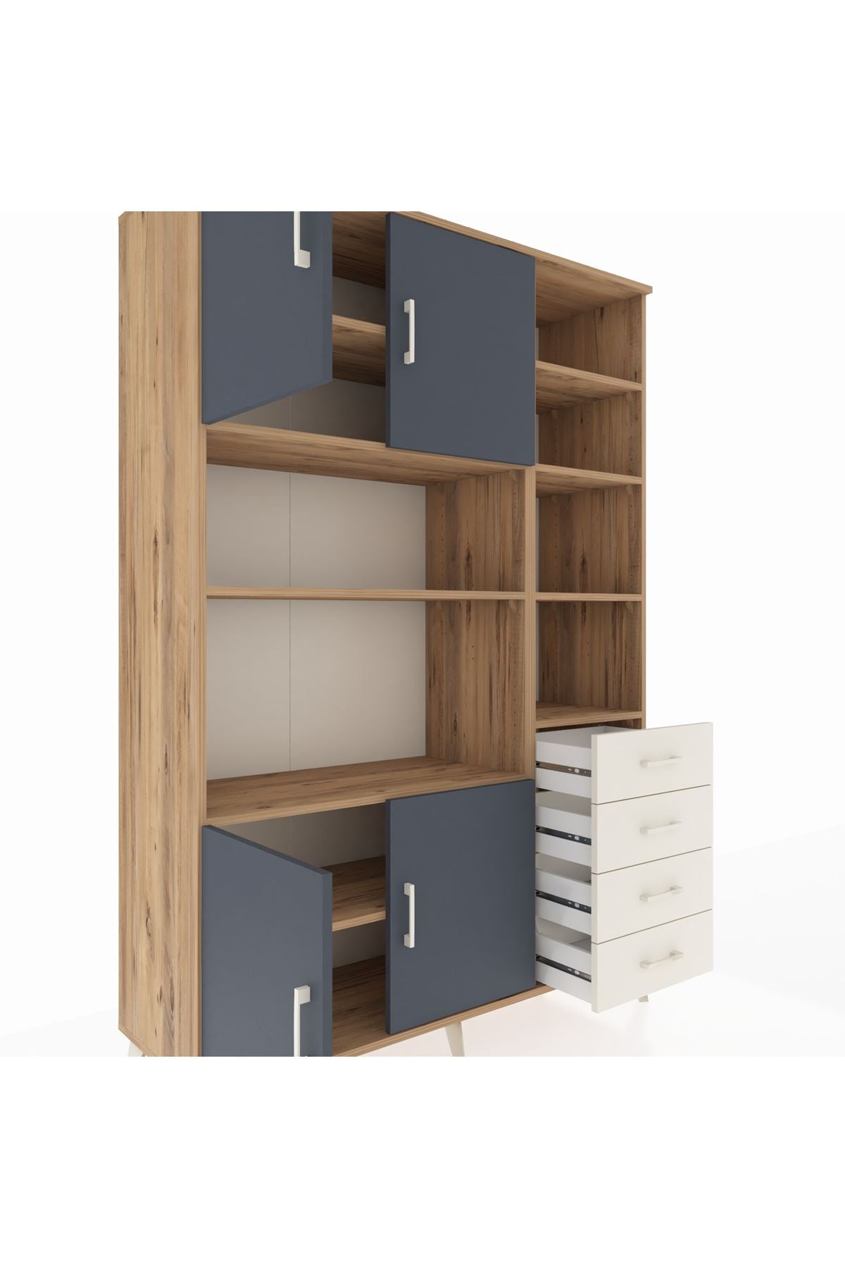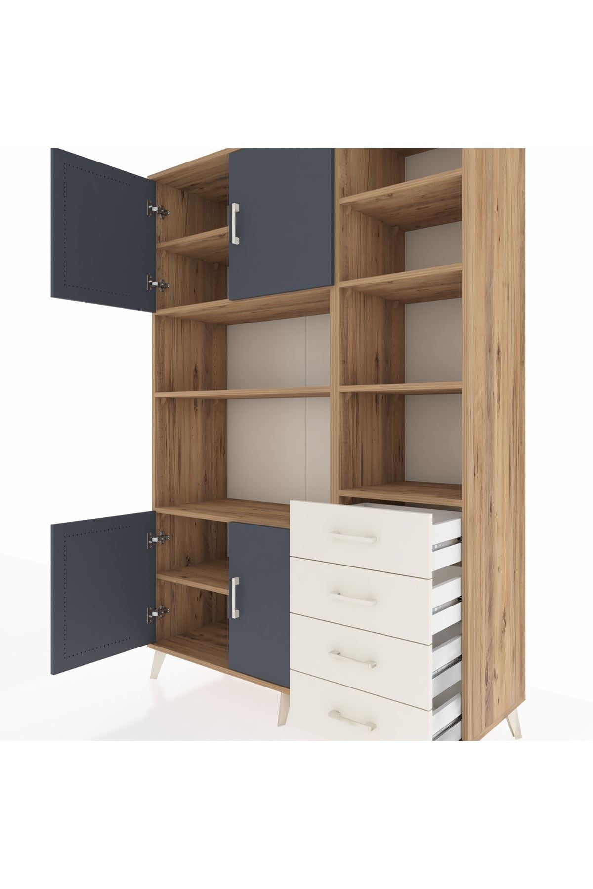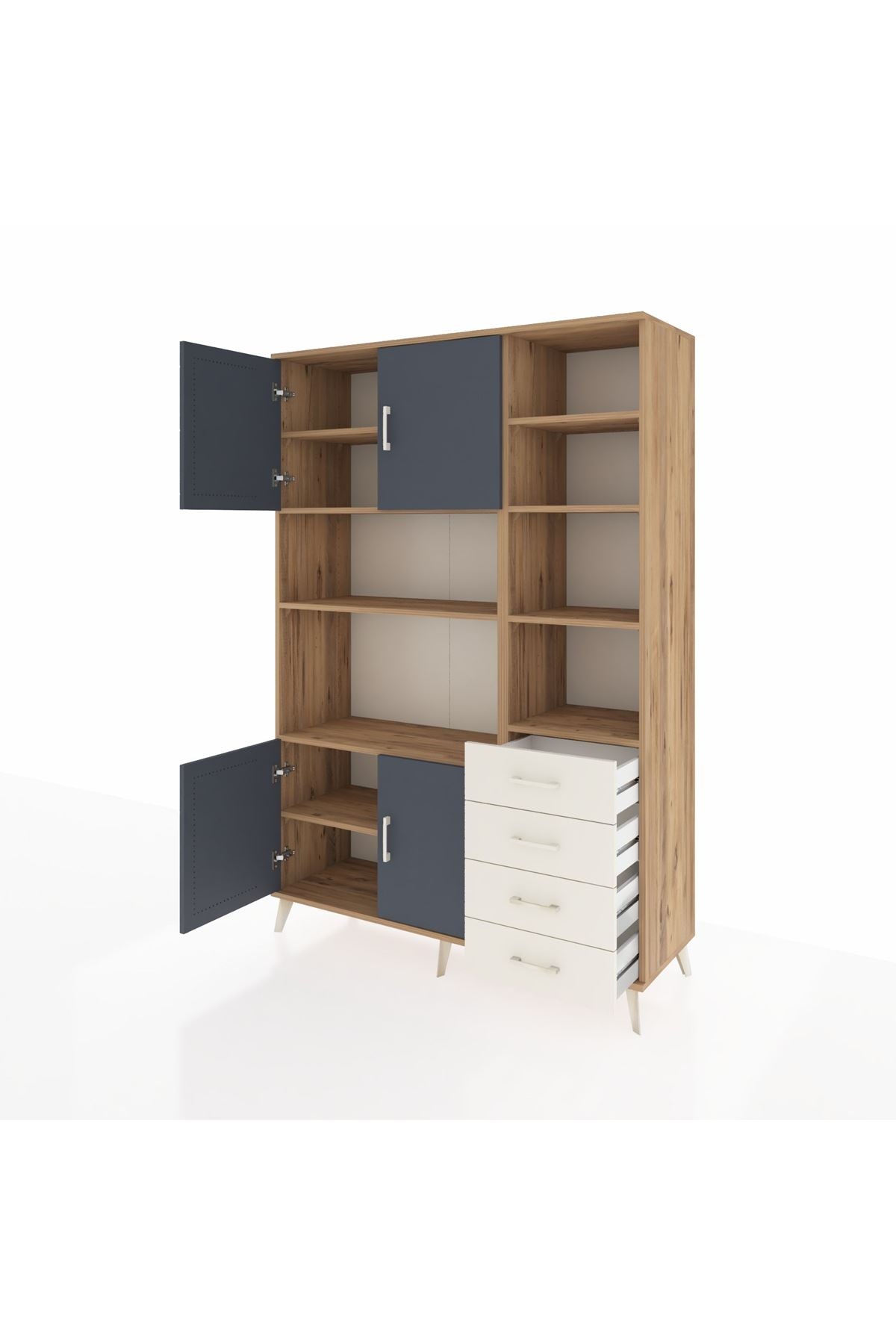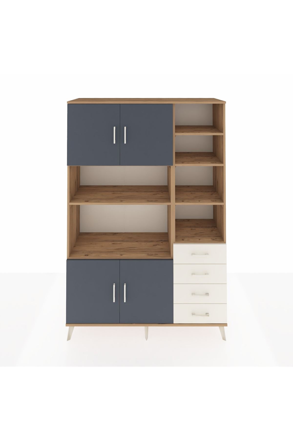 Hyperion Dolap 9 Raflı 4 Çekmeceli 4 Kapaklı 132x44x195 Çam-Antrasit/Aytaşı