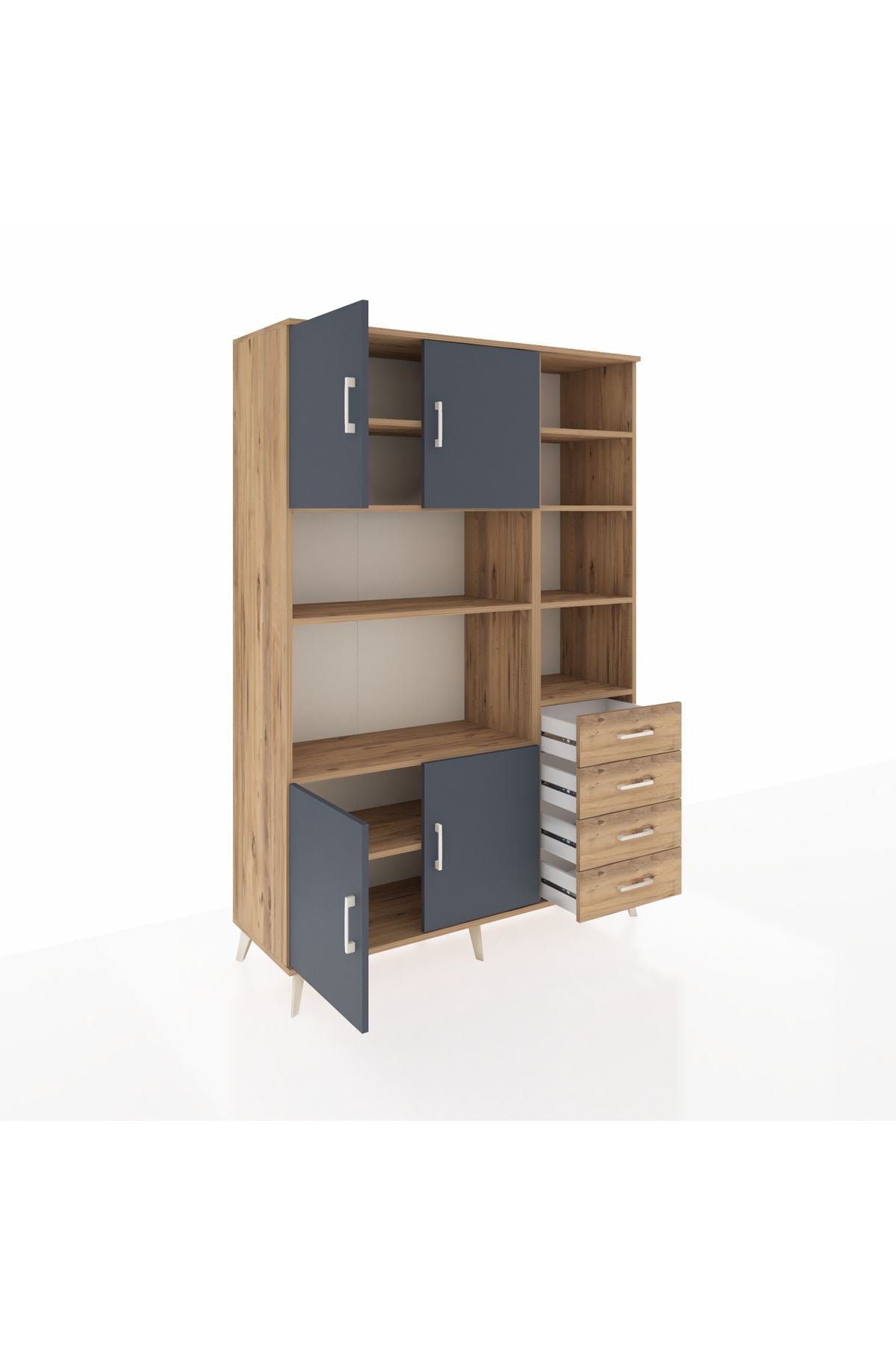 Hyperion Dolap 9 Raflı 4 Çekmeceli 4 Kapaklı 132x44x195 Çam-Antrasit/Çam