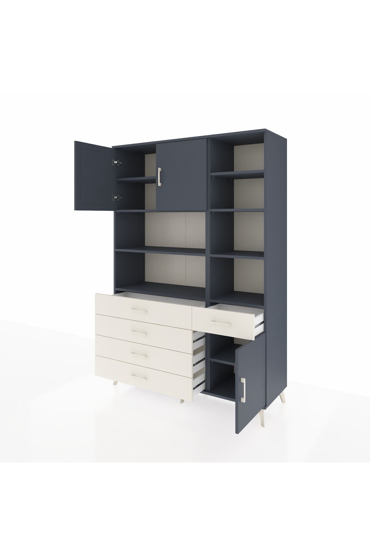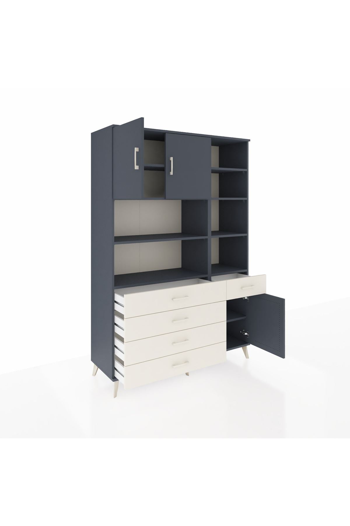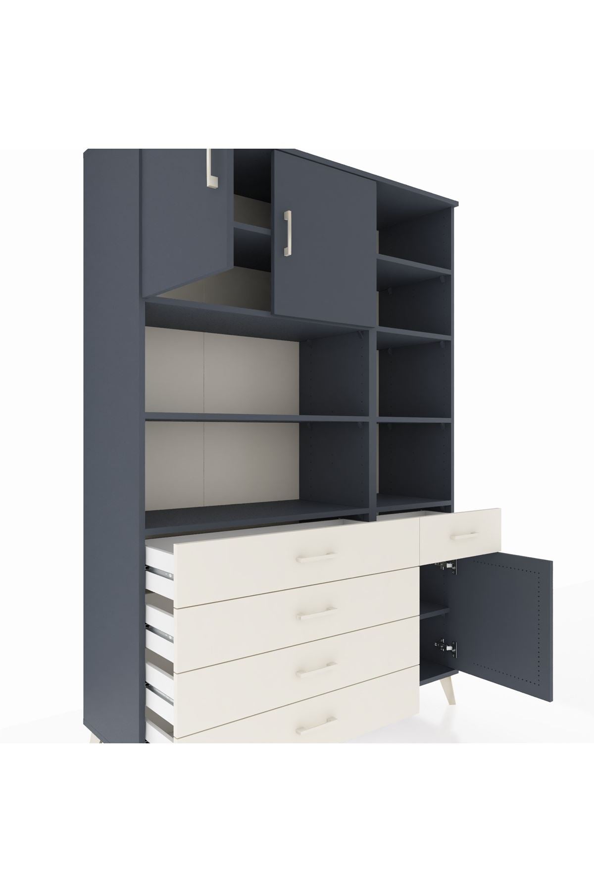 Hyperion Dolap 9 Raflı 5 Çekmeceli 3 Kapaklı 132x44x195 Antrasit-Antrasit/Aytaşı