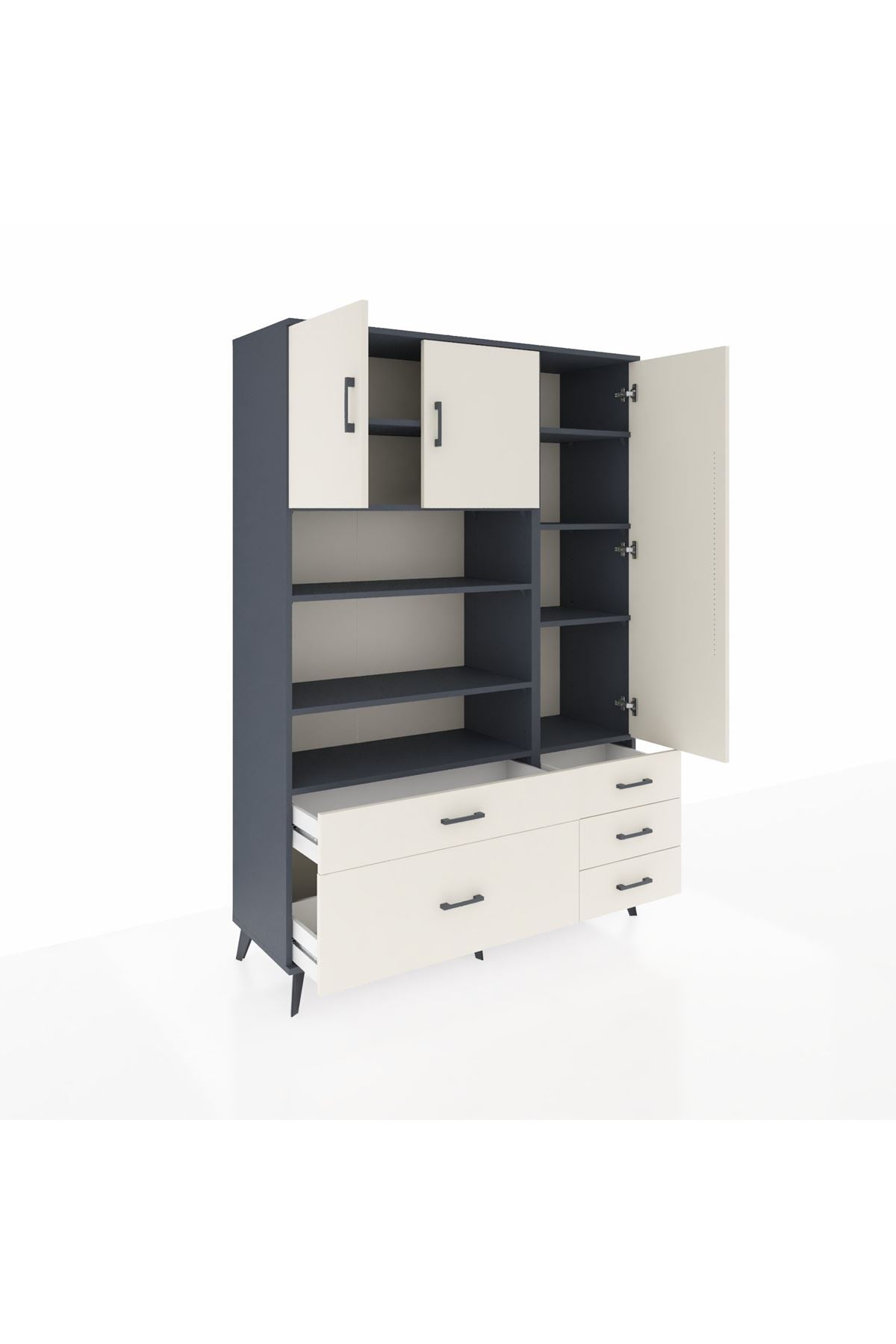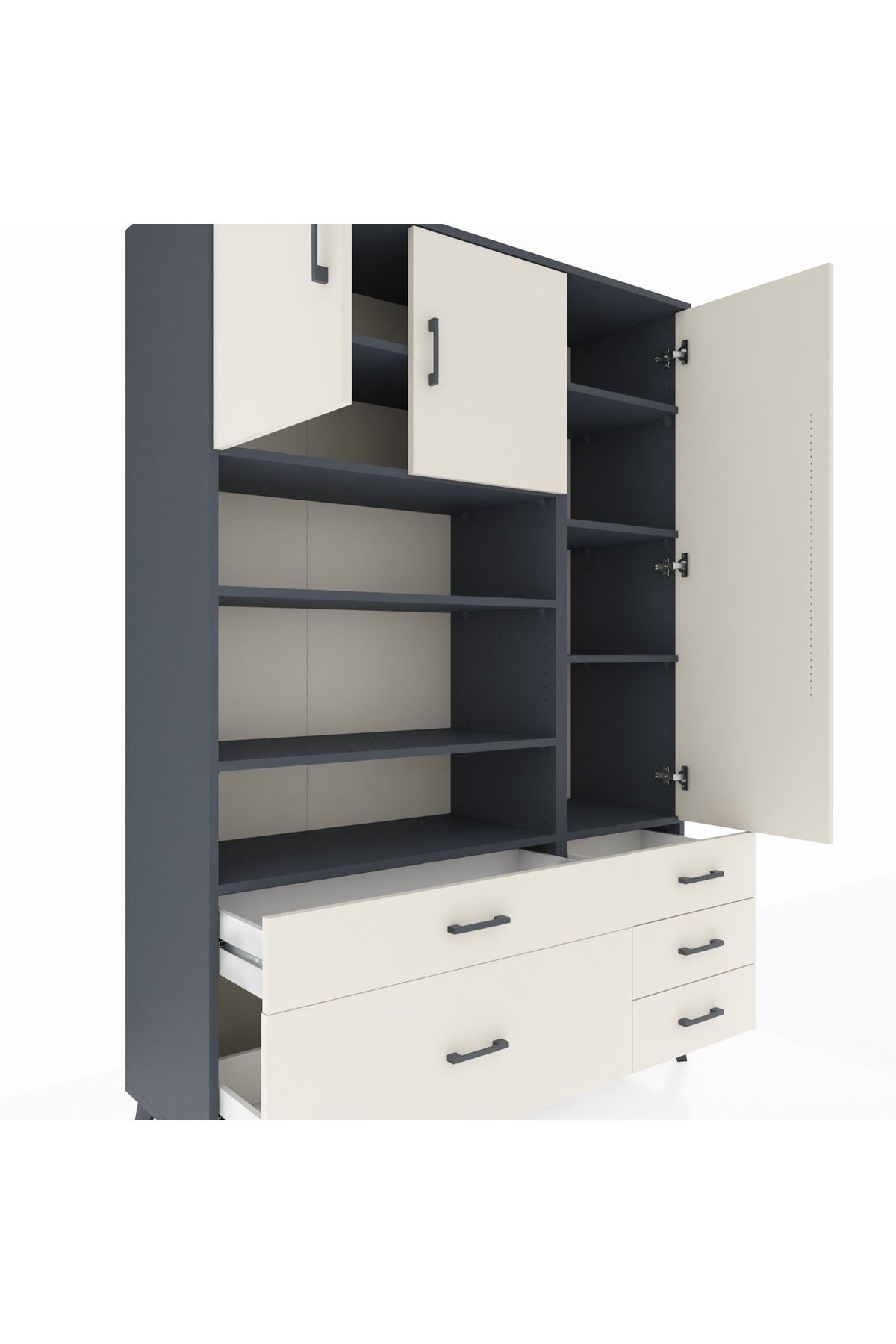 Hyperion Dolap 9 Raflı 5 Çekmeceli 3 Kapaklı 132x44x195 Antrasit-Aytaşı/Aytaşı