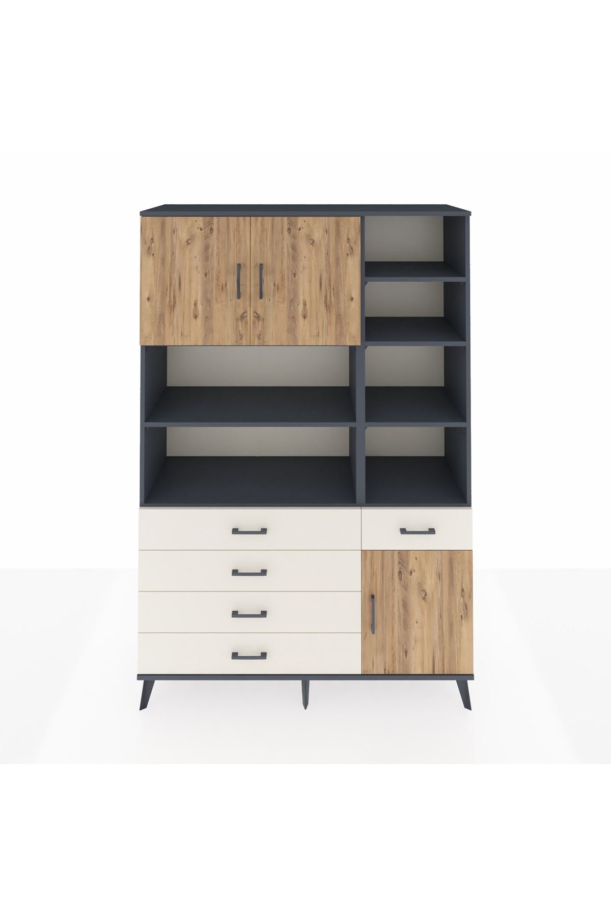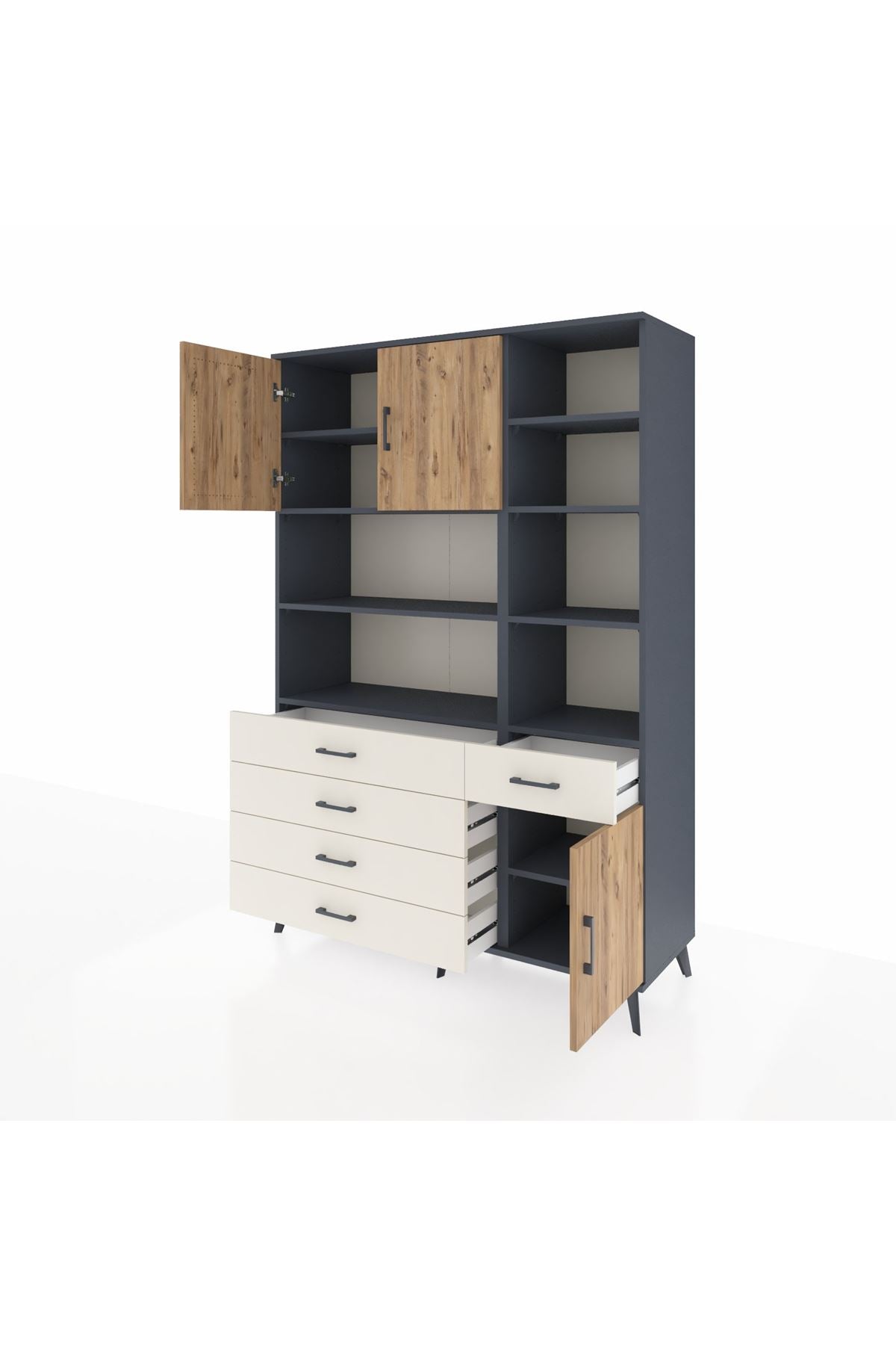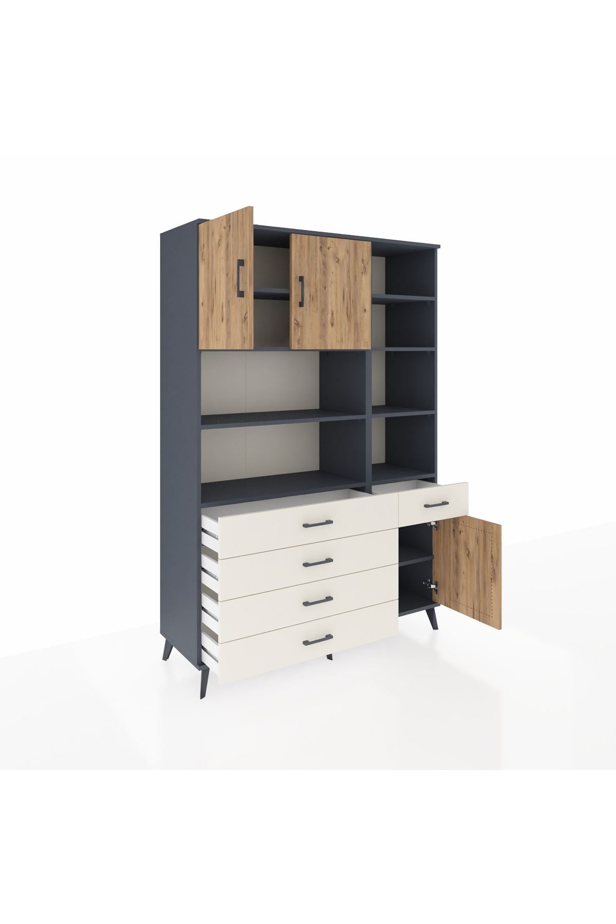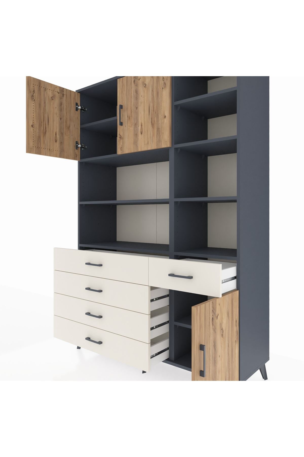 Hyperion Dolap 9 Raflı 5 Çekmeceli 3 Kapaklı 132x44x195 Antrasit-Çam/Aytaşı