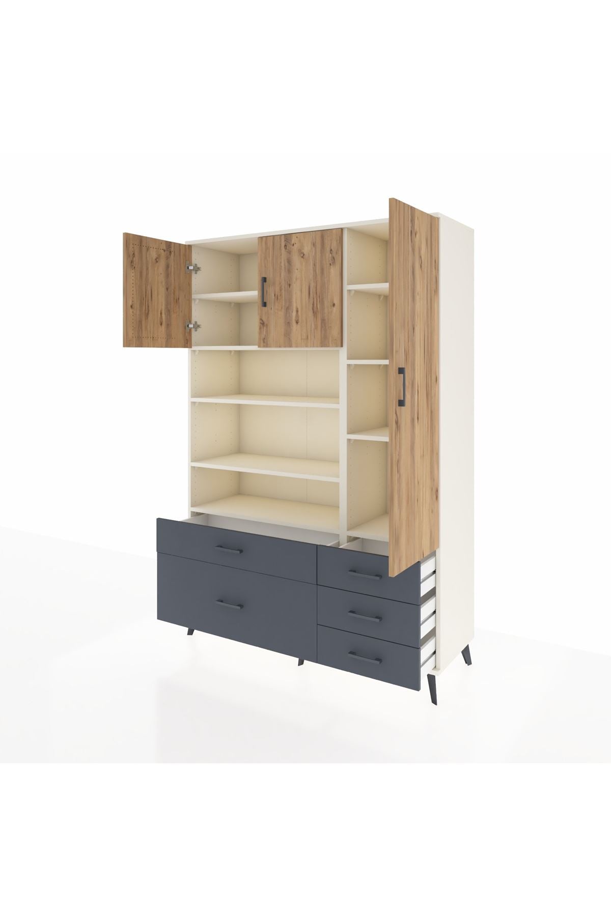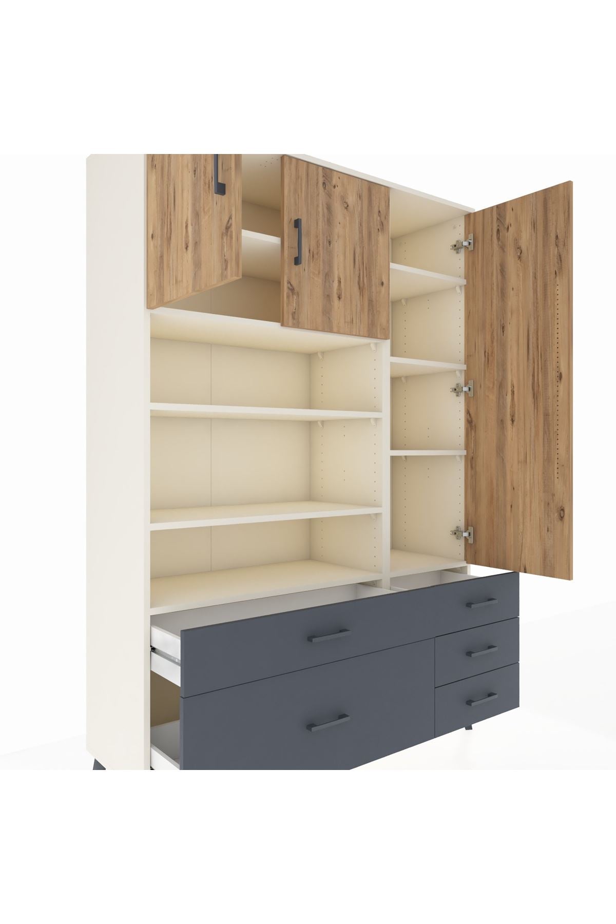 Hyperion Dolap 9 Raflı 5 Çekmeceli 3 Kapaklı 132x44x195 Aytaşı-Çam/Antrasit