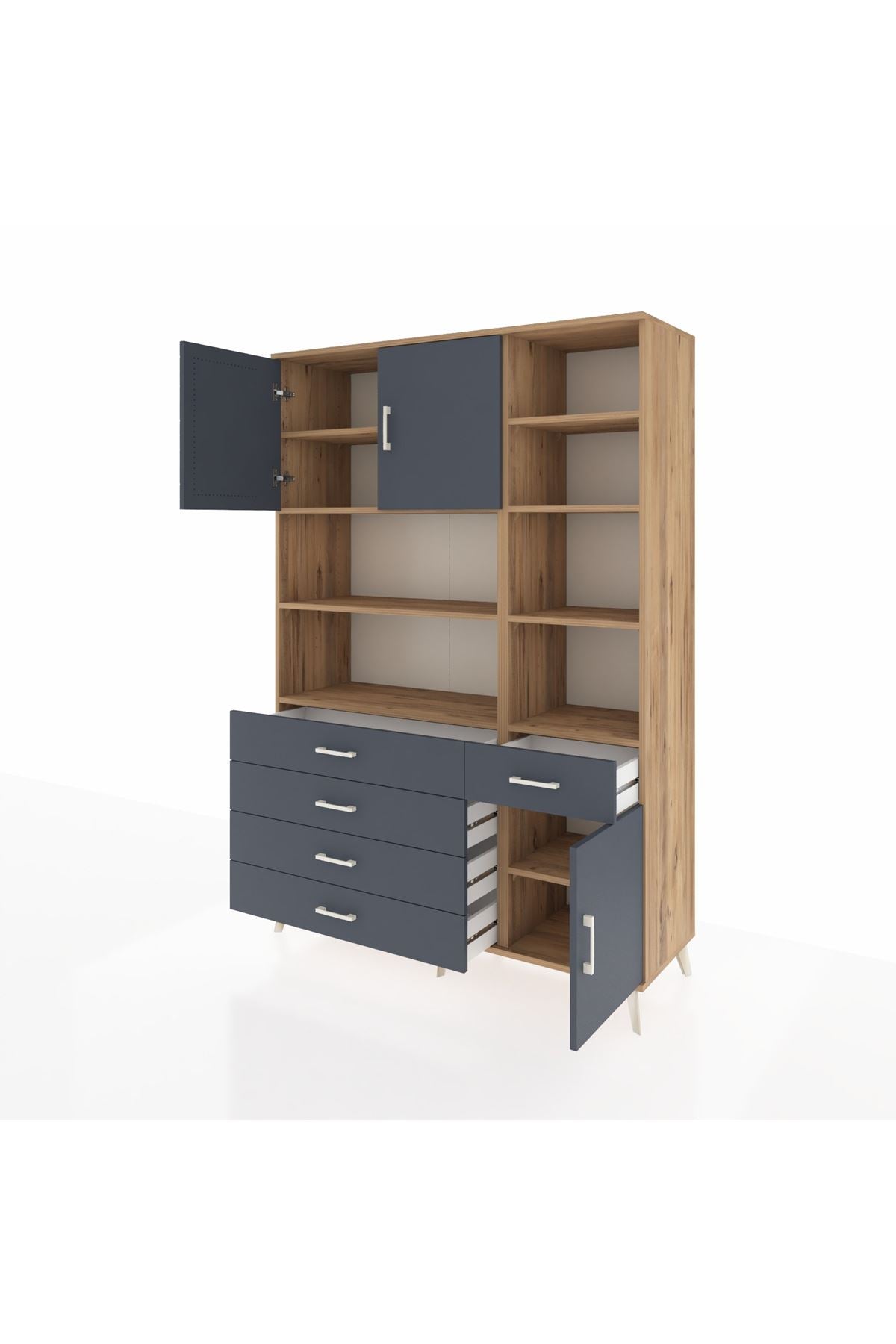 Hyperion Dolap 9 Raflı 5 Çekmeceli 3 Kapaklı 132x44x195 Çam-Antrasit/Antrasit