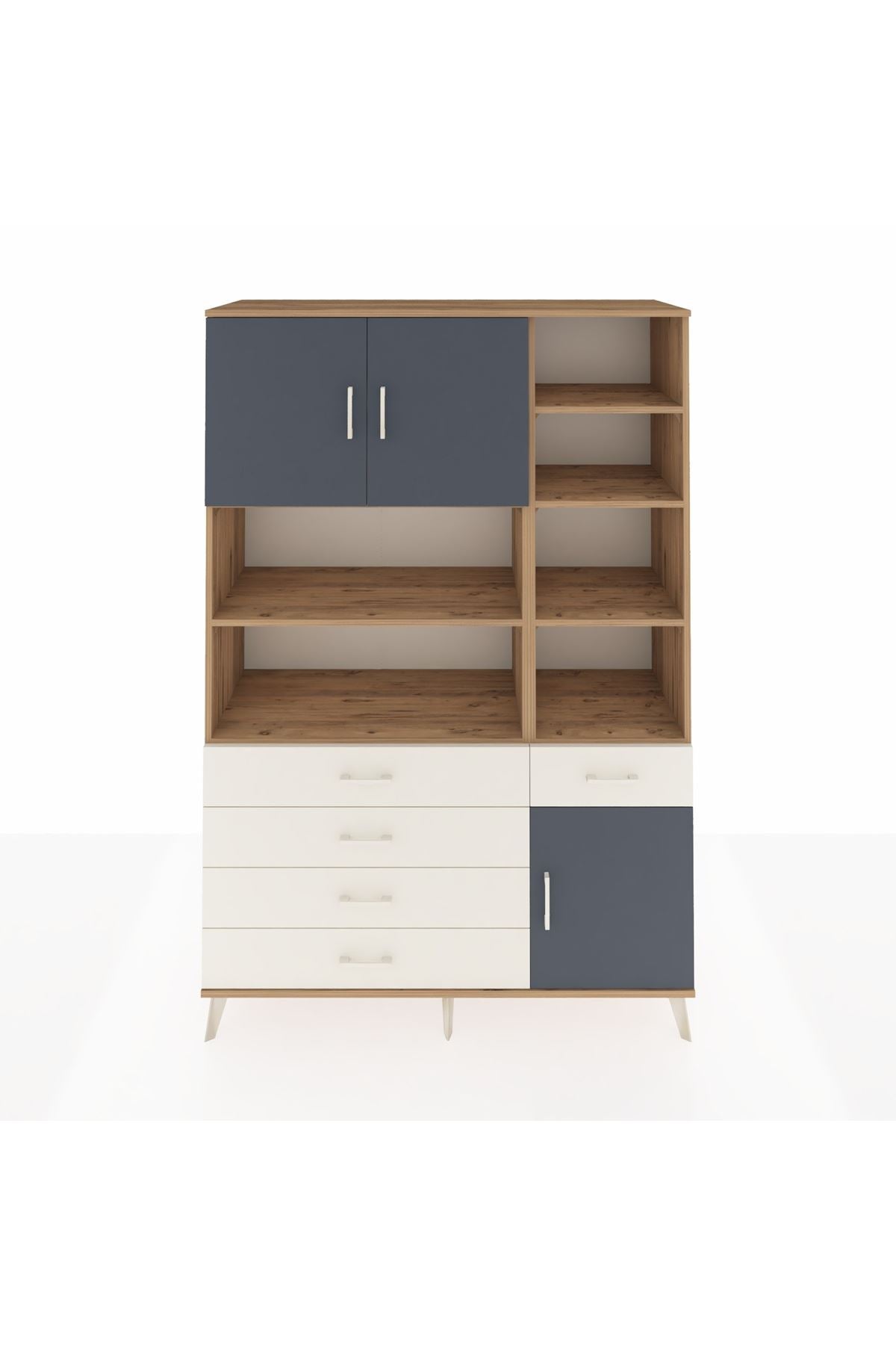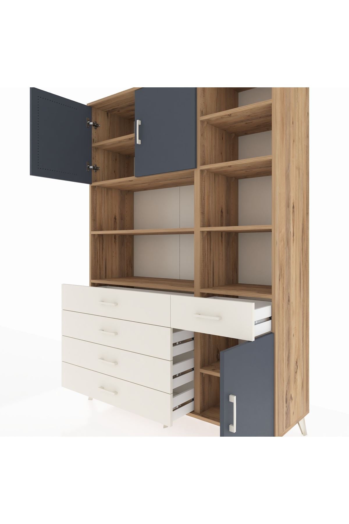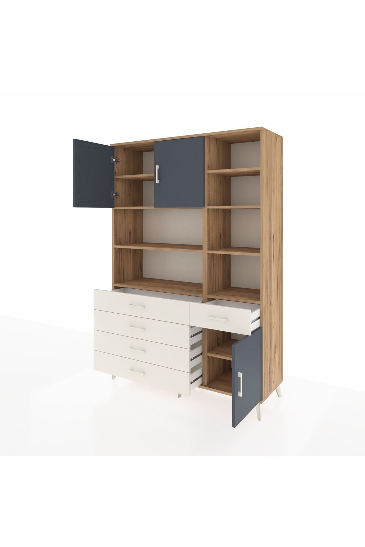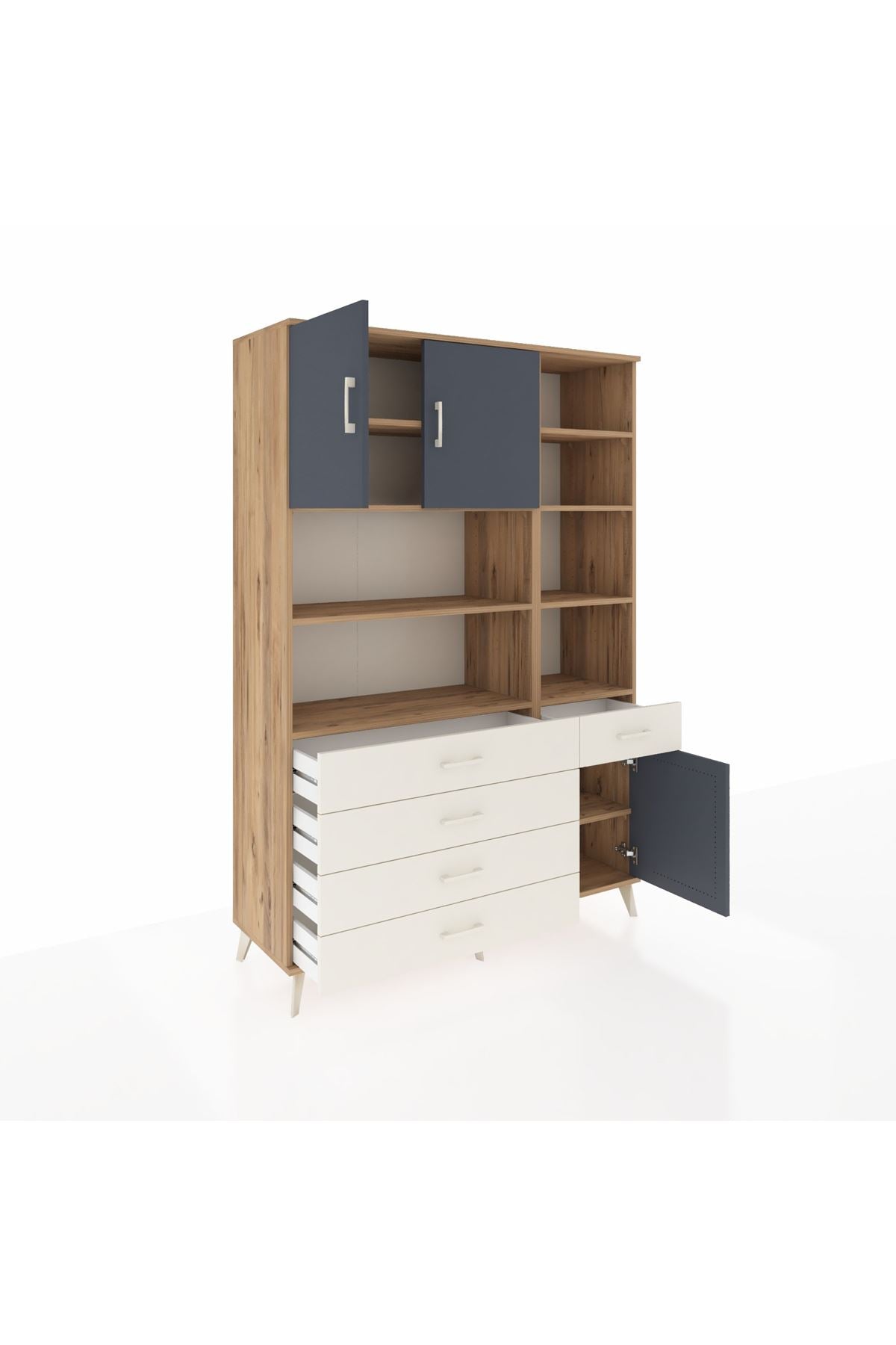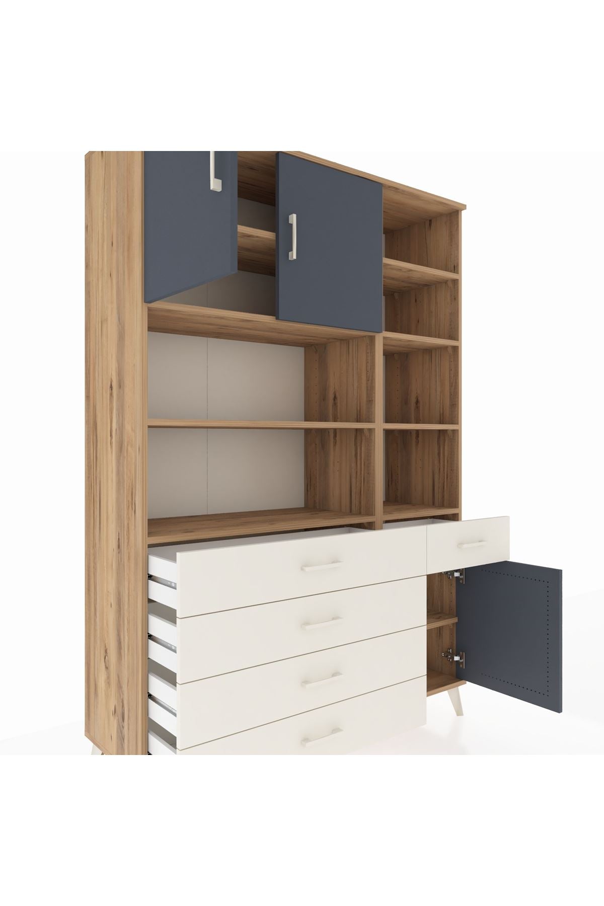 Hyperion Dolap 9 Raflı 5 Çekmeceli 3 Kapaklı 132x44x195 Çam-Antrasit/Aytaşı